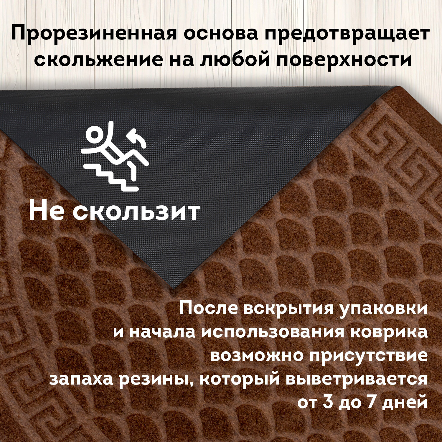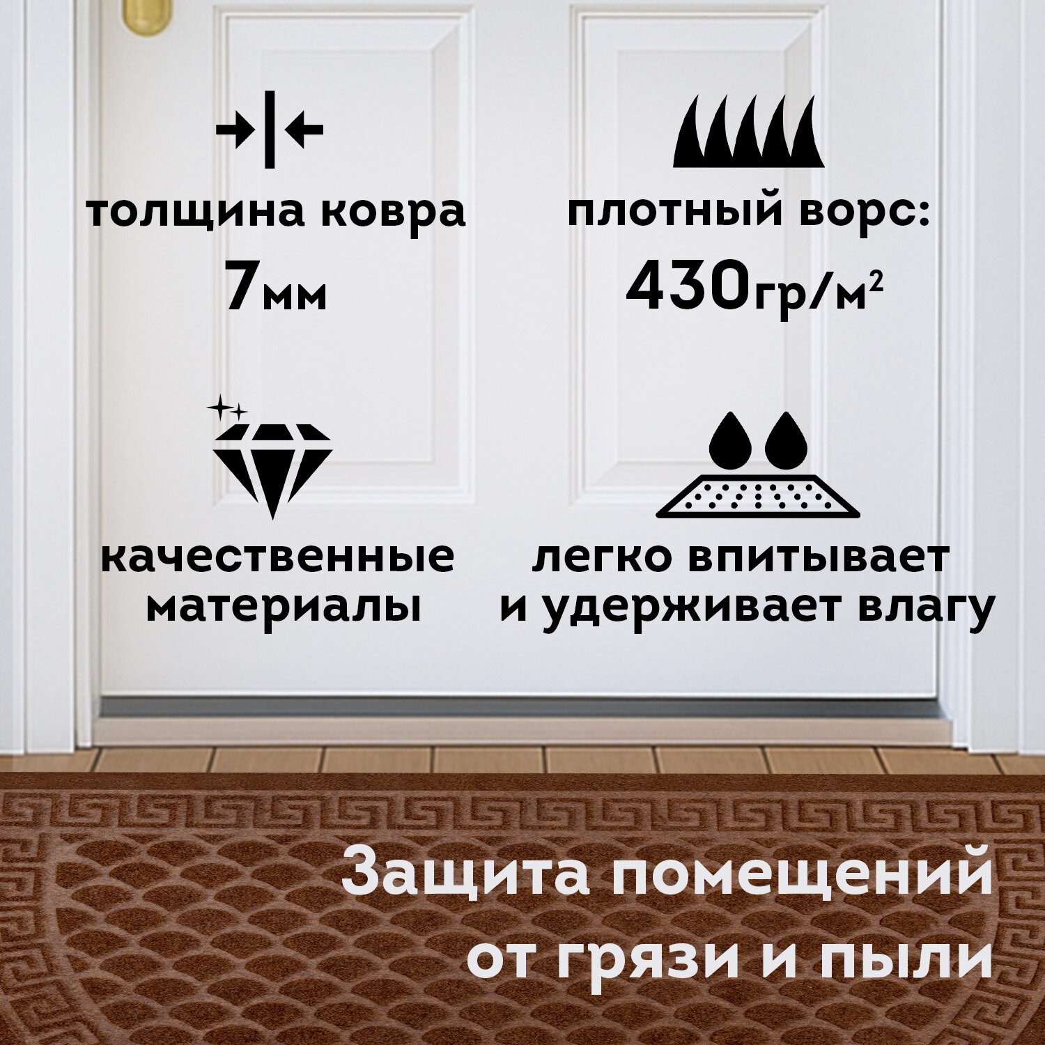 Коврик придверный 60х90 см, ВЕНГЕ, грязезащитный, 430 г/м2, ПОЛУКРУГ, фактурный ЧЕШУЙКИ, ЛЮБАША Код товара: 701053 592,69 ₽ Купить Производитель:ЛЮБАША Коврик влаго-грязезащитный ЛЮБАША – практичное и эффективное решение для защиты помещения от грязи и влаги. Предназначен для использования внутри и вне помещений. Коврик влаго-грязезащитный ЛЮБАША – практичное и эффективное решение для защиты помещения от грязи и влаги. Ворс коврика изготовлен из полиэстера, который отлично впитывает влагу и задерживает мелкие частицы грязи с подошв обуви. Коврик имеет полукруглую форму. ПВХ-основа предотвращает скольжение и обеспечивает устойчивость на полу. Основные преимущества влаговпитывающего коврика: Надежная грязезащита и влаговпитывание, что снижает количество уборок в помещении; Износостойкость и устойчивость к деформациям и перепадам температуры; Простота ухода – коврик можно пылесосить; Безопасность за счет нескользящей основы, особенно актуально в осенне-зимний период. Основные характеристики: Размер – 60х90 см. Толщина – 7 мм. Ворс изготовлен из полиэстера. Коврик выполнен в цвете венге. Фактурный рисунок – чешуйки. Во избежание скольжения рекомендуется укладывать коврик на чистую увлажненную поверхность (пыль и песок повышают вероятность скольжения ковра). Рекомендации, которые на 100% исключат скольжение ковра на любых напольных покрытиях: 1. Применить противоскользящую ленту. Её наклеивают по периметру коврика с обратной (изнаночной) стороны. 2. Использовать силиконовые наклейки. Они крепятся с изнаночной стороны в углы коврика (обычно нужно 4 наклейки на один коврик). 3. Применить резиновый клей. Им промазывают всю поверхность коврика, при этом и коврик, и кафель в момент приклеивания должны быть сухими и чистыми. Или использовать любой двусторонний скотч. 4. Использовать фиксаторы для ковров. Это специально разработанные подушечки, которые можно поместить под углы коврика. Обычно они состоят из двух частей – липкой, которая приклеивается к подложке коврика, и рельефной, которая прижимается к полу. 5. Использовать липучки для ковров. Одну сторону липучки прикрепляют к изнанке ковра, а другую – к полу. При сжатии застёжки-липучки создают прочное соединение, препятствующее скольжению.Производство: РоссияНазначение: влаго-грязезащитныйДлина: 90 смШирина: 60 смТолщина: 7 ммМатериал: ПВХ, полиэстерМатериал ворса: 100% полиэстерМетод производства: вулканизацияДизайн: полукруг чешуйкиАнтискользящее основание: даВорсовое покрытие с ребристой текстурой: даЦвет: венгеВес: 867 грРазмер упаковки: 0.5 × 90 × 60 смОбъём: 0.0031 м3Промежуточная упаковка: 10 штТранспортная упаковка: 10 штШтрих-код: 4606224505916 Сертификат-1.jpg Сертификат-2.jpg Сертификат-3.jpg