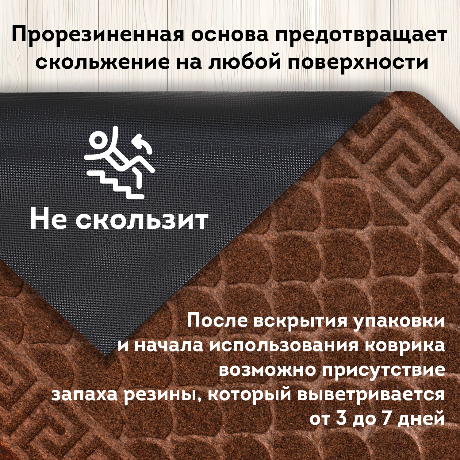 Коврик придверный 60х90 см, ВЕНГЕ, грязезащитный, 430 г/м2, фактурный рисунок ЧЕШУЙКИ, ЛЮБАША Код товара: 701062 558,08 ₽ Купить Производитель:ЛЮБАША Коврик влаго-грязезащитный ЛЮБАША – практичное и эффективное решение для защиты помещения от грязи и влаги. Предназначен для использования внутри и вне помещений. Коврик влаго-грязезащитный ЛЮБАША – практичное и эффективное решение для защиты помещения от грязи и влаги. Ворс коврика изготовлен из полиэстера, который отлично впитывает влагу и задерживает мелкие частицы грязи с подошв обуви. Коврик имеет прямоугольную форму. ПВХ-основа предотвращает скольжение и обеспечивает устойчивость на полу. Основные преимущества влаговпитывающего коврика: Надежная грязезащита и влаговпитывание, что снижает количество уборок в помещении; Износостойкость и устойчивость к деформациям и перепадам температуры; Простота ухода – коврик можно пылесосить; Безопасность за счет нескользящей основы, особенно актуально в осенне-зимний период. Основные характеристики: Размер – 60х90 см. Толщина – 7 мм. Ворс изготовлен из полиэстера. Коврик выполнен в цвете венге (коричневый). Фактурный рисунок – чешуйки. Во избежание скольжения рекомендуется укладывать коврик на чистую увлажненную поверхность (пыль и песок повышают вероятность скольжения ковра). Рекомендации, которые на 100% исключат скольжение ковра на любых напольных покрытиях: 1. Применить противоскользящую ленту. Её наклеивают по периметру коврика с обратной (изнаночной) стороны. 2. Использовать силиконовые наклейки. Они крепятся с изнаночной стороны в углы коврика (обычно нужно 4 наклейки на один коврик). 3. Применить резиновый клей. Им промазывают всю поверхность коврика, при этом и коврик, и кафель в момент приклеивания должны быть сухими и чистыми. Или использовать любой двусторонний скотч. 4. Использовать фиксаторы для ковров. Это специально разработанные подушечки, которые можно поместить под углы коврика. Обычно они состоят из двух частей – липкой, которая приклеивается к подложке коврика, и рельефной, которая прижимается к полу. 5. Использовать липучки для ковров. Одну сторону липучки прикрепляют к изнанке ковра, а другую – к полу. При сжатии застёжки-липучки создают прочное соединение, препятствующее скольжению.Производство: РоссияНазначение: влаго-грязезащитныйДлина: 90 смШирина: 60 смТолщина: 7 ммМатериал: ПВХ, полиэстерМатериал ворса: 100% полиэстерМетод производства: вулканизацияДизайн: чешуйкиАнтискользящее основание: даВорсовое покрытие с ребристой текстурой: даЦвет: венгеВес: 1,02 кгРазмер упаковки: 0.5 × 90.5 × 60 смОбъём: 0.003 м3Промежуточная упаковка: 10 штТранспортная упаковка: 10 штШтрих-код: 4606224506005 Сертификат-1.jpg Сертификат-2.jpg Сертификат-3.jpg
