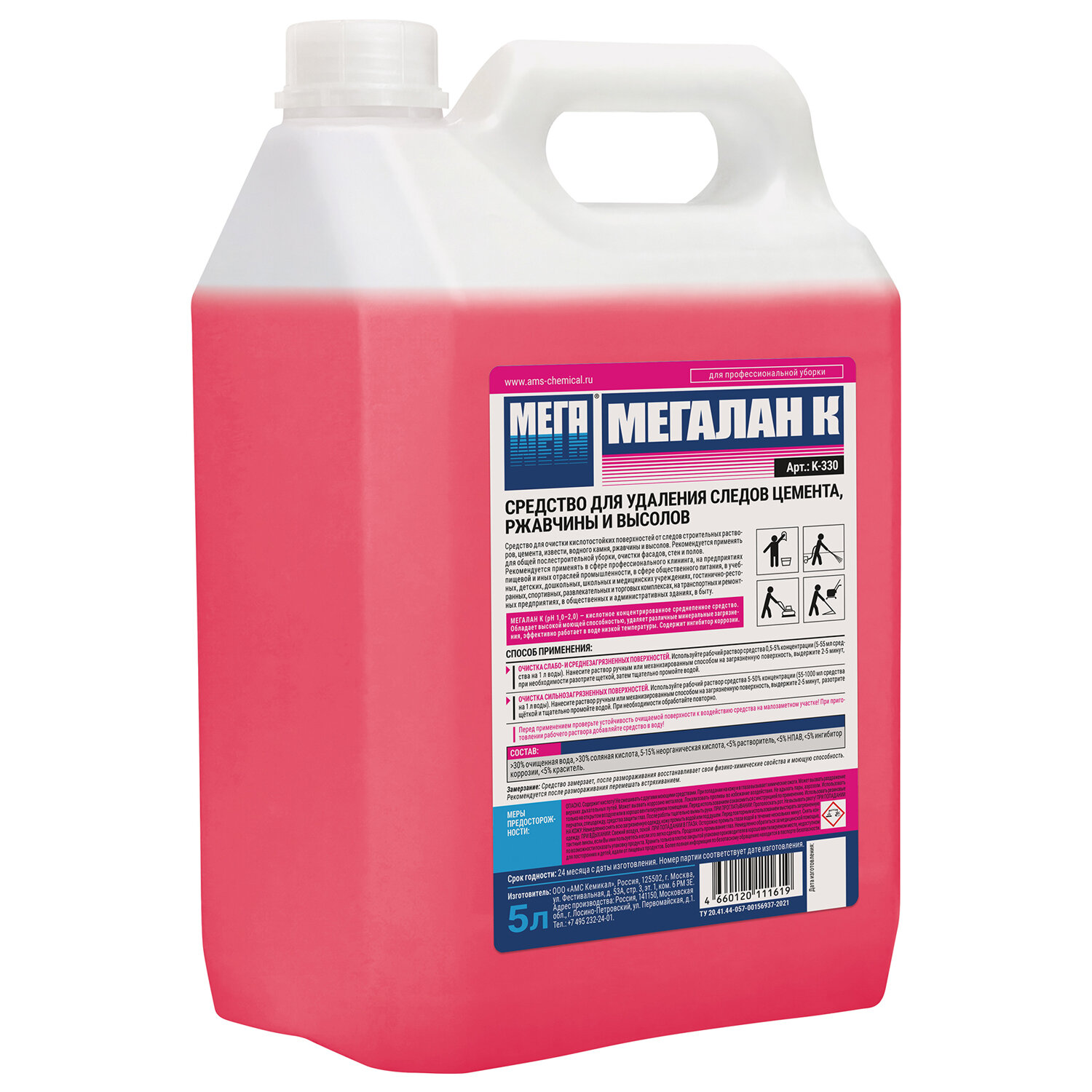 Рекомендуется применять для общей послестроительной уборки, очистки фасадов, стен и полов. Средство концентрированное, обладает высокой моющей способностью, удаляет различные минеральные загрязнения, эффективно работает в воде низкой температуры. Содержит ингибитор коррозии.