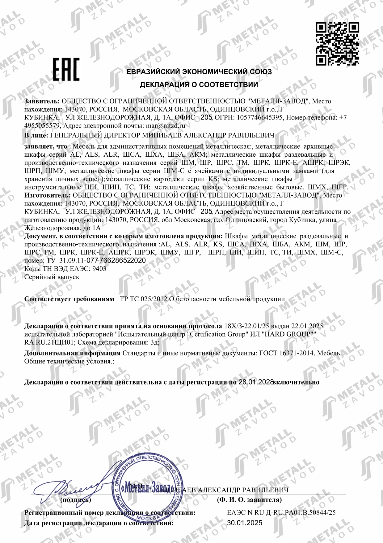 Шкаф металлический для одежды ШРС-11-400, 2 отделения (1850хш400х500 мм), разборный Код товара: 291362 11 490,4 ₽ Купить Производитель:METALL ZAVOD Металлический шкаф для одежды. Предназначен для использования в производственных, спортивных и других помещениях, а также для организации камер хранения. Подходят для установки в помещениях с повышенной влажностью. 2 отделения за 1 дверью. Ключевой замок повышенной секретности, два ключа. Цельносварная лицевая панель с травмобезопасными гибами обеспечивает абсолютную жёсткость всей конструкции. Полка для головных уборов. 2 штанги для плечиков, 4 крючка в комплекте. Полка для обуви. Вентиляционные отверстия в корпусе и двери. Держатель под личную карточку на двери. Угол открывания двери – 110°. Собирается при помощи винтов и саморезов. Поставляется в разобранном виде.Производство: РоссияКоличество секций: 2 шт.Серия: Шкаф для одежды ШРСКоличество полок в отделении: 2Конструкция: разобраннаяДополнительная комплектация: держатель под личную карточку, крючки для одежды, полка для головных уборов, штанга для плечиковТип замка: ключевойВентиляционные отверстия в двери: даВозможность скреплять шкафы между собой: даУвеличенный угол открывания дверей: даВысота: 1850 ммШирина: 400 ммГлубина: 500 ммВес: 21 кгТип покрытия корпуса: порошковоеЦвет: серыйСоответствует требованиям ГОСТа: ГОСТ 16371-2014Крепеж в комплекте: саморезыТип поставки: в разобранном видеРазмер упаковки: 8.5 × 188 × 54 смОбъём: 0.0863 м3Промежуточная упаковка: 1 штТранспортная упаковка: 1 штШтрих-код: 4630085586753 Файлы Приложение-1.pdf Сертификат-1.jpg Сертификат-2.jpg Сертификат-3.jpg