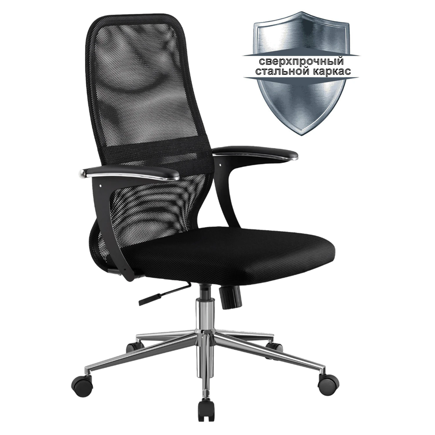 Кресло МЕТТА "SU-C-8-Т" хром, с подлокотниками, ткань-сетка, сиденье мягкое, черное Код товара: 532425 13 122,3 ₽ Купить Производитель:МЕТТА Вариант наиболее популярной, классической модели офисных кресел МЕТТА с укороченной спинкой. Сочетает в себе высокую надежность, эргономику, соответствующую анатомической форме человека, современный дизайн и максимальный комфорт по доступной цене. Спинка низкая, эргономичной формы с ярко выраженной поясничной поддержкой. Спинка имеет сверхпрочный стальной каркас с износостойким полимерным покрытием черного цвета. Сиденье средней жесткости, объемное на столярном каркасе. Обивка из износоустойчивой "дышащей" сетчатой ткани. Подлокотники современные "Бумеранг", стальные с полимерным покрытием черного цвета, c хромированным молдингом, с мягкими накладками из экокожи. Пятилучие - металлическое хромированное. Модель оснащена механизмом качания "Top-Gun" с регулировкой под вес и возможностью фиксации в рабочем положении.Производство: РоссияМатериал обивки: ткань/сеткаЦвет обивки: черныйМаксимальная нагрузка: до 150 кгМеханизм качания: даТип механизма: "Топ-ган" - качание с регулировкой под вес и фиксацией в 1 положении Сетка в спинке : даКрестовина (пятилучие): металл/хромированный металлПодлокотники: хром с накладками/металл с накладкамиМинимальная высота кресла: 1024 ммМаксимальная высота кресла: 1156 ммШирина кресла: 611 ммМинимальная высота до сиденья: 438 ммМаксимальная высота до сиденья: 570 ммСиденье ширина: 475 ммСиденье глубина: 480 ммСпинка ширина: 475 ммСпинка высота: 706 ммПоставляется в разобранном виде: даСерия: SU-8Соответствует требованиям ГОСТа: ГОСТ 19917-93Вес: 15,76 кгРазмер упаковки: 91.4 × 67.5 × 26.4 смОбъём: 0.1629 м3Промежуточная упаковка: 1 штТранспортная упаковка: 1 штШтрих-код: 4665313640020 Файлы Приложение-1.pdf Сертификат-1.jpg Сертификат-2.jpg Сертификат-3.jpg Сертификат-4.jpg Сертификат-5.jpg Сертификат-6.jpg