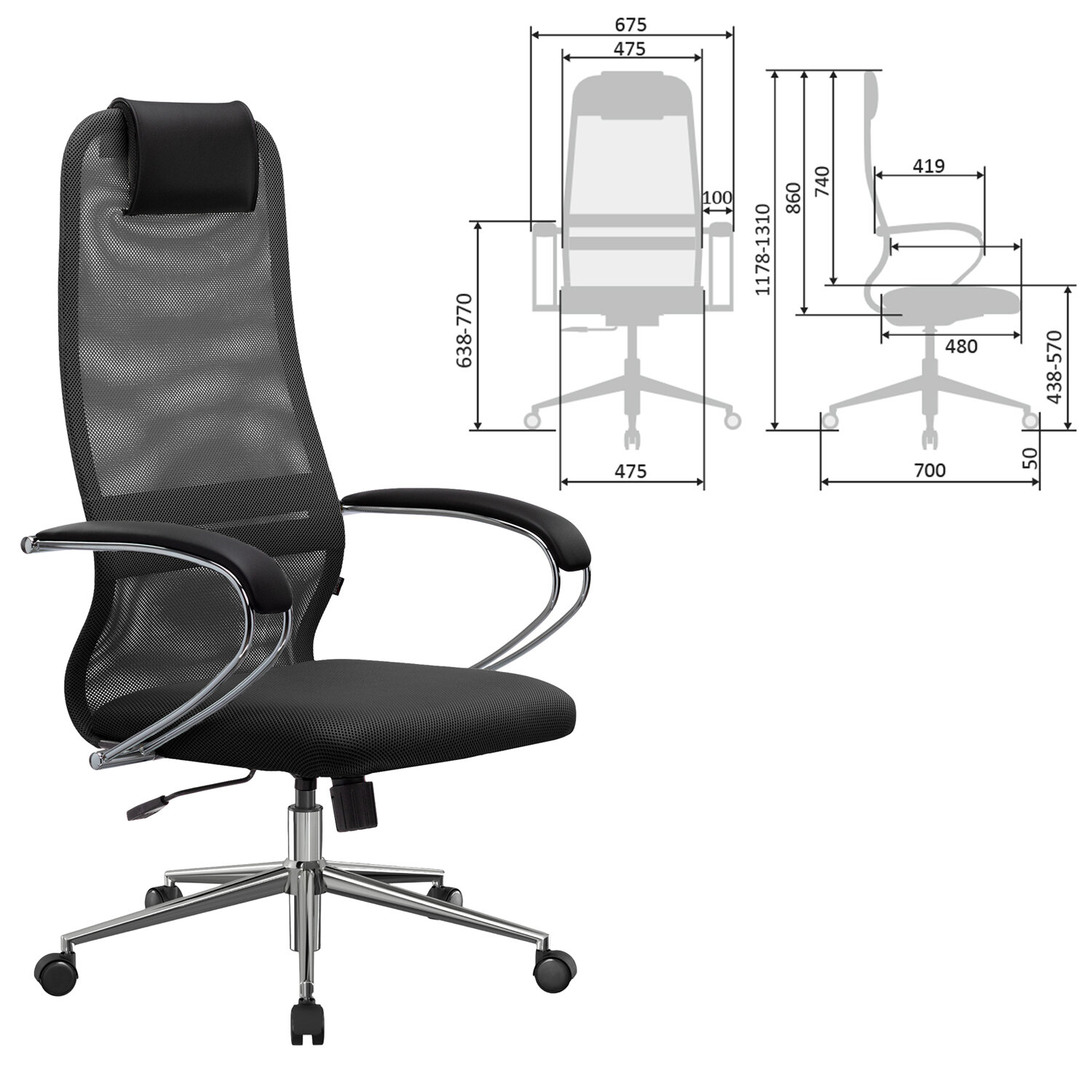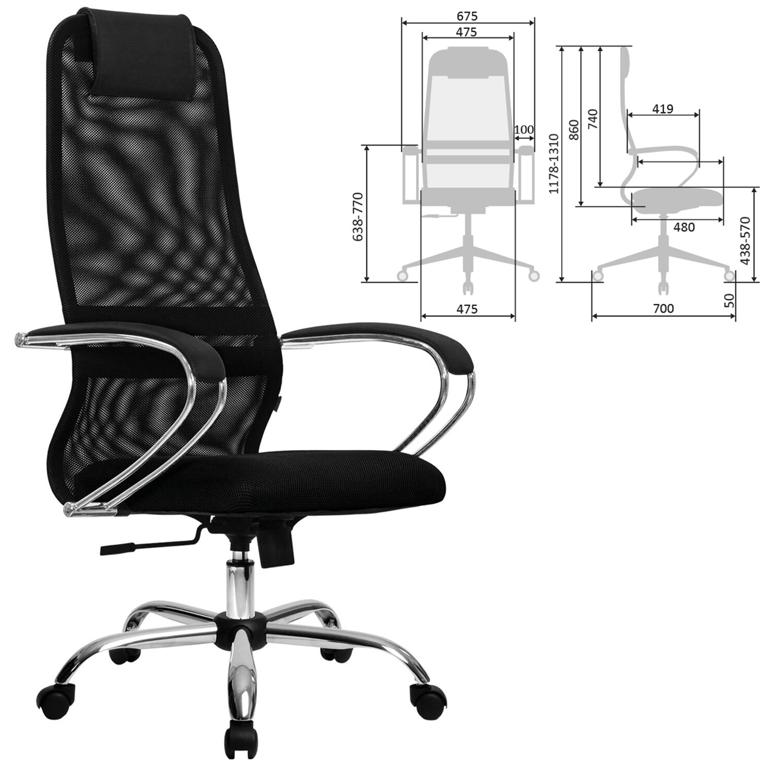 Кресло офисное МЕТТА "SU-B-8" хром, ткань-сетка, сиденье мягкое, черное Код товара: 532427 14 324,2 ₽ Купить Производитель:МЕТТА Наиболее популярная, классическая модель офисных кресел МЕТТА. Сочетает в себе высокую надежность, эргономику, соответствующую анатомической форме человека, современный дизайн и максимальный комфорт по доступной цене. Спинка высокая, эргономичной формы с ярко выраженной поясничной поддержкой. Спинка имеет сверхпрочный стальной каркас с износостойким полимерным покрытием черного цвета. Спинка снабжена мягким комфортным подголовником. Сиденье средней жесткости, объемное на столярном каркасе. Обивка из износоустойчивой "дышащей" сетчатой ткани. Подлокотники стальные классические покрытые зеркальным хромом, с мягкими накладками из экокожи. Пятилучие – металлическое хромированное. Модель оснащена механизмом качания "Top-Gun" с регулировкой под вес и возможностью фиксации в рабочем положении.Производство: РоссияМатериал обивки: ткань/сеткаМаксимальная нагрузка: до 150 кгЦвет обивки: черныйТип механизма кресла: "Топ-ган" - качание с регулировкой под вес и фиксацией в 1 положенииСетчатая спинка: даКрестовина (пятилучие): металл/хромированный металлПодлокотники: хром с накладкамиМинимальная высота кресла: 1178 ммМаксимальная высота кресла: 1310 ммШирина кресла: 675 ммМинимальная высота до сиденья: 438 ммМаксимальная высота до сиденья: 570 ммСиденье ширина: 475 ммСиденье глубина: 480 ммСпинка ширина: 475 ммСпинка высота: 860 ммСерия: SU-8Соответствует требованиям ГОСТа: ГОСТ 19917-93Поставляется в разобранном виде: даВес: 15,86 кгРазмер упаковки: 91 × 68.2 × 25 смОбъём: 0.1552 м3Промежуточная упаковка: 1 штТранспортная упаковка: 1 штШтрих-код: 4665316737314 Файлы Приложение-1.pdf Сертификат-1.jpg Сертификат-2.jpg Сертификат-3.jpg Сертификат-4.jpg Сертификат-5.jpg Сертификат-6.jpg