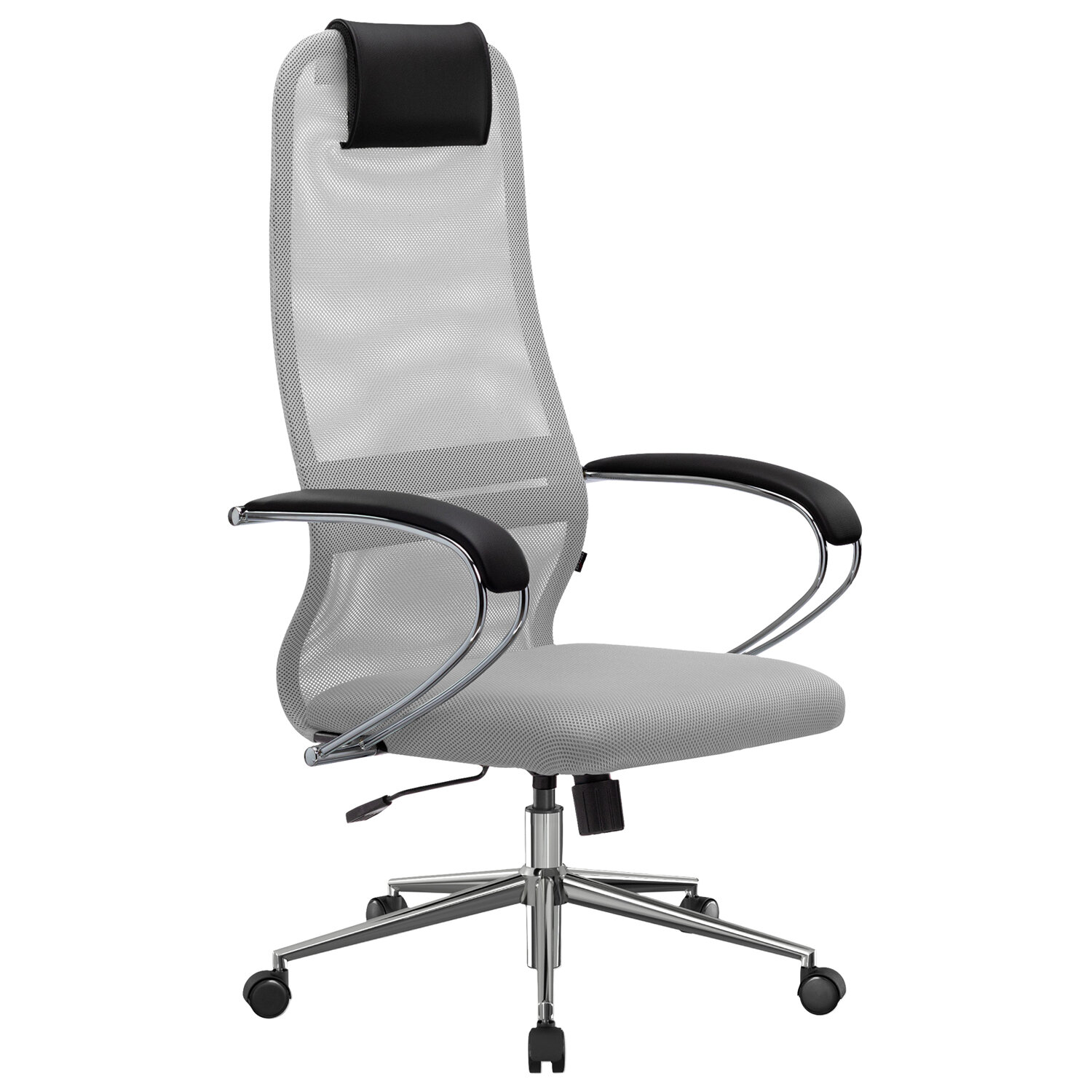 Кресло офисное МЕТТА "SU-B-8" хром, ткань-сетка, сиденье мягкое, светло-серое Код товара: 532429 13 526,08 ₽ Купить Производитель:МЕТТА Наиболее популярная, классическая модель офисных кресел МЕТТА. Сочетает в себе высокую надежность, эргономику, соответствующую анатомической форме человека, современный дизайн и максимальный комфорт по доступной цене. Спинка высокая, эргономичной формы с ярко выраженной поясничной поддержкой. Спинка имеет сверхпрочный стальной каркас с износостойким полимерным покрытием черного цвета. Спинка снабжена мягким комфортным подголовником. Сиденье средней жесткости, объемное на столярном каркасе. Обивка из износоустойчивой "дышащей" сетчатой ткани. Подлокотники стальные классические, покрытые зеркальным хромом, с мягкими накладками из экокожи. Пятилучие – металлическое хромированное. Модель оснащена механизмом качания "Top-Gun" с регулировкой под вес и возможностью фиксации в рабочем положении.Производство: РоссияМатериал обивки: ткань/сеткаМаксимальная нагрузка: до 150 кгЦвет обивки: светло-серыйТип механизма кресла: "Топ-ган" - качание с регулировкой под вес и фиксацией в 1 положенииСетчатая спинка: даКрестовина (пятилучие): металл/хромированный металлПодлокотники: хром с накладкамиМинимальная высота кресла: 1125 ммМаксимальная высота кресла: 1235 ммШирина кресла: 665 ммМинимальная высота до сиденья: 375 ммМаксимальная высота до сиденья: 485 ммСиденье ширина: 470 ммСиденье глубина: 460 ммСпинка ширина: 475 ммСпинка высота: 750 ммСерия: SU-8Соответствует требованиям ГОСТа: ГОСТ 19917-93Поставляется в разобранном виде: даВес: 15,89 кгРазмер упаковки: 90.5 × 68 × 26 смОбъём: 0.16 м3Промежуточная упаковка: 1 штТранспортная упаковка: 1 штШтрих-код: 4665316737260 Файлы Приложение-1.pdf Приложение-2.pdf Приложение-3.pdf Сертификат-1.jpg Сертификат-2.jpg Сертификат-3.jpg Сертификат-4.jpg