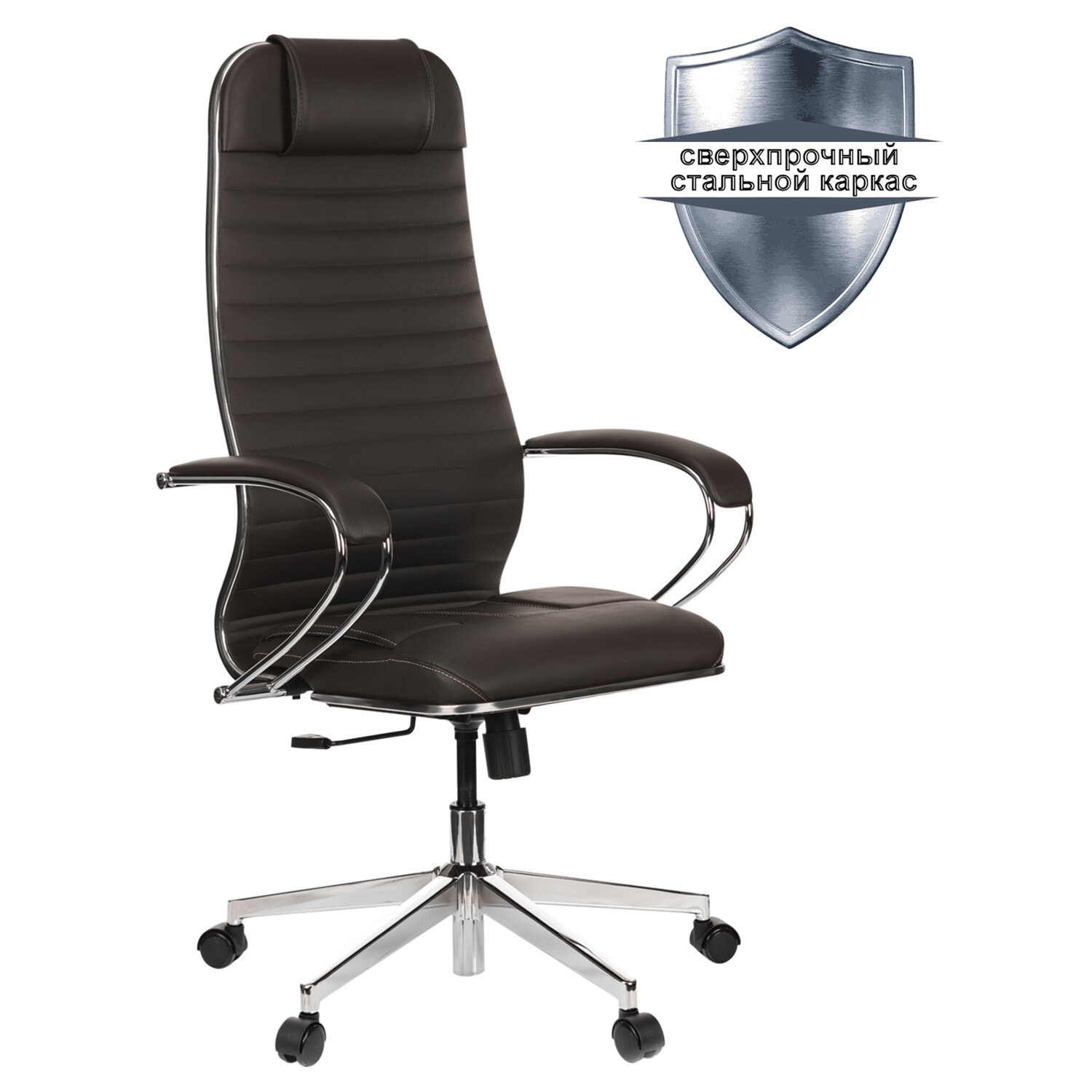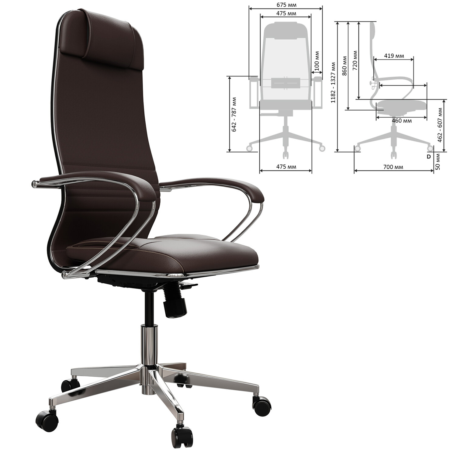 Кресло офисное МЕТТА "К-6" хром, экокожа, сиденье и спинка мягкие, темно-коричневое Код товара: 532454 27 717,8 ₽ Купить Производитель:МЕТТА Современное технологичное кресло на сверхпрочном стальном каркасе. Отличительной особенностью кресел МЕТТА является узнаваемый дизайн, абсолютная эргономика, соответствующая анатомической форме человека и набор индивидуальных регулировок для каждого. Сверхпрочный стальной каркас. Спинка мягкая высокая, эргономичной формы с ярко выраженной поясничной поддержкой. Эргогиб, как у кресел SAMURAI. Спинка имеет стальной регулируемый поясничный подпор. Спинка снабжена мягким комфортным подголовником. Сиденье мягкое, объемное на столярном каркасе с хромированным молдингом. Уникальная форма передней части сиденья исключает сдавливание сосудов ног, сохраняя ощущение легкости в ногах. Регулировка глубины сиденья за счет перемещения места крепления сидения (450-480 мм). Обивка спинки и сиденья: износостойкий, дышащий, экологичный материал – экокожа Extra с прошивкой. Подлокотники стальные классические покрытые зеркальным хромом, с мягкими накладками из экокожи. Пятилучие – современного дизайна, металлическое хромированное. Колеса-ролики имеют полиуретановое покрытие, обеспечивающее бесшумный ход и защиту пола от повреждений. Модель оснащена механизмом качания "Top-Gun" с регулировкой под вес и возможностью фиксации в рабочем положении. Современный дизайн и максимальный комфорт по доступной цене.Производство: РоссияМатериал обивки: экокожа ExtraМаксимальная нагрузка: до 150 кгЦвет обивки: темно-коричневыйТип механизма кресла: "Топ-ган" - качание с регулировкой под вес и фиксацией в 1 положенииКрестовина (пятилучие): металл/хромированный металлПодлокотники: хром с накладкамиМинимальная высота кресла: 1182 ммМаксимальная высота кресла: 1327 ммШирина кресла: 675 ммМинимальная высота до сиденья: 462 ммМаксимальная высота до сиденья: 607 ммСиденье ширина: 475 ммСиденье глубина: 460 ммСпинка ширина: 475 ммСпинка высота: 860 ммСерия: К-6Соответствует требованиям ГОСТа: ГОСТ 19917-93Поставляется в разобранном виде: даВес: 19,96 кгРазмер упаковки: 92 × 68.6 × 25.4 смОбъём: 0.1603 м3Промежуточная упаковка: 1 штТранспортная упаковка: 1 штШтрих-код: 4665316515400 Файлы Приложение-1.pdf Сертификат-1.jpg Сертификат-2.jpg Сертификат-3.jpg Сертификат-4.jpg Сертификат-5.jpg Сертификат-6.jpg
