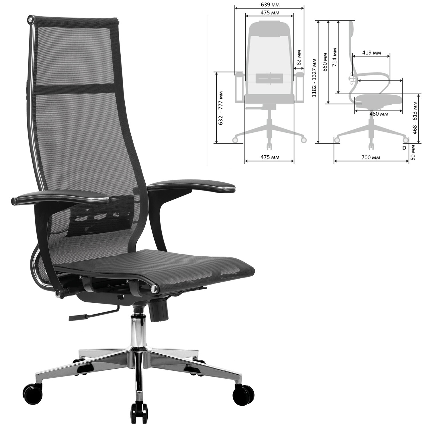 Кресло офисное МЕТТА "К-7-Т" хром, прочная сетка, сиденье и спинка регулируемые, черное Код товара: 532467 22 119,2 ₽ Купить Производитель:МЕТТА Современное технологичное кресло утонченного дизайна для ценителей легкости в интерьере. Сочетает в себе надежность стального каркаса, абсолютную эргономику, соответствующую анатомической форме человека, и набор индивидуальных регулировок для каждого. Сверхпрочный стальной каркас. Спинка высокая, эргономичной формы с ярко выраженной поясничной поддержкой. Эргогиб, как у кресел SAMURAI. Спинка имеет стальной регулируемый поясничный подпор. Уникальная форма передней части сиденья исключает сдавливание сосудов ног, сохраняя ощущение легкости в ногах. Двухзонная регулировка жесткости сиденья позволяет достичь максимального удобства, а также при необходимости настроить угол наклона сиденья за счет разного натяжения передней и задней зоны. Регулировка глубины сиденья за счет перемещения места крепления сидения (450-480 мм). Обивка из прочной износоустойчивой "дышащей" сетчатой ткани. Подлокотники современные "Бумеранг", стальные с полимерным покрытием черного цвета, c хромированным молдингом, с мягкими накладками из экокожи. Пятилучие - современного дизайна, металлическое хромированное. Колеса-ролики имеют полиуретановое покрытие, обеспечивающее бесшумный ход и защиту пола от повреждений. Модель оснащена механизмом качания "Top-Gun" с регулировкой под вес и возможностью фиксации в рабочем положении. Современный дизайн и максимальный комфорт по доступной цене.Производство: РоссияМатериал обивки: сеткаМаксимальная нагрузка: до 150 кгЦвет обивки: черныйТип механизма кресла: "Топ-ган" - качание с регулировкой под вес и фиксацией в 1 положенииСетчатая спинка: даКрестовина (пятилучие): металл/хромированный металлПодлокотники: металл с накладкамиМинимальная высота кресла: 1182 ммМаксимальная высота кресла: 1327 ммШирина кресла: 639 ммМинимальная высота до сиденья: 468 ммМаксимальная высота до сиденья: 613 ммСиденье ширина: 475 ммСиденье глубина: 480 ммСпинка ширина: 475 ммСпинка высота: 860 ммСерия: К-7Соответствует требованиям ГОСТа: ГОСТ 19917-93Поставляется в разобранном виде: даВес: 18,9 кгРазмер упаковки: 92 × 68 × 25.4 смОбъём: 0.1589 м3Промежуточная упаковка: 1 штТранспортная упаковка: 1 штШтрих-код: 4665316515974 Файлы Приложение-1.pdf Сертификат-1.jpg Сертификат-2.jpg Сертификат-3.jpg Сертификат-4.jpg Сертификат-5.jpg Сертификат-6.jpg