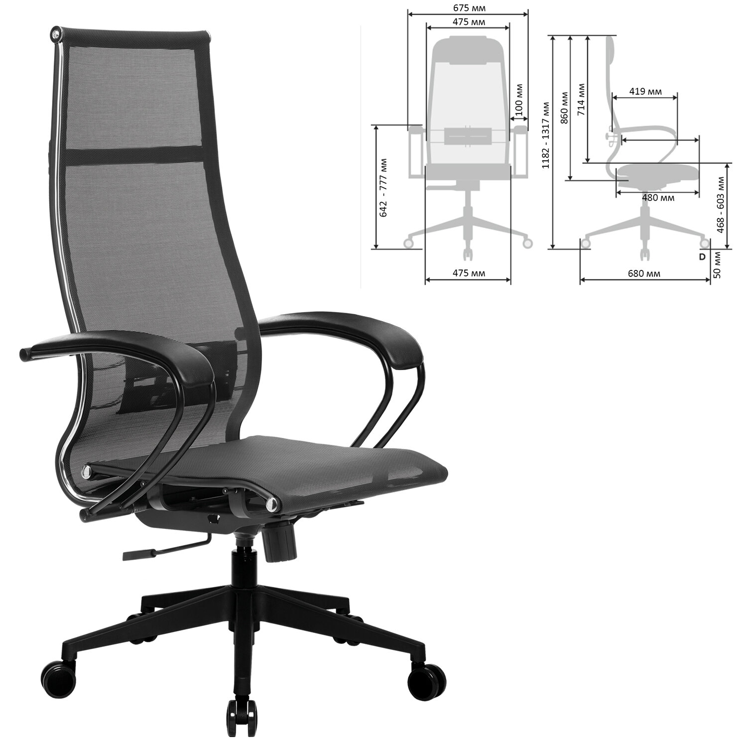 Кресло офисное МЕТТА "К-7" пластик, прочная сетка, сиденье и спинка регулируемые, черное Код товара: 532468 20 105,08 ₽ Купить Производитель:МЕТТА Современное технологичное кресло утонченного дизайна для ценителей легкости в интерьере. Сочетает в себе надежность стального каркаса, абсолютную эргономику, соответствующую анатомической форме человека, и набор индивидуальных регулировок для каждого. Сверхпрочный стальной каркас. Спинка высокая, эргономичной формы с ярко выраженной поясничной поддержкой. Эргогиб, как у кресел SAMURAI. Спинка имеет стальной регулируемый поясничный подпор. Уникальная форма передней части сиденья исключает сдавливание сосудов ног, сохраняя ощущение легкости в ногах. Двухзонная регулировка жесткости сиденья позволяет достичь максимального удобства, а также при необходимости настроить угол наклона сиденья за счет разного натяжения передней и задней зоны. Регулировка глубины сиденья за счет перемещения места крепления сидения (450-480 мм). Обивка из прочной износоустойчивой "дышащей" сетчатой ткани. Подлокотники стальные классические, с мягкими накладками из экокожи. Пятилучие - современного дизайна, прочное, пластиковое. Колеса-ролики имеют полиуретановое покрытие, обеспечивающее бесшумный ход и защиту пола от повреждений. Модель оснащена механизмом качания "Top-Gun" с регулировкой под вес и возможностью фиксации в рабочем положении. Современный дизайн и максимальный комфорт по доступной цене.Производство: РоссияМатериал обивки: сеткаМаксимальная нагрузка: до 120 кгЦвет обивки: черныйТип механизма кресла: "Топ-ган" - качание с регулировкой под вес и фиксацией в 1 положенииСетчатая спинка: даКрестовина (пятилучие): пластикПодлокотники: металл с накладкамиМинимальная высота кресла: 1182 ммМаксимальная высота кресла: 1317 ммШирина кресла: 675 ммМинимальная высота до сиденья: 468 ммМаксимальная высота до сиденья: 603 ммСиденье ширина: 475 ммСиденье глубина: 480 ммСпинка ширина: 475 ммСпинка высота: 860 ммСерия: К-7Соответствует требованиям ГОСТа: ГОСТ 19917-93Поставляется в разобранном виде: даВес: 19,16 кгРазмер упаковки: 9.1 × 68 × 25 смОбъём: 0.0155 м3Промежуточная упаковка: 1 штТранспортная упаковка: 1 штШтрих-код: 4665316515493 Файлы Приложение-1.pdf Сертификат-1.jpg Сертификат-2.jpg Сертификат-3.jpg Сертификат-4.jpg Сертификат-5.jpg Сертификат-6.jpg