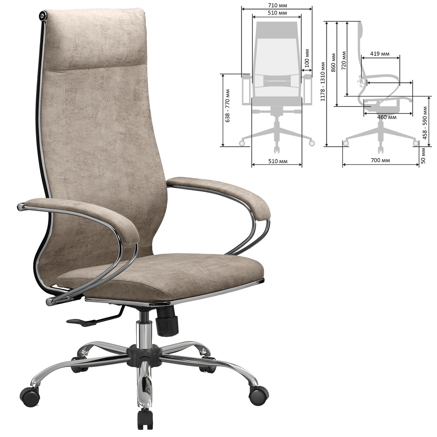 Кресло офисное МЕТТА "L1m 42", хром, сиденье и спинка мягкие, велюр, бежевое Код товара: 532995 23 955,75 ₽ Купить Производитель:МЕТТА Комфортное, просторное кресло современного дизайна прекрасно подойдет не только для офиса, но и добавит уют в домашний интерьер. Сочетает в себе надежность стального каркаса, абсолютную эргономику и набор индивидуальных регулировок для каждого. Сверхпрочный стальной каркас. Спинка высокая и широкая, эргономичной формы с ярко выраженной поясничной поддержкой. Эргогиб, как у кресел SAMURAI. Спинка имеет стальной регулируемый поясничный подпор. Уникальная форма передней части сиденья исключает сдавливание сосудов ног, сохраняя ощущение легкости в ногах. Сиденье мягкое и широкое, объемное, на столярном каркасе. Регулировка глубины сиденья за счет перемещения места крепления сиденья (450-480 мм). Обивка велюр "Bravo", с прошивкой "LUX Simple". Подлокотники стальные классические, покрытые зеркальным хромом, с мягкими накладками из экокожи. Пятилучие – металлическое хромированное. Модель оснащена синхромеханизмом качания M20 (S 1.0) с фиксацией в рабочем положении. Ролики полиамидные с полиуретановым ободком (D-50 мм).Производство: РоссияМатериал обивки: велюрМаксимальная нагрузка: до 150 кгЦвет обивки: бежевыйТип механизма кресла: "Synchro" - синхронное отклонение сиденья и спинки в соотношении 1:3, фиксация в нескольких положенияхКрестовина (пятилучие): металл/хромированный металлПодлокотники: металл с накладкамиМинимальная высота кресла: 1178 ммМаксимальная высота кресла: 1310 ммШирина кресла: 710 ммМинимальная высота до сиденья: 458 ммМаксимальная высота до сиденья: 590 ммСиденье ширина: 510 ммСиденье глубина: 460 ммСпинка ширина: 510 ммСпинка высота: 860 ммСерия: L1m 42Соответствует требованиям ГОСТа: ГОСТ 19917-2014Поставляется в разобранном виде: даВес: 20,03 кгРазмер упаковки: 91.6 × 68 × 25 смОбъём: 0.1557 м3Промежуточная упаковка: 1 штТранспортная упаковка: 1 штШтрих-код: 4665316738052 Файлы Сертификат-1.jpg Сертификат-2.jpg Сертификат-3.jpg Сертификат-4.jpg Сертификат-5.jpg Сертификат-6.jpg