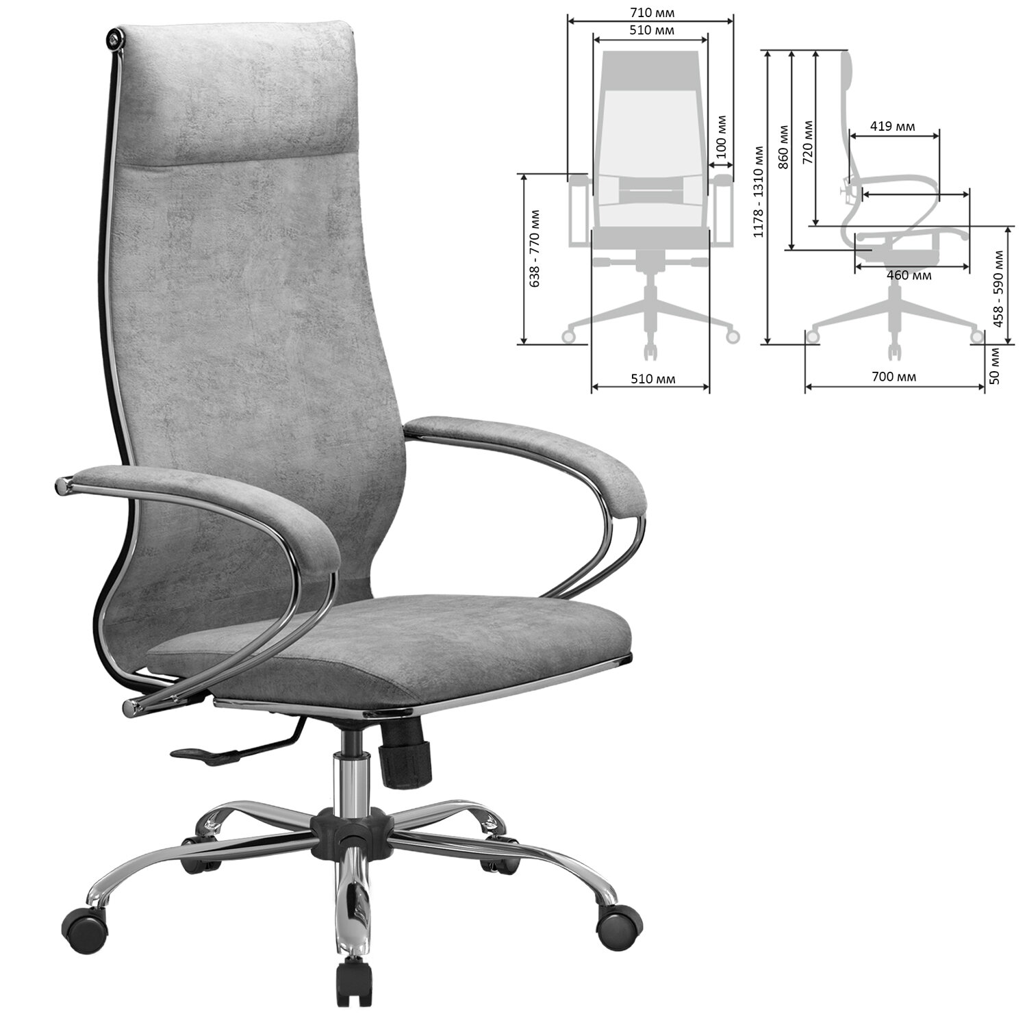 Кресло офисное МЕТТА "L1m 42", хром, сиденье и спинка мягкие, велюр, светло-серое Код товара: 532996 23 955,75 ₽ Купить Производитель:МЕТТА Комфортное, просторное кресло современного дизайна прекрасно подойдет не только для офиса, но и добавит уют в домашний интерьер. Сочетает в себе надежность стального каркаса, абсолютную эргономику и набор индивидуальных регулировок для каждого. Сверхпрочный стальной каркас. Спинка высокая и широкая, эргономичной формы с ярко выраженной поясничной поддержкой. Эргогиб, как у кресел SAMURAI. Спинка имеет стальной регулируемый поясничный подпор. Уникальная форма передней части сиденья исключает сдавливание сосудов ног, сохраняя ощущение легкости в ногах. Сиденье мягкое и широкое, объемное, на столярном каркасе. Регулировка глубины сиденья за счет перемещения места крепления сиденья (450-480 мм). Обивка велюр "Bravo", с прошивкой "LUX Simple". Подлокотники стальные классические, покрытые зеркальным хромом, с мягкими накладками из экокожи. Пятилучие – металлическое хромированное. Модель оснащена синхромеханизмом качания M20 (S 1.0) с фиксацией в рабочем положении. Ролики полиамидные с полиуретановым ободком (D-50 мм).Производство: РоссияМатериал обивки: велюрМаксимальная нагрузка: до 150 кгЦвет обивки: светло-серыйТип механизма кресла: "Synchro" - синхронное отклонение сиденья и спинки в соотношении 1:3, фиксация в нескольких положенияхКрестовина (пятилучие): металл/хромированный металлПодлокотники: металл с накладкамиМинимальная высота кресла: 1178 ммМаксимальная высота кресла: 1310 ммШирина кресла: 710 ммМинимальная высота до сиденья: 458 ммМаксимальная высота до сиденья: 590 ммСиденье ширина: 510 ммСиденье глубина: 460 ммСпинка ширина: 510 ммСпинка высота: 860 ммСерия: L1m 42Соответствует требованиям ГОСТа: ГОСТ 19917-2014Поставляется в разобранном виде: даВес: 20,01 кгРазмер упаковки: 91.5 × 68 × 25.4 смОбъём: 0.158 м3Промежуточная упаковка: 1 штТранспортная упаковка: 1 штШтрих-код: 4665316738038 Файлы Сертификат-1.jpg Сертификат-2.jpg Сертификат-3.jpg Сертификат-4.jpg Сертификат-5.jpg Сертификат-6.jpg