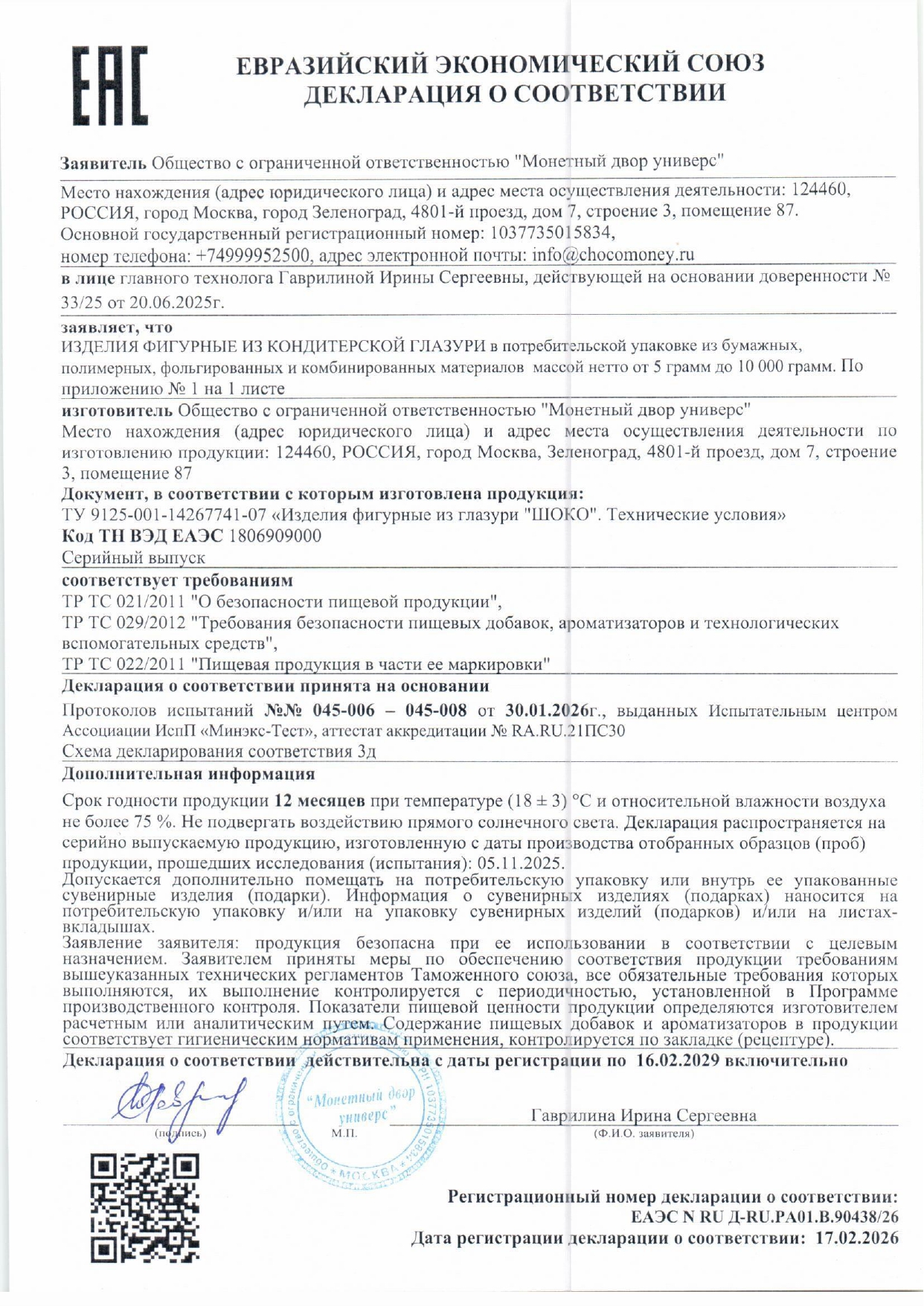 Шоколад порционный МОНЕТНЫЙ ДВОР, молочный шоколад 42%, 96 плиток по 5 г, в шоубоксах Код товара: 621537 1 408,18 ₽ Купить Производитель:МОНЕТНЫЙ ДВОР Молочный шоколад, изготовленный из высококачественного сырья. Содержание какао - 42%. Порционные плитки по 5 г в индивидуальной упаковке. Прекрасный бизнес-сувенир для различных промо-акций, выставок, презентаций или просто приятный сладкий подарок. Производство: РоссияТип товара: шоколад порционныйСерия: Шоколад порционныйВид шоколада: молочныйВкус: молочный 42%Вес нетто: 480 гСоответствует требованиям ГОСТа: нетТип упаковки: шоу-боксСрок годности: 18 мес.Фирма-производитель: Монетный двор универсСрок годности: 18 месВес: 549 грРазмер упаковки: 6.2 × 14.1 × 6.7 смОбъём: 0.0008 м3Промежуточная упаковка: 4 штТранспортная упаковка: 4 штШтрих-код: 4607131384762 Файлы Сертификат-1.jpg Сертификат-2.jpg Сертификат-3.jpg Сертификат-4.jpg