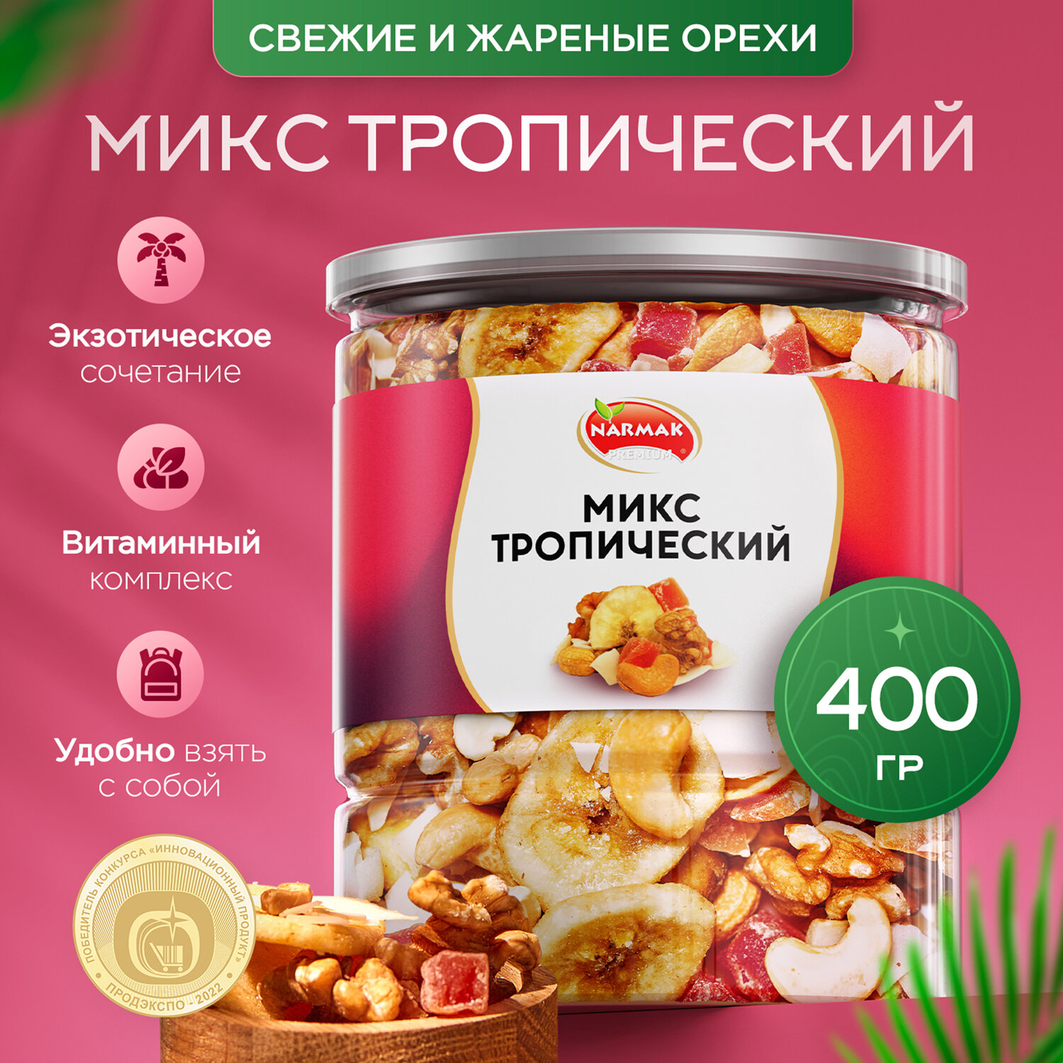 Орехи и сухофрукты NARMAK "Микс Тропический", грецкий орех, кешью, кокос, банан, цукаты, 400 г Код товара: 623569 752,9 ₽ Купить Производитель:NARMAK Смесь NARMAK "Микс Тропический" состоит из самых вкусных ингредиентов. В состав входят: кешью жареный, грецкий орех, цукаты папайи, банановые и кокосовые чипсы. Этот микс собрал в себе большое количество минералов и витаминов, которые благотворно влияют на организм человека. Условия хранения: хранить при температуре от +2 °C до +25 °С при относительной влажности воздуха не более 75% Состав: кешью жареный, цукаты папайи, банановые чипсы, кокосовые чипсы, грецкий орех очищенный.Производство: РоссияТип продукта: банановые чипсы, грецкий орех, смесь орехов, цукатыВес нетто: 400 гВкус: МИКС ТропическийТип упаковки: Пластиковая банкаСрок годности: 12 мес.Фирма-производитель: ООО "Позитив"Срок годности: 12 месВес: 482 грРазмер упаковки: 10.6 × 14.2 × 10.6 смОбъём: 0.0018 м3Промежуточная упаковка: 20 штТранспортная упаковка: 20 штШтрих-код: 4631161331496 Файлы Сертификат-1.jpg Сертификат-2.jpg Сертификат-3.jpg Сертификат-4.jpg