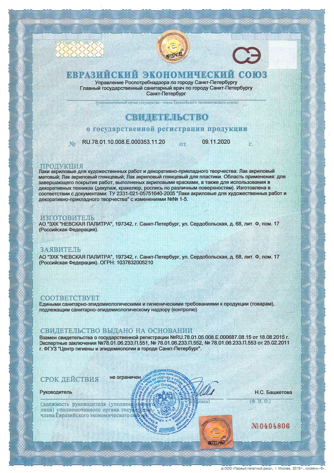 Лак акриловый глянцевый "Декола", 50 мл, в банке, Невская Палитра Код товара: 190989 162,88 ₽ Купить Производитель:НЕВСКАЯ ПАЛИТРА Лак на водной основе. Предназначен для финишной отделки. Образует прочную глянцевую пленку, несмываемую водой. Производство: РоссияТип товара: лакСерия: ДеколаОбъём: 50 млЦвет: бесцветныйУпаковка: пластиковая банкаЭффект покрытия: глянцевыйВес: 75 грРазмер упаковки: 6.3 × 4.2 × 4.2 смОбъём: 0.0001 м3Промежуточная упаковка: 6 штТранспортная упаковка: 72 штШтрих-код: 4690688001046 Файлы Приложение-1.pdf Приложение-2.pdf Сертификат-1.jpg Сертификат-2.jpg Сертификат-3.jpg Сертификат-4.jpg Сертификат-5.jpg Сертификат-6.jpg