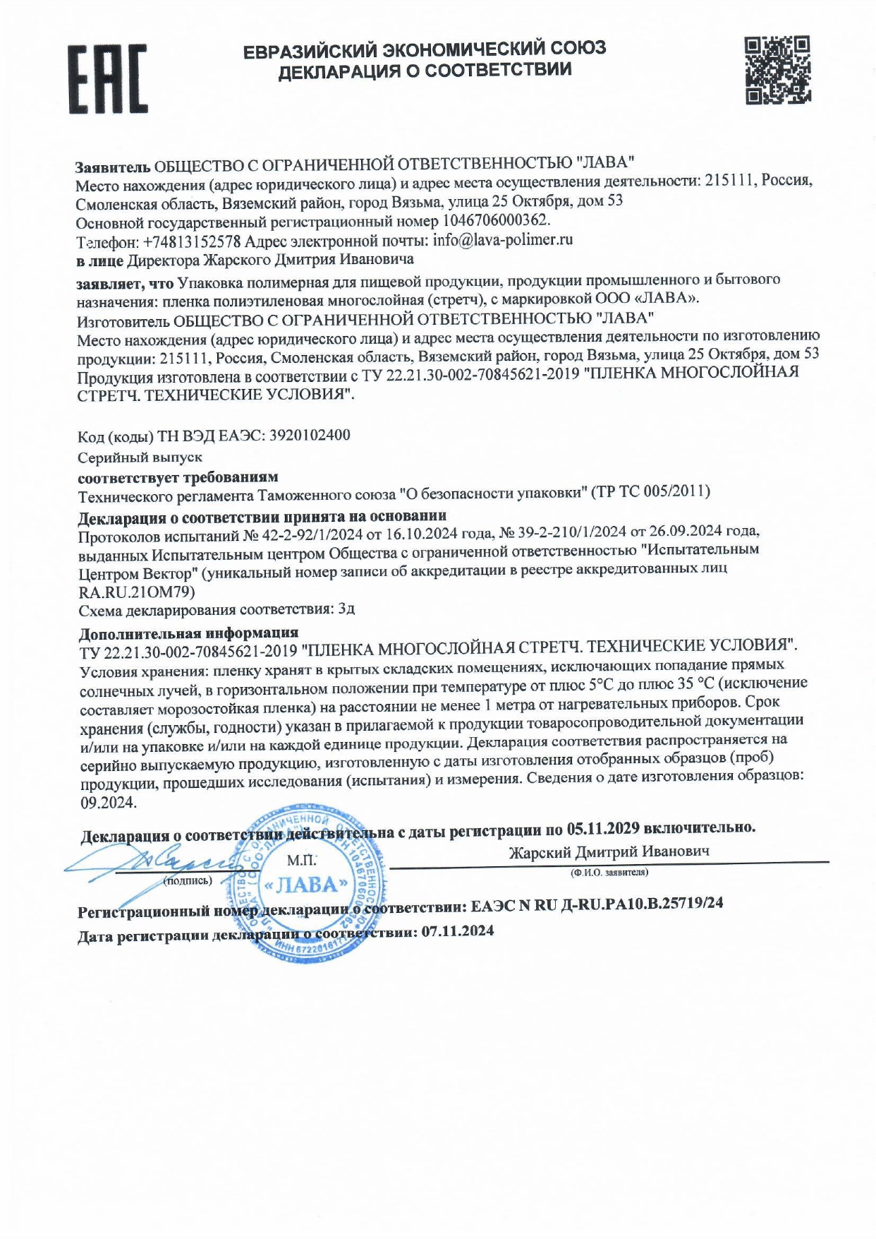 Стрейч-пленка для ручной упаковки 50 см х 307 м, 17 мкм, 2,4 кг - нетто, ПЕРВИЧНОЕ СЫРЬЕ, растяжение 300% Код товара: 600864 914,94 ₽ Купить Производитель:NO NAME Стрейч-пленка активно используется на производстве, складах, магазинах. Гарантирует максимальную надежность и целостность при упаковке и транспортировке товара. Стрейч-пленка плотностью 17 мкм, произведенная из первичного сырья, предназначена для упаковки и палетирования товара на складах и магазинах, также можно использовать для упаковки пищевой продукции. Стрейч-пленки шириной 50 см и длиной намотки 307 м хватит на продолжительное время. Цвет - прозрачный, растяжение 300%.Производство: РоссияШирина: 500 ммТолщина: 17 мкмДлина намотки: 307 мВес без втулки: 2.4 кгВнутренний диаметр втулки: 48 ммРастяжение: 300 %Сырье: первичноеЦвет: прозрачныйВес: 2,67 кгРазмер упаковки: 10 × 52.3 × 10 смОбъём: 0.0071 м3Промежуточная упаковка: 6 штТранспортная упаковка: 6 штШтрих-код: 4607025336372 Сертификат-1.jpg Сертификат-2.jpg