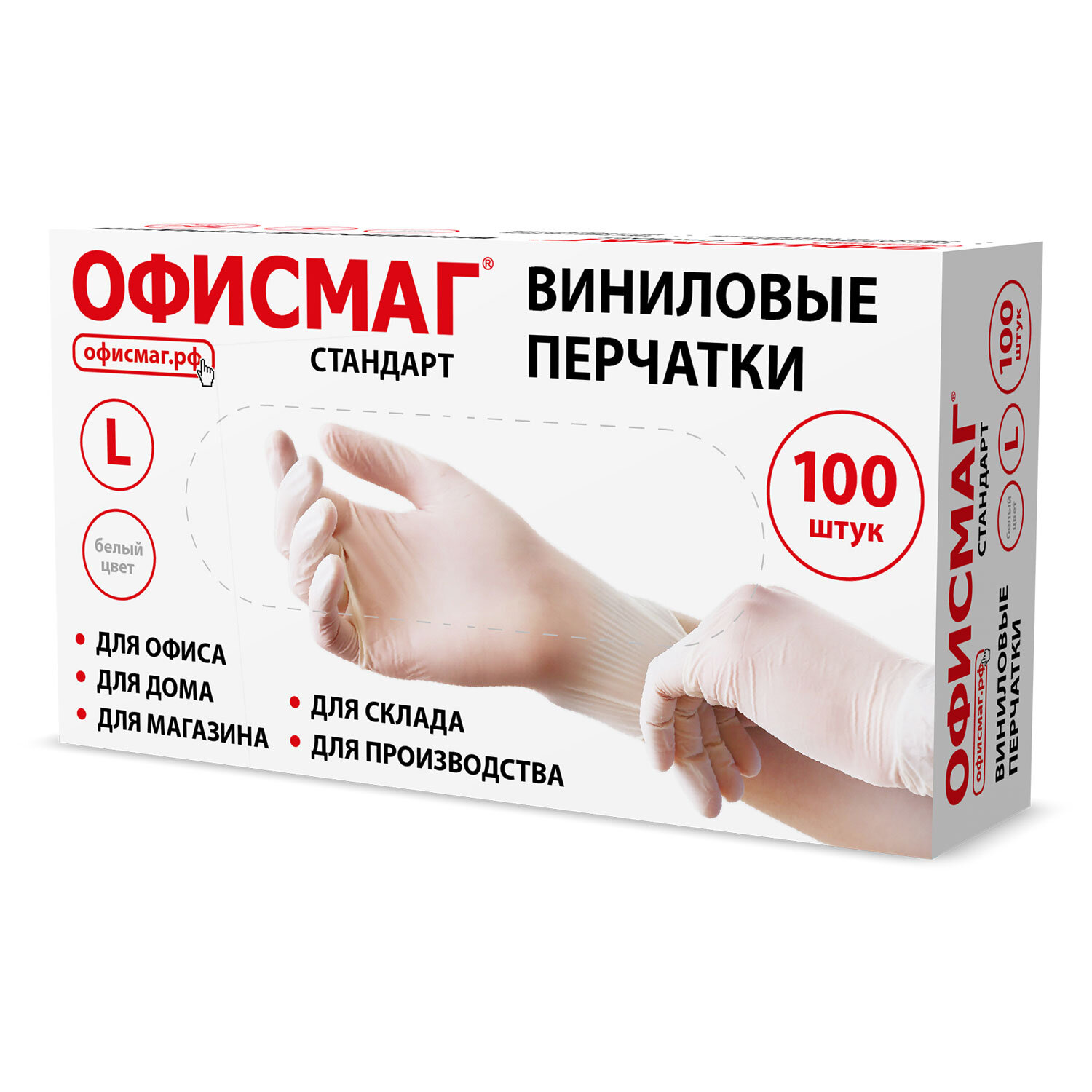Перчатки виниловые универсальные 50 пар (100 шт), размер L (большой), белые, ОФИСМАГ СТАНДАРТ Код товара: 702181 245,83 ₽ Купить Производитель:ОФИСМАГ Универсальные виниловые перчатки ОФИСМАГ незаменимы при проведении различных хозяйственно-бытовых работ. Могут использоваться в клининговой, строительной сферах, при работе в саду, при оказании косметических услуг, в пищевой промышленности. Универсальные виниловые перчатки ОФИСМАГ отличаются повышенной прочностью, хорошо растягиваются, сохраняют тактильную чувствительность рук. Помогают защитить руки при проведении различных хозяйственно-бытовых работ: мытье посуды, стирке, уборке, работе в саду, ремонте, покраске. Подойдут для использования в салонах красоты, парикмахерских и заведениях общепита. Не предназначены для защиты от опасных химикатов. Комфортны в использовании, не вызывают аллергических реакций на коже. Закатанный край манжеты защищает от проникновения капель воды под перчатку. Подходят для обеих рук. Поставляются в картонном диспенсере с перфорацией для удобного извлечения.Производство: КитайМатериал основы: винилРазмер: LКоличество в комплекте: 50 парВнутреннее напыление: нетОдноразовые: даСерия: СтандартТип манжеты: закатанный крайЦвет: белыйУпаковка: картонный диспенсерВес: 470 грРазмер упаковки: 6 × 20 × 11 смОбъём: 0.0015 м3Промежуточная упаковка: 10 штТранспортная упаковка: 10 штШтрих-код: 4606224521923 Файлы Сертификат-1.jpg