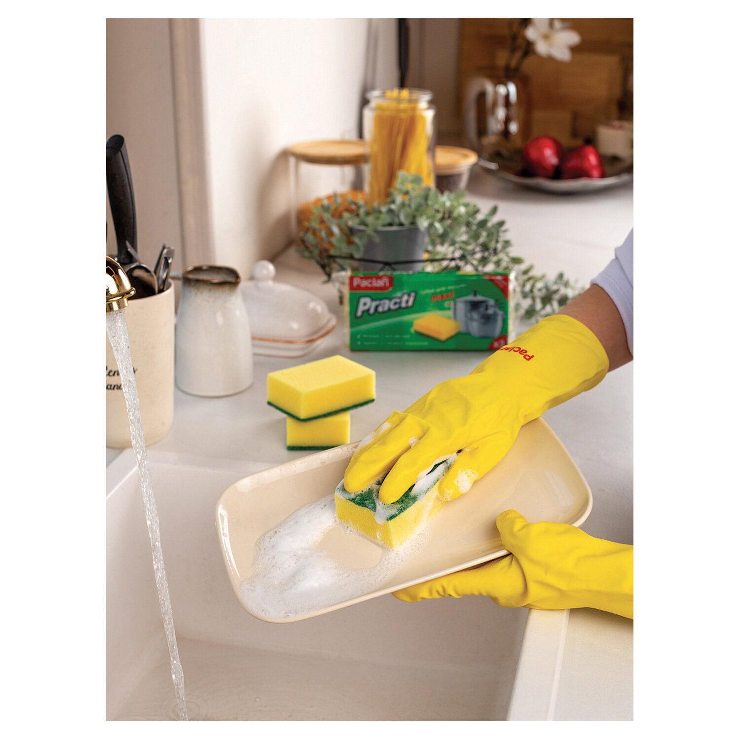 Губки бытовые для мытья посуды, КОМПЛЕКТ 3 шт., чистящий слой (абразив), PACLAN "Practi Maxi" Код товара: 606343 53,49 ₽ Купить Производитель:PACLAN Поролоновые губки применяются для мытья посуды, раковины, ванны, газовой и электрической плиты, кафеля с моющими средствами, при разной степени загрязнённости. Мягкий слой предназначен для очистки деликатной поверхности. Жесткий - для сильных загрязнений. Производство: РоссияПрименение: универсальноеКоличество в упаковке: 3 шт.Чистящий слой: абразивныйВысота: 3.5 смШирина: 6.5 смГлубина: 9.5 смМатериал: поролонЦвет: желтыйУпаковка: пакетВес: 33 грРазмер упаковки: 3.6 × 21.2 × 9.2 смОбъём: 0.0009 м3Промежуточная упаковка: 40 штТранспортная упаковка: 40 штШтрих-код: 4610015984125 Сертификат-1.jpg Сертификат-2.jpg Сертификат-3.jpg