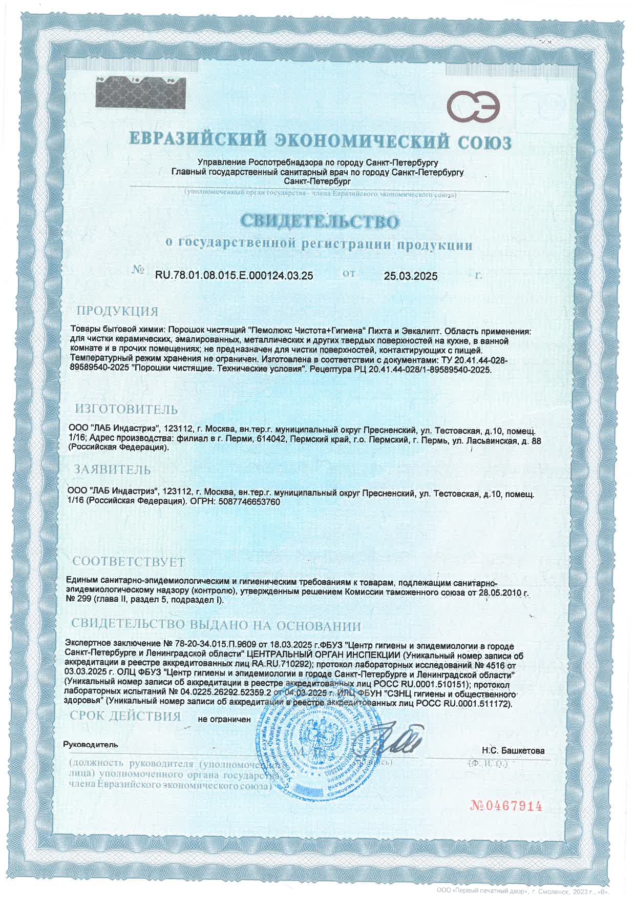 Чистящее средство 480 г, ПЕМОЛЮКС, чистота и гигиена, "Пихта и эвкалипт", порошок Код товара: 601895 111,77 ₽ Купить Производитель:ПЕМОЛЮКС ПЕМОЛЮКС эффективно удаляет жир и въевшуюся грязь. Мощная формула не содержит опасных химикатов и подходит для чистки керамических, эмалированных, металлических и других твердых поверхностей на кухне, в ванной комнате и в других помещениях. Чистящий порошок ПЕМОЛЮКС – универсальное средство для уборки дома. Порошок ПЕМОЛЮКС – это 7 преимуществ быстрой и эффективной уборки. - Пемолюкс не оставляет царапин*. - Средство эффективно борется с въевшейся грязью и жиром на любых поверхностях. - Формула порошка ПЕМОЛЮКС имеет натуральную основу. - Средство поможет навести чистоту во всех бытовых помещениях. - Порошок не содержит агрессивных химикатов, безопасен для посуды и кожи человека. - Средство ПЕМОЛЮКС дарит дому приятный аромат чистоты и свежести. - Перерабатываемая упаковка. *При надлежащем использовании. Применение: нанесите на влажную поверхность, почистите и смойте водой. Продукт может слеживаться. Встряхните упаковку перед первым использованием. Мощная формула ПЕМОЛЮКС с содой и мягким абразивом подходит для чистки керамических, эмалированных, металлических и других твердых поверхностей на кухне, в ванной комнате и прочих помещениях. С осторожностью использовать на полированных и пластиковых поверхностях. Не предназначен для чистки поверхностей, контактирующих с пищей. Состав: больше или равно 30% природного молотого мрамора; более 5% амфотерных ПАВ, соды, сульфата натрия, красителя, отдушки (в том числе лимонена, цитраля). Условия хранения: хранить в сухом месте. Температурный режим хранения не ограничен. Возможно поступление товара как в старом дизайне ПЕМОЛЮКС СОДА-7 "Ослепительно Белый", так и в новом ПЕМОЛЮКС "Чистота + Гигиена".Производство: РоссияФорма выпуска: порошокСерия: порошокОбъем/вес: 480 мл/гЭффект от использования: отбеливание, очищение поверхности, удаление жира и въевшейся грязиПодходит для поверхностей: акрил, кафель, фаянс, хром, эмальОсобенности: универсальноеОтдушка: СвежестьДозатор: классическийУпаковка: банкаСрок годности: 36 месВес: 523 грРазмер упаковки: 6.7 × 19.6 × 6.7 смОбъём: 0.0009 м3Промежуточная упаковка: 16 штТранспортная упаковка: 16 штШтрих-код: 4660286511056 Файлы Приложение-1.pdf Сертификат-1.jpg Сертификат-2.jpg Сертификат-3.jpg Сертификат-4.jpg Сертификат-5.jpg Сертификат-6.jpg Сертификат-7.jpg Сертификат-8.jpg Сертификат-9.jpg Сертификат-10.jpg Сертификат-11.jpg Сертификат-12.jpg Сертификат-13.jpg Сертификат-14.jpg Сертификат-15.jpg Сертификат-16.jpg Сертификат-17.jpg Сертификат-18.jpg Сертификат-19.jpg Сертификат-20.jpg Сертификат-21.jpg Сертификат-22.jpg Сертификат-23.jpg Сертификат-24.jpg Сертификат-25.jpg Сертификат-26.jpg Сертификат-27.jpg