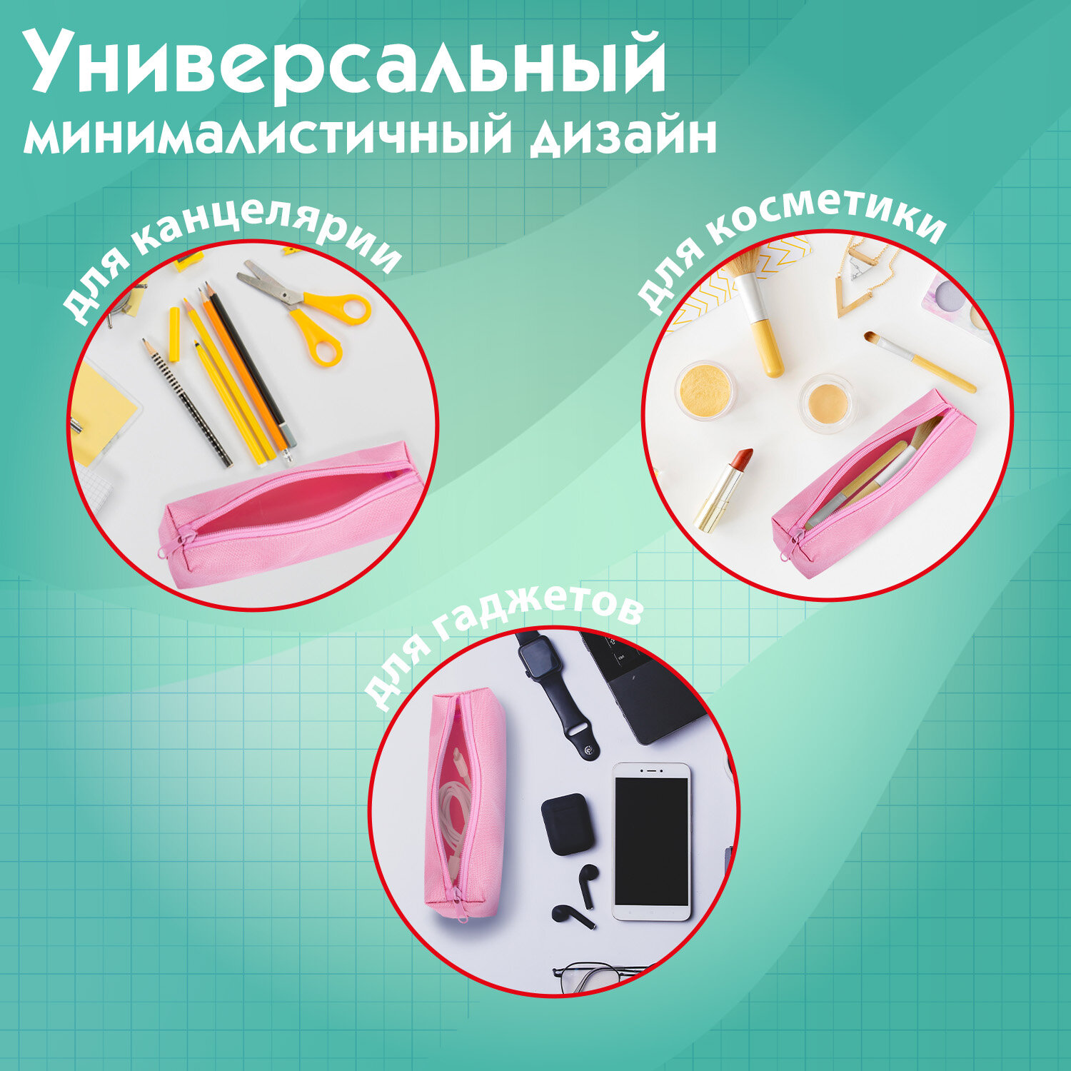 Пенал-тубус ПИФАГОР на молнии, ткань, пастельно-розовый, 20х5 см Код товара: 272260 118,04 ₽ Купить Производитель:ПИФАГОР Пенал-тубус ПИФАГОР выполнен из прочного, мягкого материала. Пенал вмещает до 50 канцелярских принадлежностей стандартных размеров. Надежная молния оснащена удобным металлическим бегунком. Пенал имеет оптимальный размер (20х5 см) для размещения в нем не только письменных принадлежностей, но и повседневных мелочей, косметики, аксессуаров. Таким образом он может выполнять роль универсальной сумочки-косметички, которую можно всегда взять с собой. Удобно открывать и закрывать с помощью металлического бегунка.Производство: КитайТип товара: пенал-тубусЗастежка: молнияНазначение: для девочекКоличество отделений: 1Материал: полиэстерСерия: STANDARTДизайн: Pastel pinkБазовый цвет: пастельный розовыйДлина: 20 смШирина: 5 смУпаковка: прозрачный пакетВес: 33 грРазмер упаковки: 2.2 × 20.5 × 10 смОбъём: 0.0002 м3Промежуточная упаковка: 70 штТранспортная упаковка: 70 штШтрих-код: 4606224431277 Сертификат-1.jpg Сертификат-2.jpg Сертификат-3.jpg