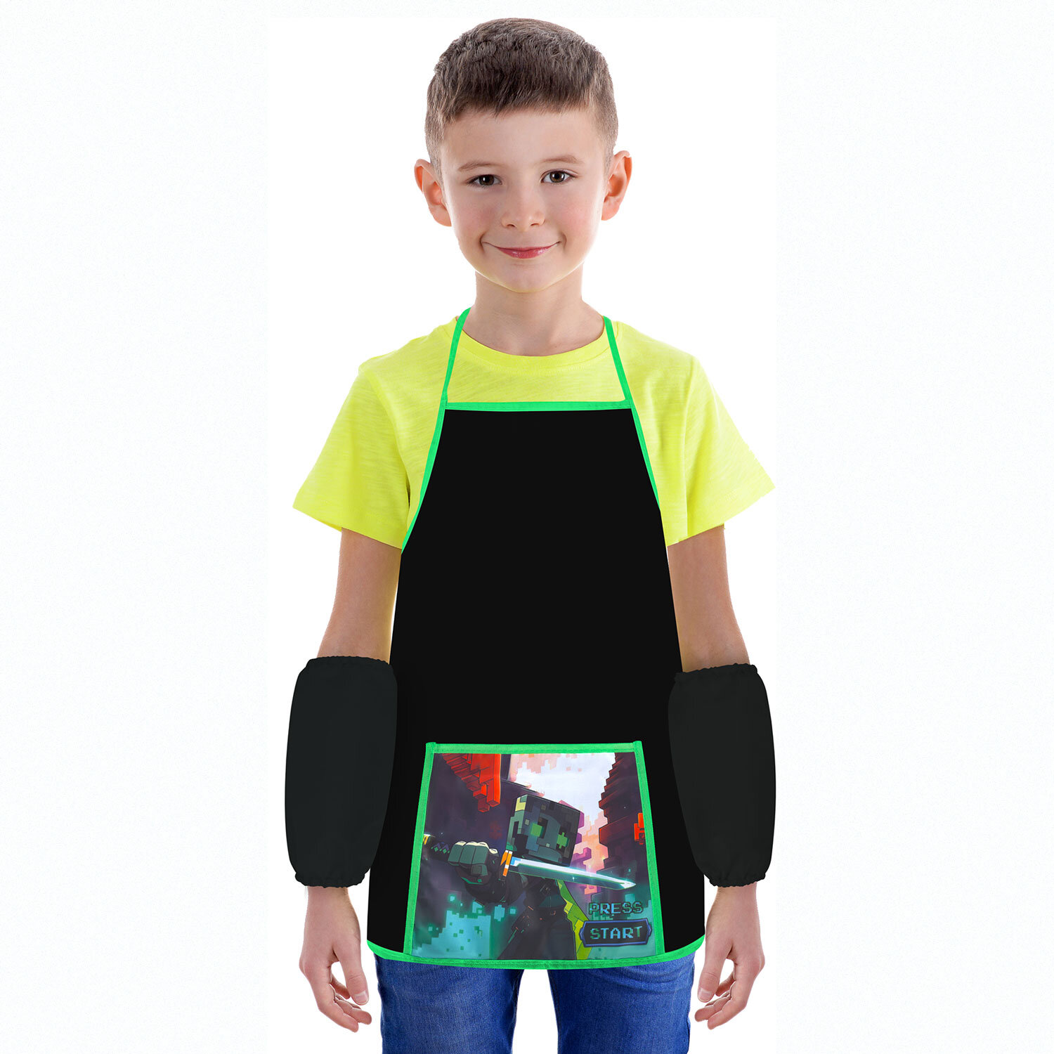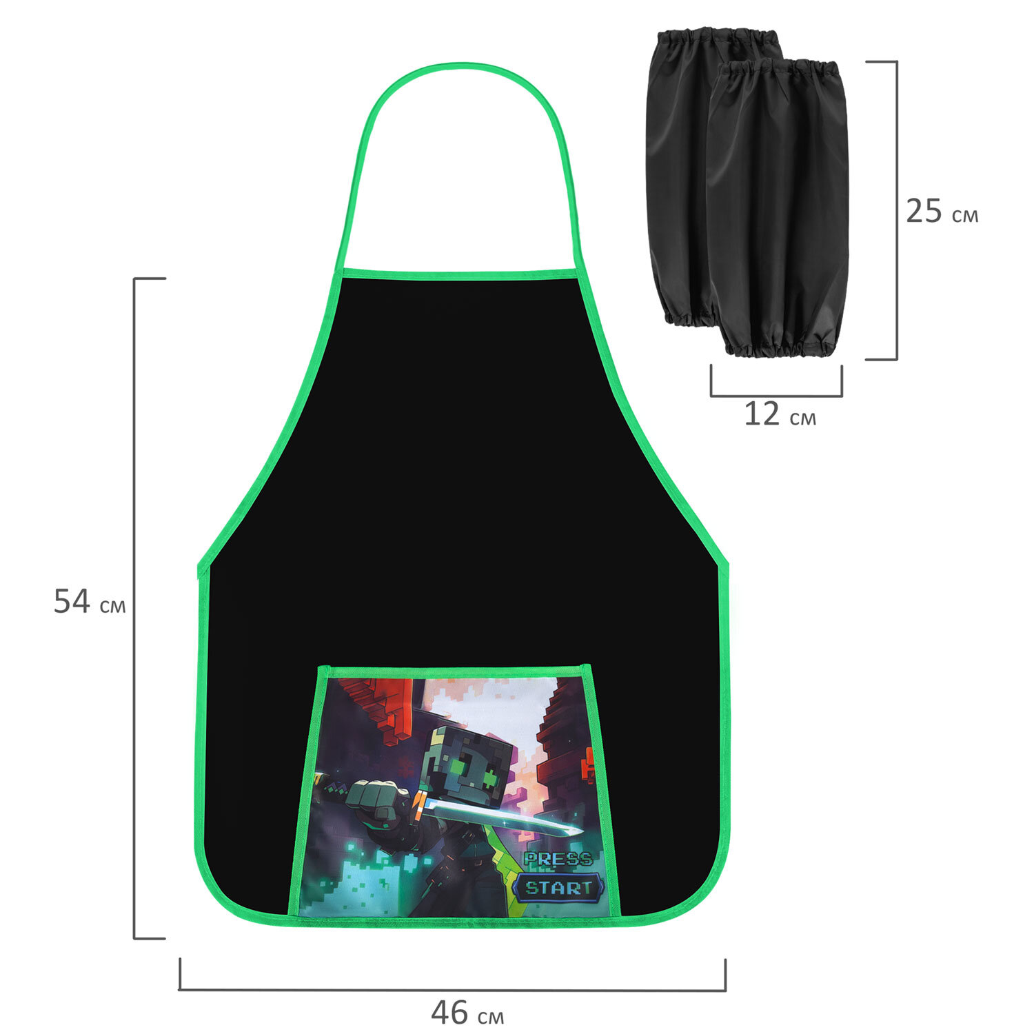 Фартук с нарукавниками для уроков труда ПИФАГОР, 1 карман, 46х54 см, "Sharp sword" Код товара: 273625 247,53 ₽ Купить Производитель:ПИФАГОР Фартук с нарукавниками для уроков труда ПИФАГОР – незаменимая вещь для защиты одежды во время уроков труда и занятий творчеством в школе, детском саду и дома. Предусмотрен для многоразового использования. Фартук и нарукавники изготовлены из водоотталкивающего полиэстера. Стандартный размер фартука – 46x54 см, размер нарукавников – 25х12 см. Кроме того, фартук оснащен карманом для канцелярии и прочих принадлежностей, которые всегда должны быть под рукой во время уроков труда и занятий творчеством. Яркая печать коллекционного дизайна на кармане фартука. Нарукавники оснащены резинкой с обеих сторон. Фартук и нарукавники помогают защитить одежду ребенка от загрязнений во время занятий трудом и творчеством. Набор упакован в прозрачный пакет с европодвесом в сложенном виде. Заметная яркая этикетка с основной информацией о товаре выделяет его в магазине.Производство: РоссияПредназначение: для мальчиковКоличество карманов: 1 шт.Комплектуется нарукавниками: даШирина: 46 смВысота: 54 смВодоотталкивающая пропитка: даСерия: PRIMARYВозрастная группа: 7-10 летДизайн: Sharp swordЦвет: черный/зеленыйМатериал: полиэстерУпаковка: полипропиленовый пакет с европодвесомВес: 56 грРазмер упаковки: 1.7 × 21.5 × 18.4 смОбъём: 0.0006 м3Промежуточная упаковка: 20 штТранспортная упаковка: 20 штШтрих-код: 4606224496917 Сертификат-1.jpg Сертификат-2.jpg Сертификат-3.jpg