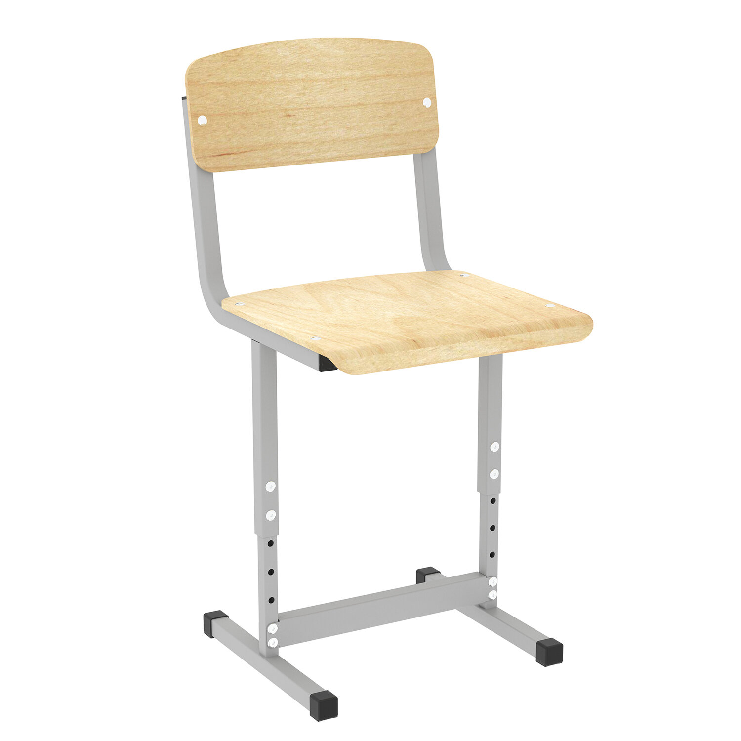 Стул ученический регулируемый ПИФАГОР SC-2, 340х340х625-705 мм, рост 3-5 (130-175 см), серый каркас, фанера Код товара: 533349 2 461 ₽ Купить Производитель:ПИФАГОР Стул регулируемый ПИФАГОР SC-2 предназначен для школ и других учебных заведений. Выполнен из прочного металлического каркаса, что придает дополнительную прочность и надежность конструкции. Удобен и безопасен, соответствует требованиям ГОСТ и СанПиН. Сверхпрочный металлический каркас из стальных труб прямоугольного сечения 25х25х1,2 мм и 20х20х1,2 мм. На каркас нанесено стойкое к механическому воздействию порошковое полимерное покрытие. Опоры регулируемые, позволяют менять высоту до сиденья стула от 340 до 420 мм, шаг регулировки – 40 мм. Спинка и сиденье изготовлены из гнутоклееной фанеры толщиной не менее 8 мм, покрыты бесцветным лаком. Все углы спинки и сиденья притуплены. Торцы труб закрыты пластиковыми заглушками, винты крепления скрыты, что обеспечивает дополнительную безопасность. В нижней части опор располагаются ударопрочные подпятники, защищающие напольное покрытие. Стул соответствует функциональным размерам по ГОСТ 11016-93 и требованиям по ГОСТ 22046-2016.Производство: РоссияСерия: Стул ученический ПИФАГОР SCРостовая группа: 3-5 (для детей ростом 130-175 см)Регулировка по росту: даМатериал каркаса: металлическая труба сечением 25х25 мм и 20х20 мм, толщина стенки 1,2 ммМатериал спинки, сиденья: гнутоклееная фанераМинимальная высота до сиденья: 340 ммМаксимальная высота до сиденья: 420 ммМинимальная высота стула: 625 ммМаксимальная высота стула: 705 ммШирина: 340 ммГлубина: 340 ммТип покрытия: полимерное порошковоеЦвет каркаса: серыйЦвет сиденья: фанера лакСоответствует требованиям ГОСТа: ГОСТ 22046-2016Тип поставки: в разобранном видеКомплектация: инструкция по сборке, фурнитураВес: 3,84 кгРазмер упаковки: 8.8 × 54.6 × 38 смОбъём: 0.0183 м3Промежуточная упаковка: 1 штТранспортная упаковка: 1 штШтрих-код: 4606224549996 Файлы Сертификат-1.jpg Сертификат-2.jpg Сертификат-3.jpg Сертификат-4.jpg