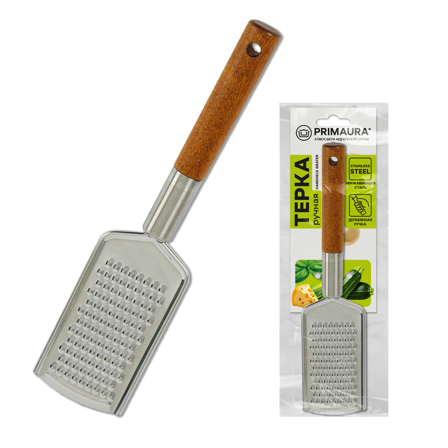 Терка ручная с деревянной ручкой, мелкая нарезка, нержавеющая сталь, PRIMAURA (ПРИМАУРА) Код товара: 702090 154,38 ₽ Купить Производитель:PRIMAURA Ручная терка PRIMAURA – ваша незаменимая помощница на кухне. Благодаря острым лезвиям, прочной конструкции, компактному размеру и удобной ручке она легко справится с любыми продуктами и сделает приготовление блюд максимально простым и комфортным. Терки и овощерезки находятся в прямом контакте с пищевыми продуктами, поэтому важную роль играет материал, из которого сделан инструмент. Терка PRIMAURA изготовлена из качественных материалов, которые соответствуют всем требованиям безопасности – это дерево и ферритная нержавеющая сталь SUS430, отличающаяся высокой коррозионной стойкостью, прочностью и устойчивостью к окислению. Средняя терка отличается от стандартных лезвий терок уменьшенным размером отверстий (3 мм), что позволяет измельчать продукты в 2–3 раза мельче. Является универсальным решением для работы абсолютно с любыми продуктами. Часто используется при создании салатов, закусок или кондитерских изделий, идеальна для измельчения сыра, цедры, шоколада, орехов и овощей. Все лезвия превосходно заточены, что обеспечивает качественное и быстрое измельчение продуктов. Терку удобно держать использовать и хранить благодарю оптимальному размеру – 25х6х2 см. А легкий вес изделия (70 г) позволит вам не уставать при долгом использовании. Рекомендации по использованию: 1) Сразу после каждого использования терку следует очистить, тщательно вымыть и высушить. 2) При засорении отверстий не рекомендуется использовать абразивные средства или металлические скребки – можно воспользоваться щеткой, которой удобно очистить все поверхности. 3) Храните терку в сухом месте, вдали от агрессивных химикатов, которые могут вызвать коррозию, и металлических приборов, подверженных коррозии.Производство: КитайТип товара: терка ручнаяНазначение: универсальнаяКоличество типов лезвий: 1Тип лезвий: средниеМатериал граней: Нержавеющая стальМатериал ручки: ДеревоЦвет ручки: натуральное деревоВысота: 25 смШирина: 6 смГлубина: 2 смУпаковка: пакет с европодвесомВес: 88 грРазмер упаковки: 2.4 × 27.7 × 6.2 смОбъём: 0.0003 м3Промежуточная упаковка: 40 штТранспортная упаковка: 240 штШтрих-код: 4606224519975 Файлы