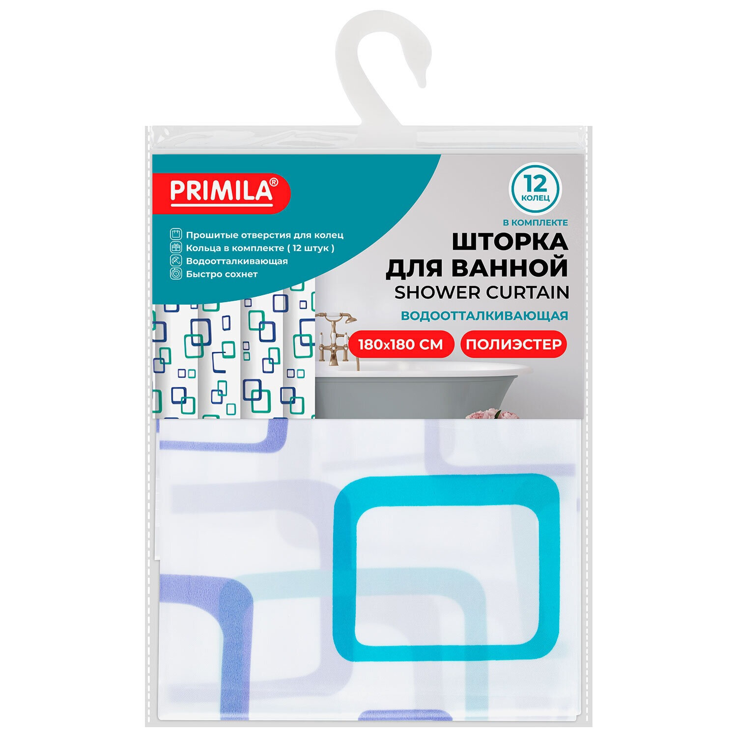 Шторка для ванной ПОЛИЭСТЕР, 180х180 см, кольца в комплекте, ФИГУРЫ, PRIMILA (ПРИМИЛА) Код товара: 700081 374,35 ₽ Купить Производитель:PRIMILA Шторка для ванной комнаты PRIMILA – залог чистоты и уюта ванной комнаты. Используется для защиты пола, стен, мебели и зеркала от брызг. Эта шторка идеально впишется в любой интерьер. Шторка для ванной PRIMILA изготовлена из качественного, практичного, износостойкого полиэстера, что гарантирует отсутствие заломов и водостойкость. Быстро сохнет, не шуршит, без запаха и приятная на ощупь. Шторку можно стирать в стиральной машине при температуре до 60 °С. В комплекте с шторкой идут 12 прочных полипропиленовых колец, которые подойдут под любой тип карниза. • Основные характеристики: - Размер: 180х180 см. - Цвет: белый с рисунком. - Материал: полиэстер. - Плотность шторки: 80 г/м2. • Основные преимущества: - Устойчива к плесени. - Легко вписывается в любой интерьер. - Не требует сложного ухода. - Долговечна и практична в использовании. - Безопасна для здоровья.Производство: КитайРазмер (ДхШ): 180х180 смНаличие колец в комплекте: даВид принта: рисунокДизайн: Геометрические фигурыВодонепроницаемая: даВодоотталкивающая: даОсобенности: Нет данныхПлотность материала: 80 г/м2Материал: полиэстерЦвет: белыйВес: 359 грРазмер упаковки: 2.7 × 30.3 × 22.4 смОбъём: 0.0013 м3Промежуточная упаковка: 72 штТранспортная упаковка: 72 штШтрих-код: 4606224466910 Сертификат-1.jpg Сертификат-2.jpg Сертификат-3.jpg