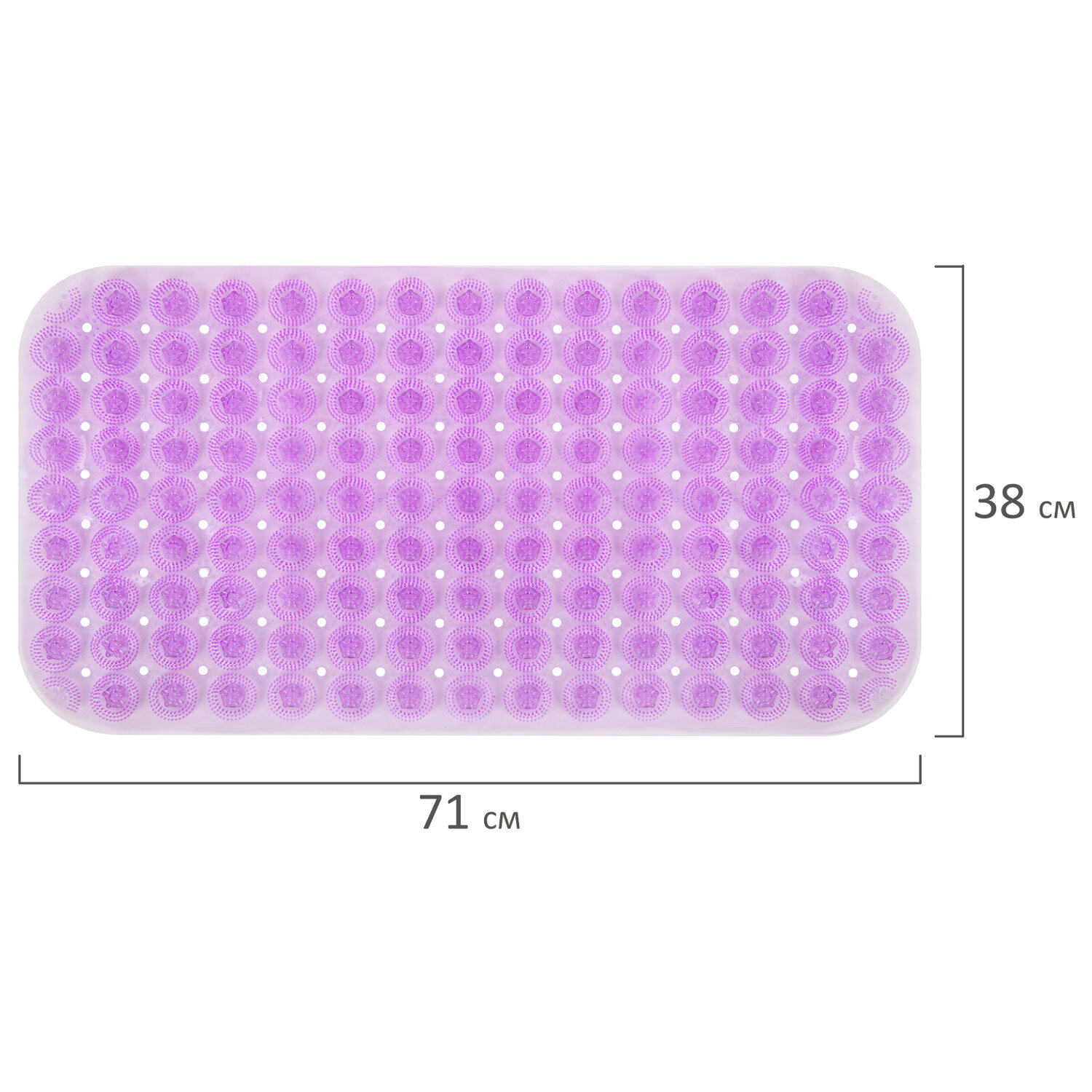 Коврик для ванны противоскользящий 71х38 см, массажный, "Цветы", прозрачно-фиолетовый, ПВХ, PRIMILA (ПРИМИЛА) Код товара: 700373 464,25 ₽ Купить Производитель:PRIMILA Противоскользящий коврик для ванны PRIMILA обеспечит безопасность и комфорт во время купания. Предназначен для защиты от падений во время водных процедур. Противоскользящий коврик для ванны изготовлен из прочного ПВХ-материала. Размер: 71х38 см. Форма: прямоугольник с закругленными углами. Рисунок: цветы. По всей задней поверхности коврика равномерно распределены присоски. Мягкая фактурная поверхность с выступами обеспечивает дополнительный массажный эффект для ступней. Перед использованием наберите в ванну теплую воду, положите коврик и плотно прижмите каждую присоску, чтобы закрепить коврик. Поднимите его за края и убедитесь, что он надежно закреплен. Коврик предназначен для использования на гладких, ровных, чистых и влажных поверхностях. Внимание! Коврик не прилипает к текстурированным, выложенным плиткой и неровным поверхностям! Коврик легко очищается и быстро сохнет, что делает его идеальным выбором для повседневного использования.Производство: КитайНазначение: в ваннуРазмер коврика для ванной (ДхШ): 71х38 смРазмер коврика для туалета (ДхШ): - смТолщина: 0 ммКоличество в комплекте: 1 шт.Цвет: светло-фиолетовыйОсобенности: на присоскахСерия: СтандартДизайн: ЦветыМатериал: ПВХВес: 768 грРазмер упаковки: 0.6 × 74.9 × 38.3 смОбъём: 0.0026 м3Промежуточная упаковка: 24 штТранспортная упаковка: 24 штШтрих-код: 4606224474106 Сертификат-1.jpg Сертификат-2.jpg Сертификат-3.jpg