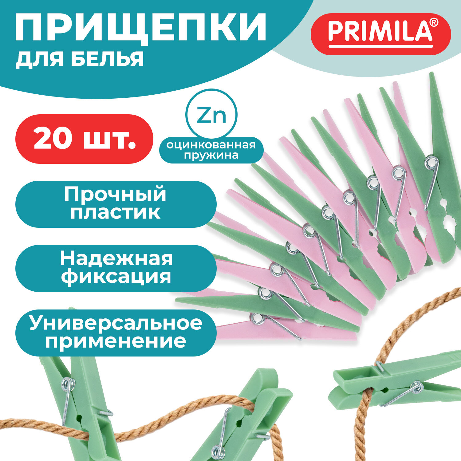Прищепки бельевые 7,4 см, КОМПЛЕКТ 20 штук, пластик, ассорти, PRIMILA (ПРИМИЛА) STANDARD Код товара: 700517 132,73 ₽ Купить Производитель:PRIMILA Прищепки бельевые PRIMILA STANDARD – лучшее решение для максимально эффективной сушки белья. Универсальны в применении – подходят для улицы, дома, дачи, бассейна, саун и других помещений. Выбирайте комфорт и практичность с прищепками PRIMILA! Прищепки бельевые PRIMILA STANDARD – прочное и долговечное решение для сушки вашего белья. Изготовлены из высококачественного, устойчивого к ультрафиолету пластика, они не деформируются под воздействием солнечных лучей и не окрашивают ткани. Прищепки оснащены прочными пружинами для надежного крепления, обеспечивают равномерное распределение нагрузки и не оставляют следов на одежде. Легкие, удобные в использовании и подходящие для частой эксплуатации прищепки – ваш прекрасный выбор! Основные преимущества прищепок для белья PRIMILA: • Прищепки выполнены из прочного пластика, что позволит использовать изделие максимально долго. • Прочная оцинкованная пружина не заржавеет и обеспечит надежную фиксацию белья во время сушки. • Универсальны в своем применении – подходят не только для домашнего использования, но и для дачи, бассейна, сауны и других помещений, а также улицы. Основные характеристики: • Размер одной прищепки – 7,4х1 см. • Материал – полипропилен. • Пружина из оцинкованной стали. • Выполнены в нейтральных пастельных цветах.Производство: КитайТип товара: Прищепки для бельяКоличество в комплекте: 20 шт.Высота прищепки: 7.4 смМатериал: полипропиленЦвет: ассортиВид крепления: пружинныйВес 1 штуки: 4.3 гСерия: STANDARDУпаковка: пакет с европодвесомВес: 118 грРазмер упаковки: 2.2 × 15.6 × 13 смОбъём: 0.0005 м3Промежуточная упаковка: 60 штТранспортная упаковка: 60 штШтрих-код: 4606224486277 Сертификат-1.jpg Сертификат-2.jpg Сертификат-3.jpg