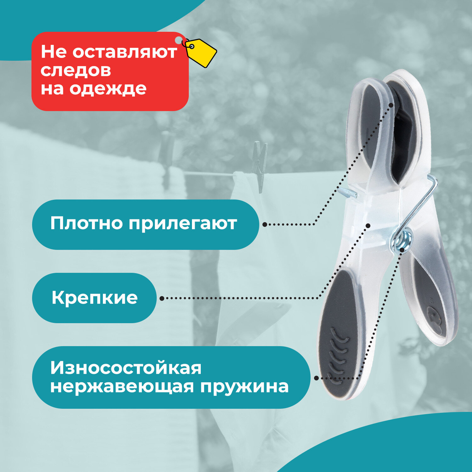 Прищепки бельевые 8,2 см, КОМПЛЕКТ 20 штук, прорезиненный пластик, ассорти, PRIMILA (ПРИМИЛА) PREMIUM Код товара: 700522 231,72 ₽ Купить Производитель:PRIMILA Прищепки бельевые PRIMILA PREMIUM – лучшее решение для максимально эффективной сушки белья. Универсальны в применении – подходят для улицы, дома, дачи, бассейна, саун и других помещений. Выбирайте комфорт и практичность с прищепками PRIMILA! Прищепки бельевые PRIMILA PREMIUM – прочное и долговечное решение для сушки вашего белья. Изготовлены из высококачественного, устойчивого к ультрафиолету пластика и термопластичной резины, они не деформируются под воздействием солнечных лучей и не окрашивают ткани. Прищепки оснащены прочными пружинами для надежного крепления, обеспечивают равномерное распределение нагрузки и не оставляют следов на одежде. Легкие, удобные в использовании и подходящие для частой эксплуатации прищепки – ваш прекрасный выбор! Основные преимущества прищепок для белья PRIMILA: • Прищепки выполнены из прочного пластика, что позволит использовать изделие максимально долго. • Накладки из термопластичной резины предотвратят заломы на белье. • Прочная оцинкованная пружина не заржавеет и обеспечит надежную фиксацию белья во время сушки. • Универсальны в своем применении – подходят не только для домашнего использования, но и для дачи, бассейна, сауны и других помещений, а также улицы. Основные характеристики: • Размер одной прищепки – 8,2х1 см. • Материал – полипропилен/термопластичная резина. • Пружина из оцинкованной стали. • Выполнены в ярких, выделяющихся цветах.Производство: КитайТип товара: Прищепки для бельяКоличество в комплекте: 20 шт.Высота прищепки: 8.2 смМатериал: полипропилен/термопластичная резинаЦвет: ассортиВид крепления: пружинныйВес 1 штуки: 7.2 гСерия: PREMIUMУпаковка: пакет с европодвесомВес: 177 грРазмер упаковки: 4.2 × 18.5 × 17.5 смОбъём: 0.0013 м3Промежуточная упаковка: 60 штТранспортная упаковка: 60 штШтрих-код: 4606224486321 Сертификат-1.jpg Сертификат-2.jpg Сертификат-3.jpg