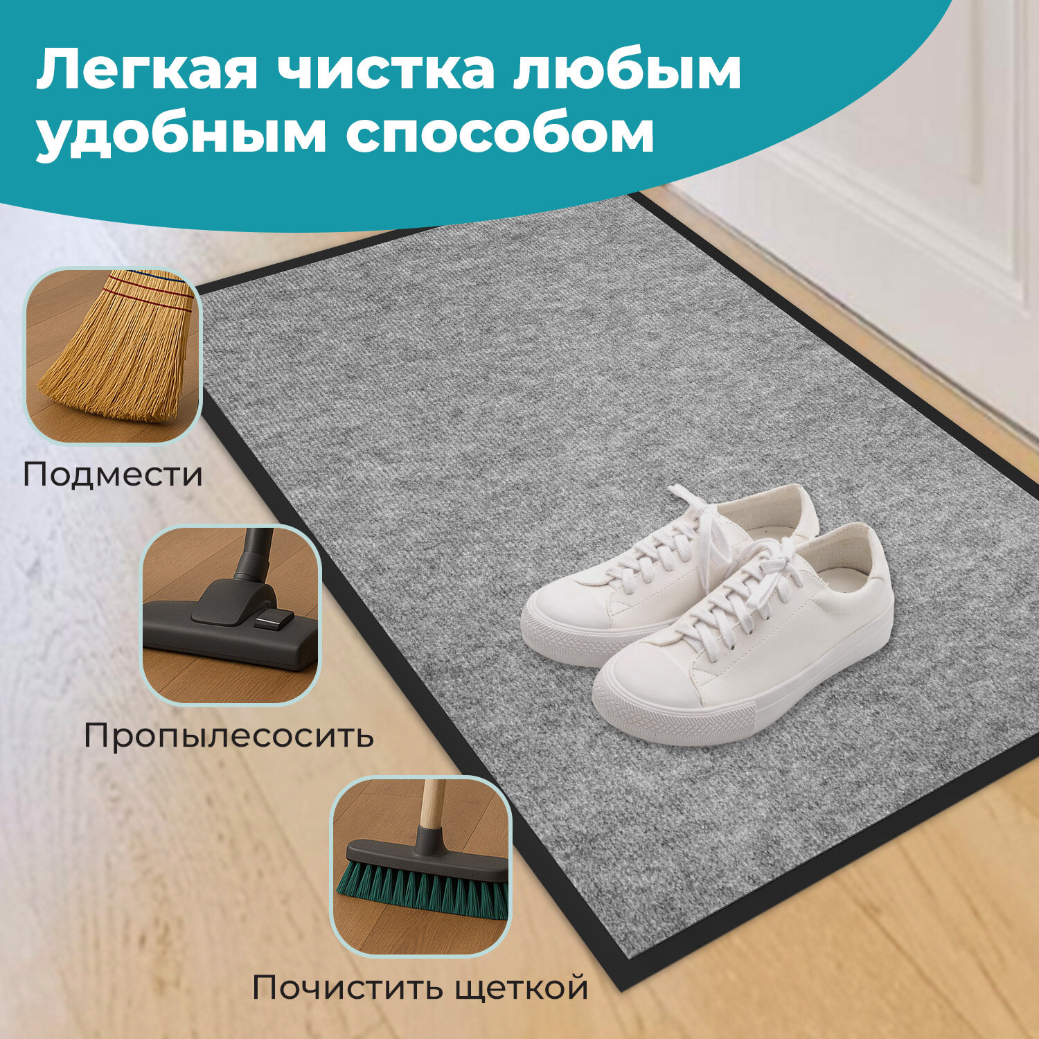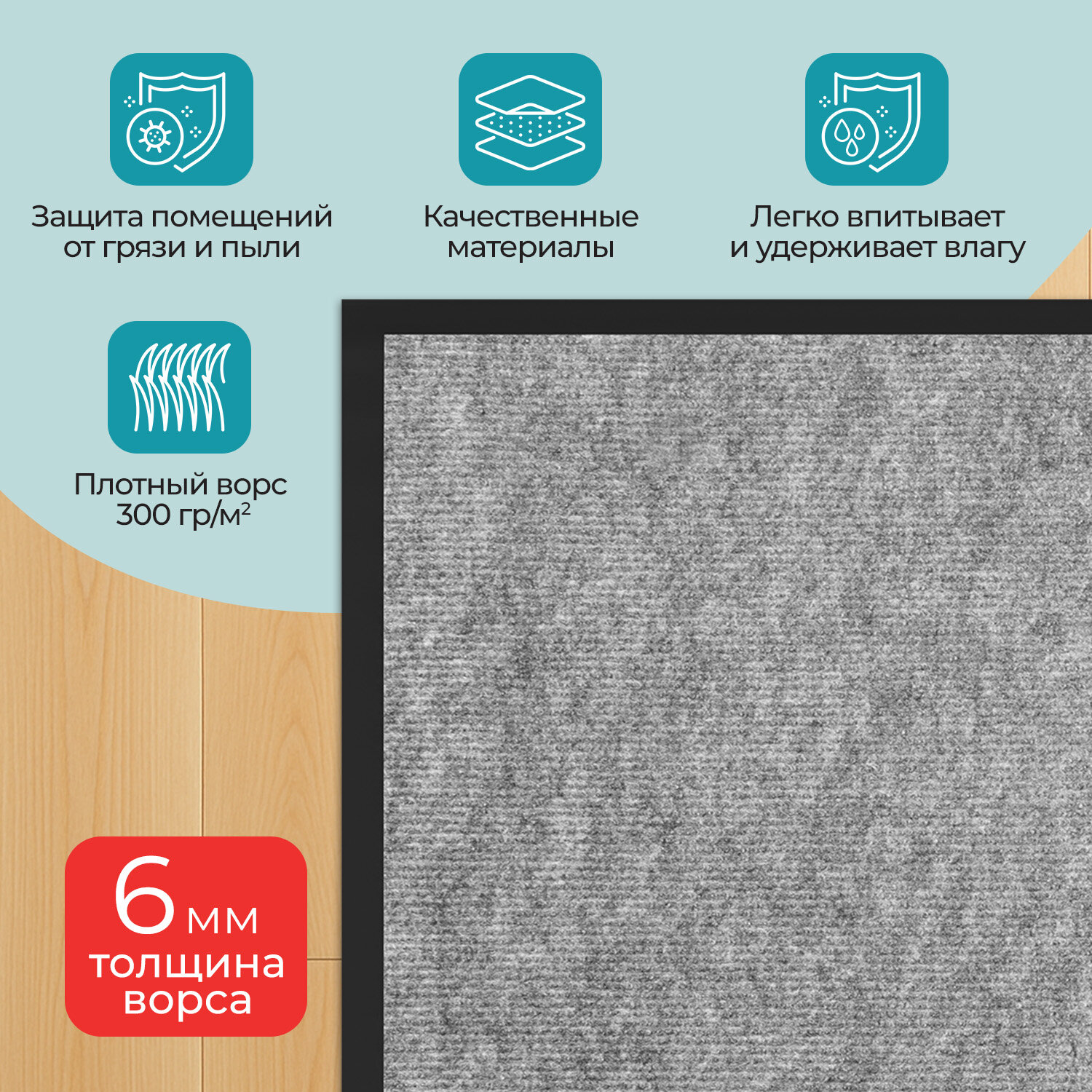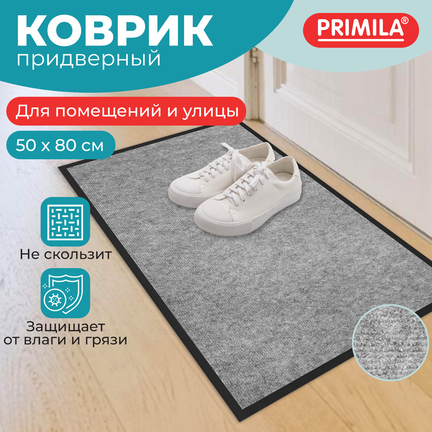 Коврик придверный 50х80 см, СЕРЫЙ, влаго-грязезащитный, 300 г/м2, мелкий рубчик, PRIMILA (ПРИМИЛА) STANDARD Код товара: 701019 380,22 ₽ Купить Производитель:PRIMILA Коврик входной влаго-грязезащитный PRIMILA STANDARD – надежное решение для поддержания чистоты и комфорта в помещении. Коврик станет надежным барьером между улицей и вашим уютным пространством. Коврик влаго-грязезащитный PRIMILA STANDARD – надежный барьер на пути грязи и влаги, предотвращает их попадание в ваш дом или офис. Изготовлен из высококачественного, износостойкого синтетического волокна. Коврик способен выдерживать интенсивную эксплуатацию, не теряя своих свойств. Идеально подходит для использования в прихожей, коридоре или на крыльце. С резиновыми бортиками и прочным нескользящим основанием этот коврик не только легко моется, но и надежно удерживается на полу, предотвращает скольжение и возможные травмы при падении. Основные преимущества: • Высокая впитывающая способность: коврик изготовлен из специальных материалов, которые эффективно поглощают влагу и грязь, предотвращая их распространение по вашему дому. • Антискользящее основание: благодаря прорезиненной основе коврик надежно фиксируется на поверхности, обеспечивая безопасность и комфорт при использовании. • Устойчивость к износу: изготовленный из прочных и долговечных материалов коврик сохраняет свой первоначальный вид даже при интенсивной эксплуатации. • Легкость в уходе: коврик легко чистится – достаточно пропылесосить или промыть под струей воды, чтобы вернуть ему первозданный вид. Основные характеристики: Размер – 50х80 см. Толщина – 6 мм. Ворс изготовлен из синтетического волокна. Коврик выполнен в сером цвете. Во избежание скольжения рекомендуется укладывать коврик на чистую увлажненную поверхность (пыль и песок повышают вероятность скольжения ковра). Рекомендации, которые на 100% исключат скольжение ковра на любых напольных покрытиях: 1. Применить противоскользящую ленту. Её наклеивают по периметру коврика с обратной (изнаночной) стороны. 2. Использовать силиконовые наклейки. Они крепятся с изнаночной стороны в углы коврика (обычно нужно 4 наклейки на один коврик). 3. Применить резиновый клей. Им промазывают всю поверхность коврика, при этом и коврик, и кафель в момент приклеивания должны быть сухими и чистыми. Или использовать любой двусторонний скотч. 4. Использовать фиксаторы для ковров. Это специально разработанные подушечки, которые можно поместить под углы коврика. Обычно они состоят из двух частей – липкой, которая приклеивается к подложке коврика, и рельефной, которая прижимается к полу. 5. Использовать липучки для ковров. Одну сторону липучки прикрепляют к изнанке ковра, а другую – к полу. При сжатии застёжки-липучки создают прочное соединение, препятствующее скольжению.Производство: РоссияНазначение: влаго-грязезащитныйДлина: 80 смШирина: 50 смТолщина: 6 ммМатериал: ворсМатериал ворса: синтетическое волокноМетод производства: иглопробивныеДизайн: мелкоребристыйАнтискользящее основание: даВорсовое покрытие с ребристой текстурой: даЦвет: серыйВес: 671 грРазмер упаковки: 6.9 × 50.1 × 7.1 смОбъём: 0.0031 м3Промежуточная упаковка: 20 штТранспортная упаковка: 20 штШтрих-код: 4606224505572 Сертификат-1.jpg Сертификат-2.jpg Сертификат-3.jpg