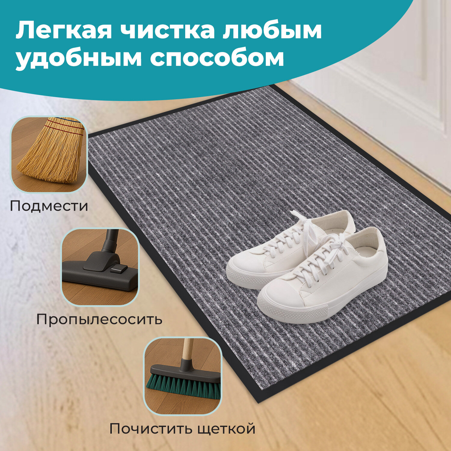 Коврик придверный 40х60 см, СЕРЫЙ, влаго-грязезащитный, 450 г/м2, ребристый, PRIMILA (ПРИМИЛА) EXTRA Код товара: 701022 348,26 ₽ Купить Производитель:PRIMILA Коврик входной влаго-грязезащитный PRIMILA EXTRA – надежное решение для поддержания чистоты и комфорта в помещении. Коврик станет надежным барьером между улицей и вашим уютным пространством. Коврик влаго-грязезащитный PRIMILA EXTRA – надежный барьер на пути грязи и влаги, предотвращает их попадание в ваш дом или офис. Изготовлен из высококачественного, износостойкого синтетического волокна. Коврик способен выдерживать интенсивную эксплуатацию, не теряя своих свойств. Идеально подходит для использования в прихожей, коридоре или на крыльце. С резиновыми бортиками и прочным нескользящим основанием этот коврик не только легко моется, но и надежно удерживается на полу, предотвращает скольжение и возможные травмы при падении. Основные преимущества: • Высокая впитывающая способность: коврик изготовлен из специальных материалов, которые эффективно поглощают влагу и грязь, предотвращая их распространение по вашему дому. • Антискользящее основание: благодаря прорезиненной основе коврик надежно фиксируется на поверхности, обеспечивая безопасность и комфорт при использовании. • Устойчивость к износу: изготовленный из прочных и долговечных материалов коврик сохраняет свой первоначальный вид даже при интенсивной эксплуатации. • Легкость в уходе: коврик легко чистится – достаточно пропылесосить или промыть под струей воды, чтобы вернуть ему первозданный вид. Основные характеристики: Размер – 40х60 см. Толщина – 7 мм. Ворс изготовлен из синтетического волокна. Коврик выполнен в сером цвете. Во избежание скольжения рекомендуется укладывать коврик на чистую увлажненную поверхность (пыль и песок повышают вероятность скольжения ковра). Рекомендации, которые на 100% исключат скольжение ковра на любых напольных покрытиях: 1. Применить противоскользящую ленту. Её наклеивают по периметру коврика с обратной (изнаночной) стороны. 2. Использовать силиконовые наклейки. Они крепятся с изнаночной стороны в углы коврика (обычно нужно 4 наклейки на один коврик). 3. Применить резиновый клей. Им промазывают всю поверхность коврика, при этом и коврик, и кафель в момент приклеивания должны быть сухими и чистыми. Или использовать любой двусторонний скотч. 4. Использовать фиксаторы для ковров. Это специально разработанные подушечки, которые можно поместить под углы коврика. Обычно они состоят из двух частей – липкой, которая приклеивается к подложке коврика, и рельефной, которая прижимается к полу. 5. Использовать липучки для ковров. Одну сторону липучки прикрепляют к изнанке ковра, а другую – к полу. При сжатии застёжки-липучки создают прочное соединение, препятствующее скольжению.Производство: РоссияНазначение: влаго-грязезащитныйДлина: 60 смШирина: 40 смТолщина: 7 ммМатериал: ворсМатериал ворса: синтетическое волокноМетод производства: иглопробивныеДизайн: ребристыйАнтискользящее основание: даВорсовое покрытие с ребристой текстурой: даЦвет: серыйВес: 511 грРазмер упаковки: 7.6 × 39.9 × 7.9 смОбъём: 0.0026 м3Промежуточная упаковка: 24 штТранспортная упаковка: 24 штШтрих-код: 4606224505602 Сертификат-1.jpg Сертификат-2.jpg Сертификат-3.jpg