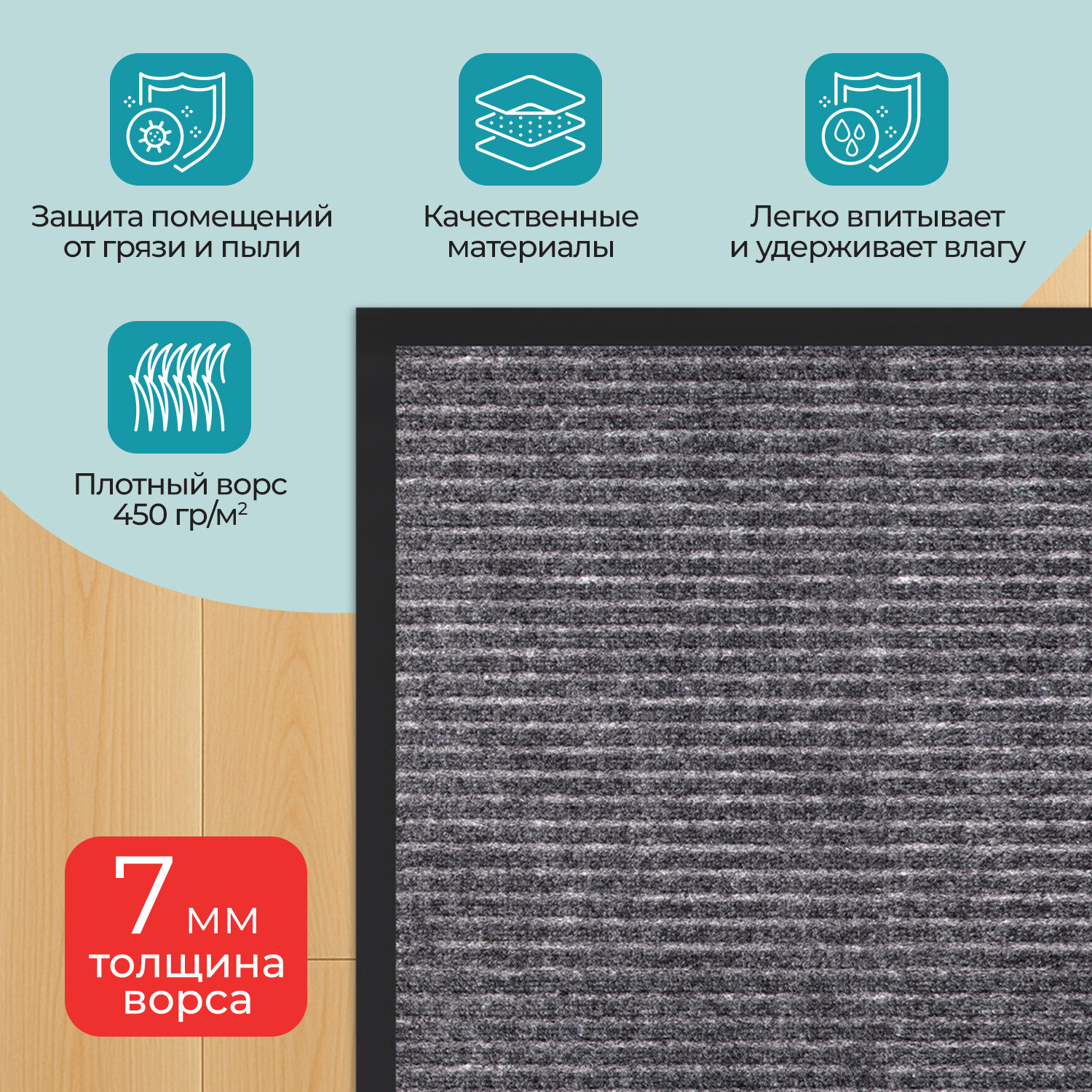 Коврик придверный 50х80 см, СЕРЫЙ, влаго-грязезащитный, 450 г/м2, ребристый, PRIMILA (ПРИМИЛА) EXTRA Код товара: 701023 432,84 ₽ Купить Производитель:PRIMILA Коврик входной влаго-грязезащитный PRIMILA EXTRA – надежное решение для поддержания чистоты и комфорта в помещении. Коврик станет надежным барьером между улицей и вашим уютным пространством. Коврик влаго-грязезащитный PRIMILA EXTRA – надежный барьер на пути грязи и влаги, предотвращает их попадание в ваш дом или офис. Изготовлен из высококачественного, износостойкого синтетического волокна. Коврик способен выдерживать интенсивную эксплуатацию, не теряя своих свойств. Идеально подходит для использования в прихожей, коридоре или на крыльце. С резиновыми бортиками и прочным нескользящим основанием этот коврик не только легко моется, но и надежно удерживается на полу, предотвращает скольжение и возможные травмы при падении. Основные преимущества: • Высокая впитывающая способность: коврик изготовлен из специальных материалов, которые эффективно поглощают влагу и грязь, предотвращая их распространение по вашему дому. • Антискользящее основание: благодаря прорезиненной основе, коврик надежно фиксируется на поверхности, обеспечивая безопасность и комфорт при использовании. • Устойчивость к износу: изготовленный из прочных и долговечных материалов, коврик сохраняет свой первоначальный вид даже при интенсивной эксплуатации. • Легкость в уходе: коврик легко чистится – достаточно пропылесосить или промыть под струей воды, чтобы вернуть ему первозданный вид. Основные характеристики: Размер – 50х80 см. Толщина – 7 мм. Ворс изготовлен из синтетического волокна. Коврик выполнен в сером цвете. Во избежание скольжения рекомендуется укладывать коврик на чистую увлажненную поверхность (пыль и песок повышают вероятность скольжения ковра). Рекомендации, которые на 100% исключат скольжение ковра на любых напольных покрытиях: 1. Применить противоскользящую ленту. Её наклеивают по периметру коврика с обратной (изнаночной) стороны. 2. Использовать силиконовые наклейки. Они крепятся с изнаночной стороны в углы коврика (обычно нужно 4 наклейки на один коврик). 3. Применить резиновый клей. Им промазывают всю поверхность коврика, при этом и коврик, и кафель в момент приклеивания должны быть сухими и чистыми. Или использовать любой двусторонний скотч. 4. Использовать фиксаторы для ковров. Это специально разработанные подушечки, которые можно поместить под углы коврика. Обычно они состоят из двух частей – липкой, которая приклеивается к подложке коврика, и рельефной, которая прижимается к полу. 5. Использовать липучки для ковров. Одну сторону липучки прикрепляют к изнанке ковра, а другую – к полу. При сжатии застёжки-липучки создают прочное соединение, препятствующее скольжению.Производство: РоссияНазначение: влаго-грязезащитныйДлина: 80 смШирина: 50 смТолщина: 7 ммМатериал: ворсМатериал ворса: синтетическое волокноМетод производства: иглопробивныеДизайн: ребристыйАнтискользящее основание: даВорсовое покрытие с ребристой текстурой: даЦвет: серыйВес: 855 грРазмер упаковки: 7.5 × 50.5 × 7.5 смОбъём: 0.0054 м3Промежуточная упаковка: 12 штТранспортная упаковка: 12 штШтрих-код: 4606224505619 Сертификат-1.jpg Сертификат-2.jpg Сертификат-3.jpg