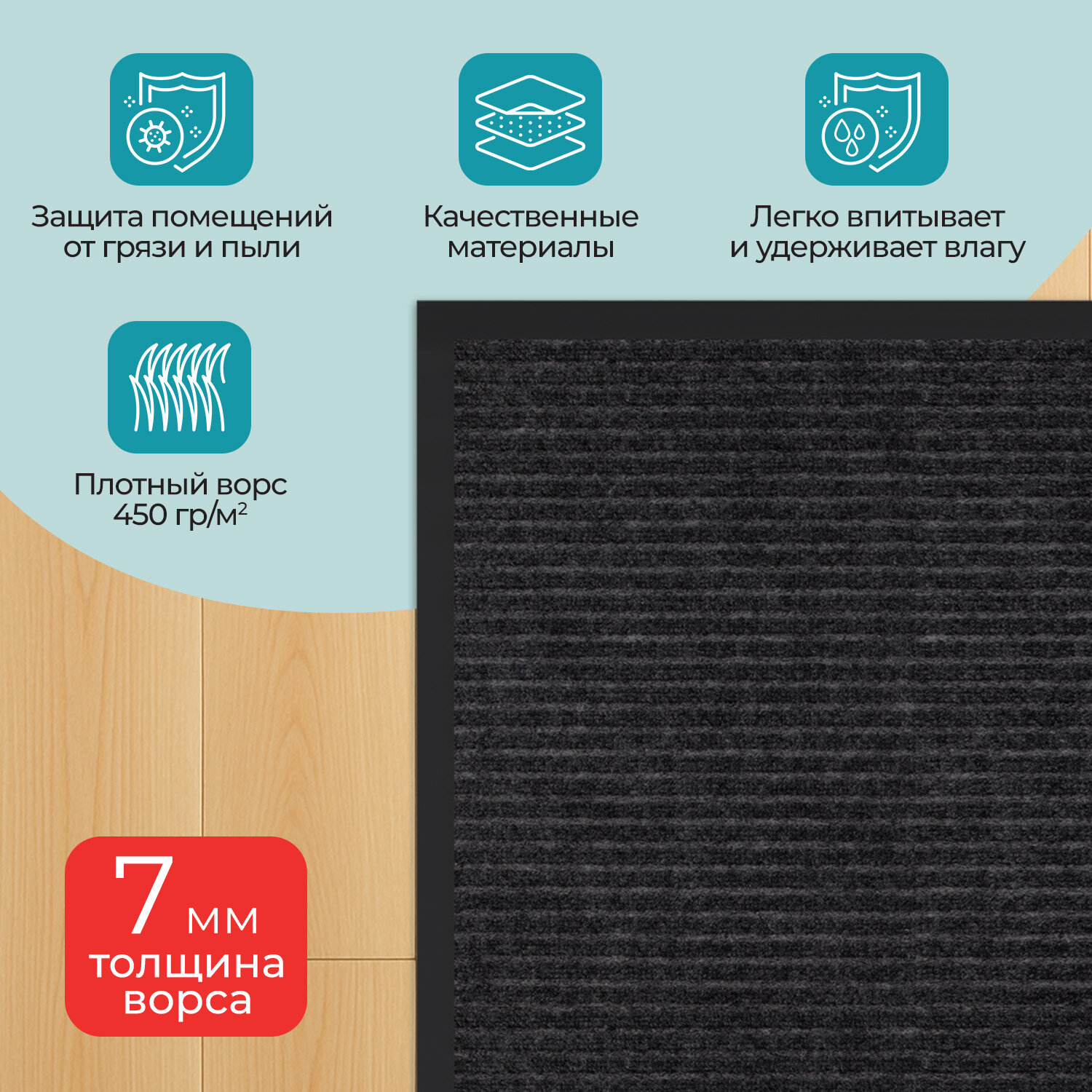 Коврик придверный 60х90 см, ЧЕРНЫЙ, влаго-грязезащитный, 450 г/м2, ребристый, PRIMILA (ПРИМИЛА) EXTRA Код товара: 701029 571,46 ₽ Купить Производитель:PRIMILA Коврик входной влаго-грязезащитный PRIMILA EXTRA – надежное решение для поддержания чистоты и комфорта в помещении. Коврик станет надежным барьером между улицей и вашим уютным пространством. Коврик влаго-грязезащитный PRIMILA EXTRA – надежный барьер на пути грязи и влаги, предотвращает их попадание в ваш дом или офис. Изготовлен из высококачественного, износостойкого синтетического волокна. Коврик способен выдерживать интенсивную эксплуатацию, не теряя своих свойств. Идеально подходит для использования в прихожей, коридоре или на крыльце. С резиновыми бортиками и прочным нескользящим основанием этот коврик не только легко моется, но и надежно удерживается на полу, предотвращает скольжение и возможные травмы при падении. Основные преимущества: • Высокая впитывающая способность: коврик изготовлен из специальных материалов, которые эффективно поглощают влагу и грязь, предотвращая их распространение по вашему дому. • Антискользящее основание: благодаря прорезиненной основе коврик надежно фиксируется на поверхности, обеспечивая безопасность и комфорт при использовании. • Устойчивость к износу: изготовленный из прочных и долговечных материалов коврик сохраняет свой первоначальный вид даже при интенсивной эксплуатации. • Легкость в уходе: коврик легко чистится – достаточно пропылесосить или промыть под струей воды, чтобы вернуть ему первозданный вид. Основные характеристики: Размер – 60х90 см. Толщина – 7 мм. Ворс изготовлен из синтетического волокна. Коврик выполнен в черном цвете. Во избежание скольжения рекомендуется укладывать коврик на чистую увлажненную поверхность (пыль и песок повышают вероятность скольжения ковра). Рекомендации, которые на 100% исключат скольжение ковра на любых напольных покрытиях: 1. Применить противоскользящую ленту. Её наклеивают по периметру коврика с обратной (изнаночной) стороны. 2. Использовать силиконовые наклейки. Они крепятся с изнаночной стороны в углы коврика (обычно нужно 4 наклейки на один коврик). 3. Применить резиновый клей. Им промазывают всю поверхность коврика, при этом и коврик, и кафель в момент приклеивания должны быть сухими и чистыми. Или использовать любой двусторонний скотч. 4. Использовать фиксаторы для ковров. Это специально разработанные подушечки, которые можно поместить под углы коврика. Обычно они состоят из двух частей – липкой, которая приклеивается к подложке коврика, и рельефной, которая прижимается к полу. 5. Использовать липучки для ковров. Одну сторону липучки прикрепляют к изнанке ковра, а другую – к полу. При сжатии застёжки-липучки создают прочное соединение, препятствующее скольжению.Производство: РоссияНазначение: влаго-грязезащитныйДлина: 90 смШирина: 60 смТолщина: 7 ммМатериал: ворсМатериал ворса: синтетическое волокноМетод производства: иглопробивныеДизайн: ребристыйАнтискользящее основание: даВорсовое покрытие с ребристой текстурой: даЦвет: черныйВес: 1,12 кгРазмер упаковки: 8.2 × 59.9 × 9 смОбъём: 0.0052 м3Промежуточная упаковка: 12 штТранспортная упаковка: 12 штШтрих-код: 4606224505671 Сертификат-1.jpg Сертификат-2.jpg Сертификат-3.jpg