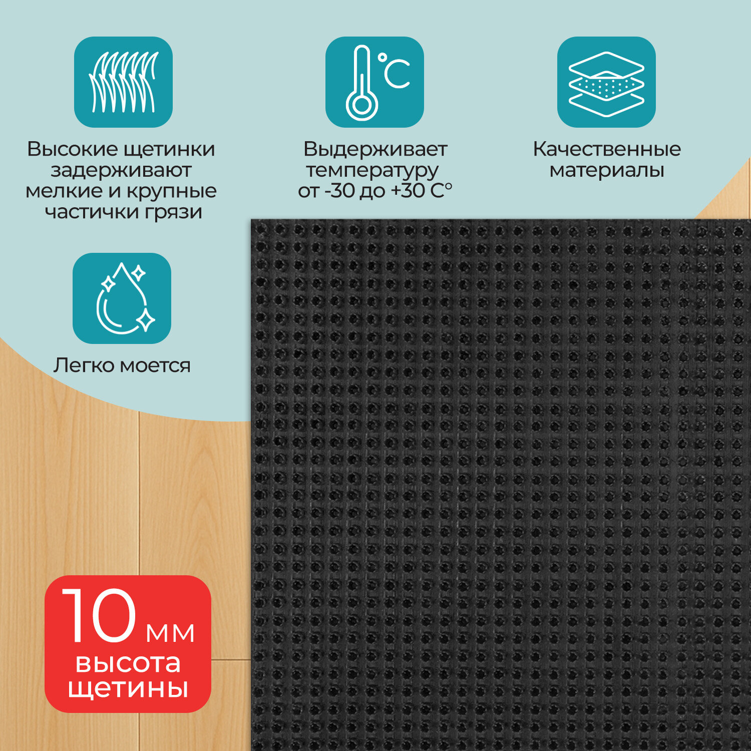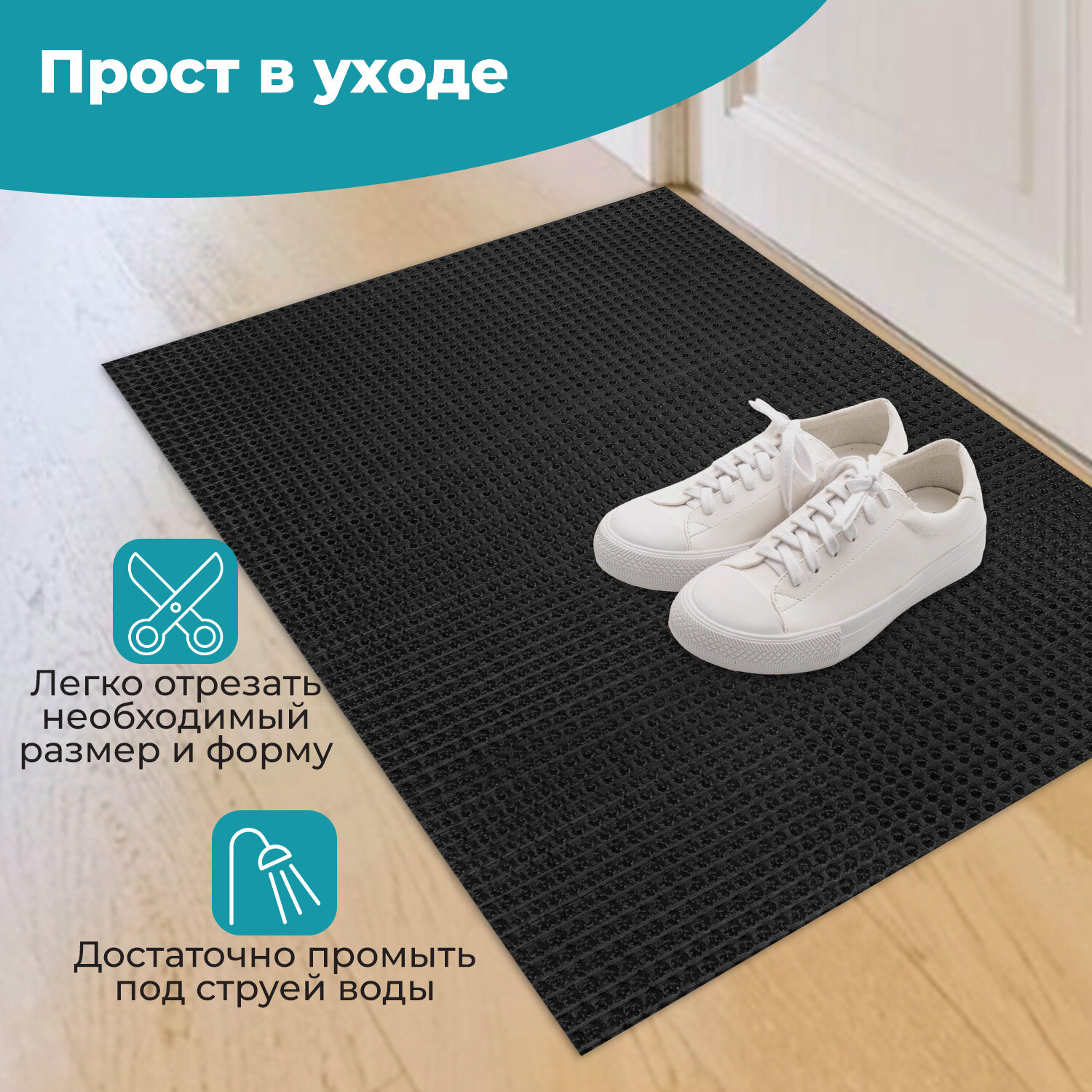 Не теряет своих свойств при низких температурах, не дубеет и не скользит. Легко чистится с помощью пылесоса или встряхивания коврика. Присохшая грязь смывается струей теплой воды.