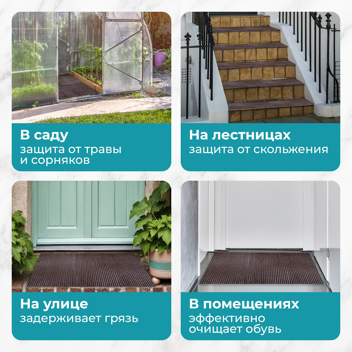 Не теряет своих свойств при низких температурах, не дубеет и не скользит. Легко чистится с помощью пылесоса или встряхивания коврика. Присохшая грязь смывается струей теплой воды.