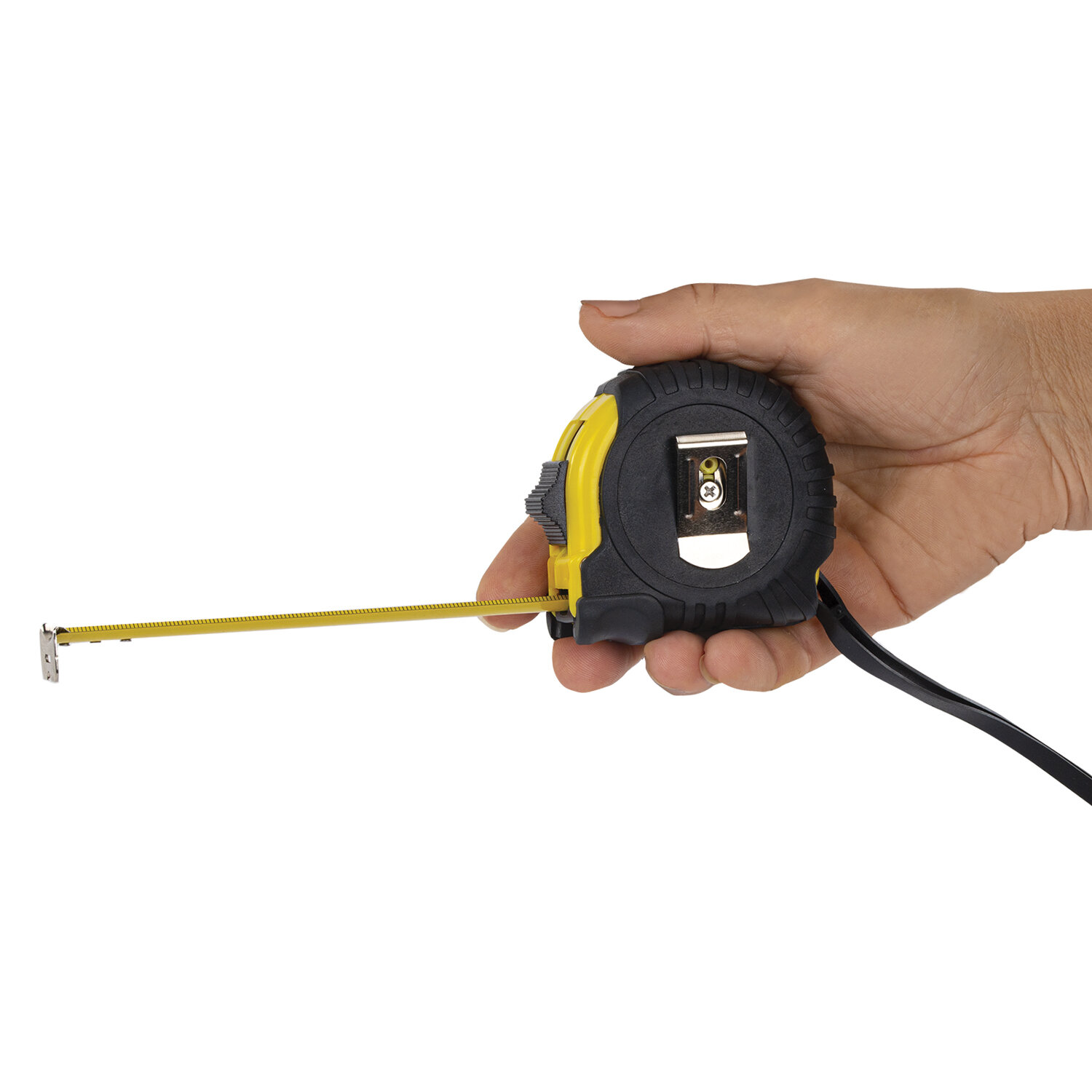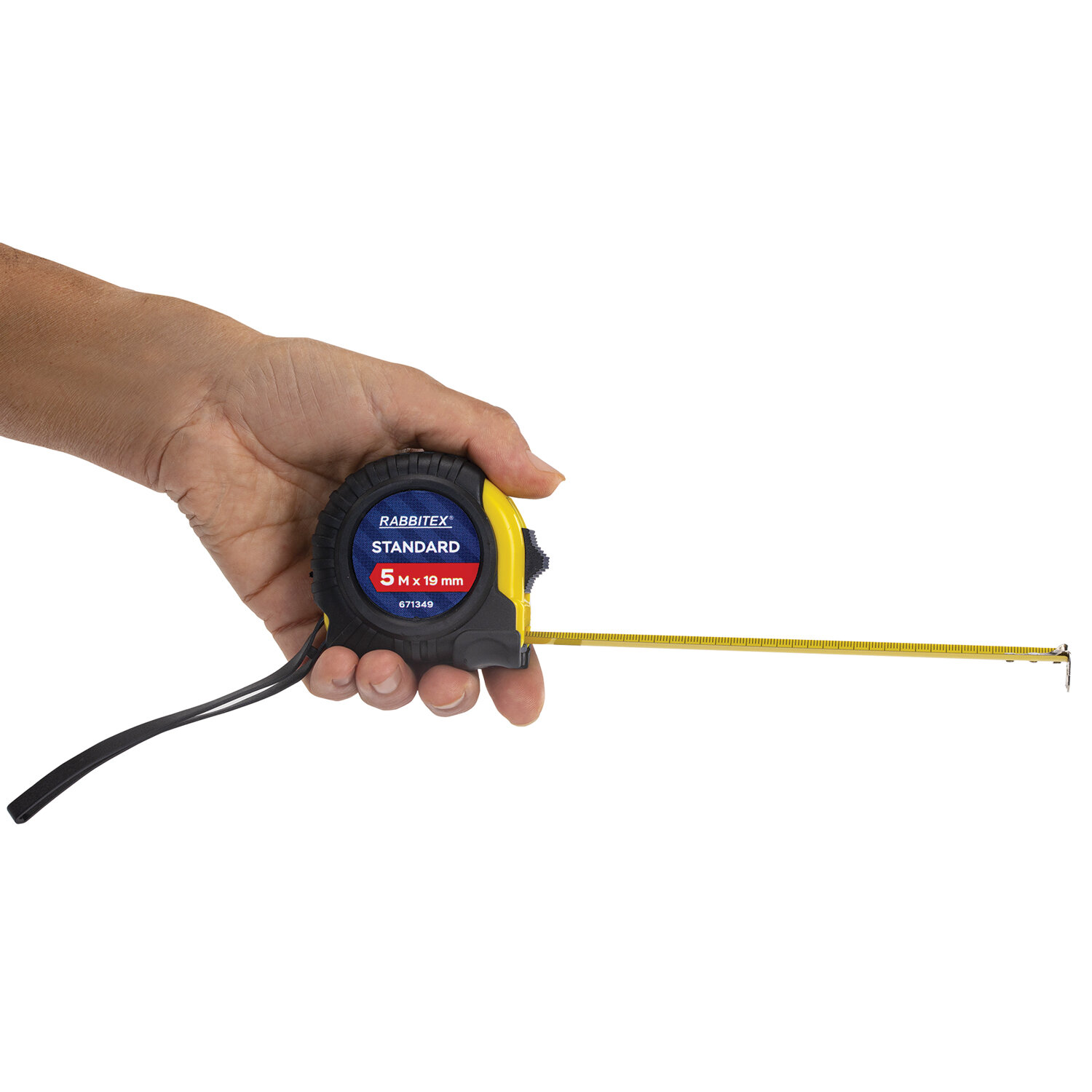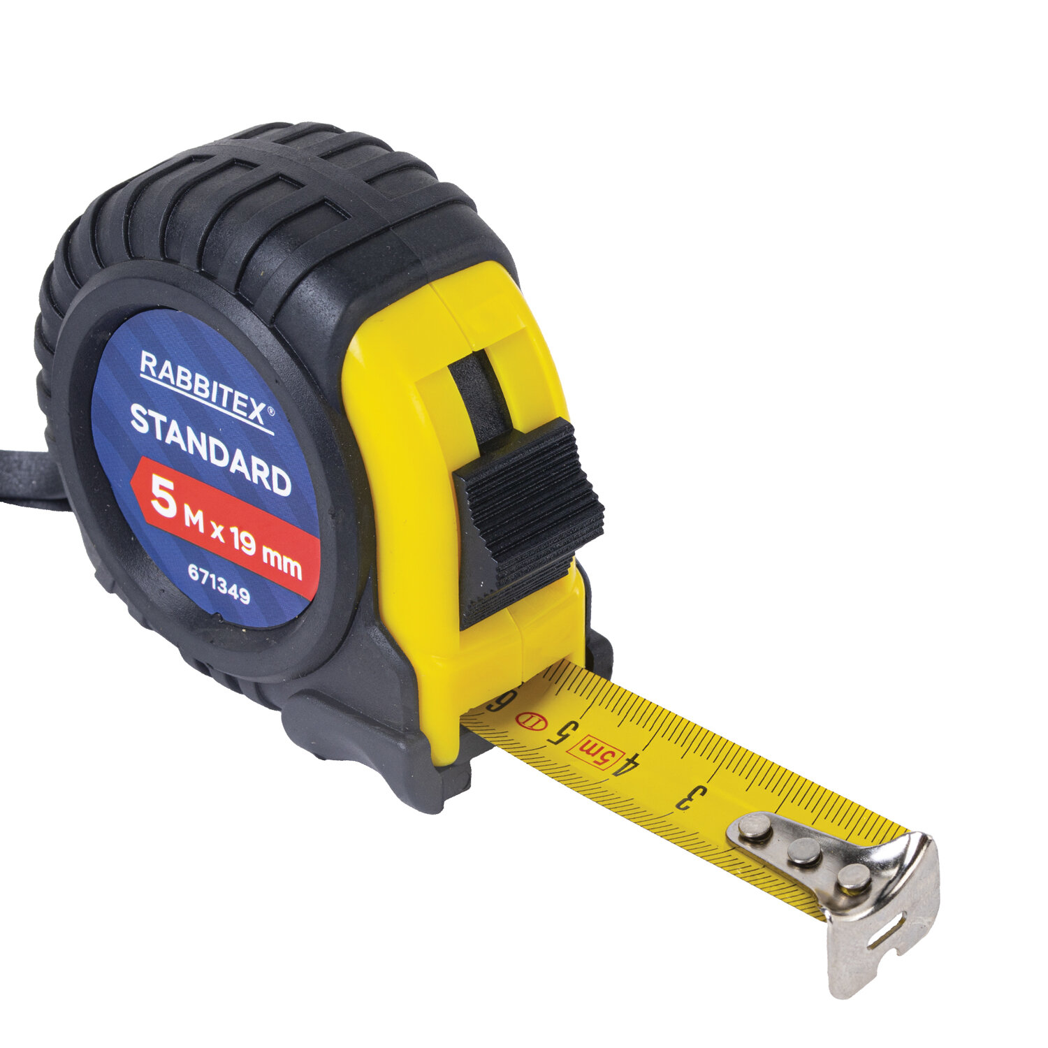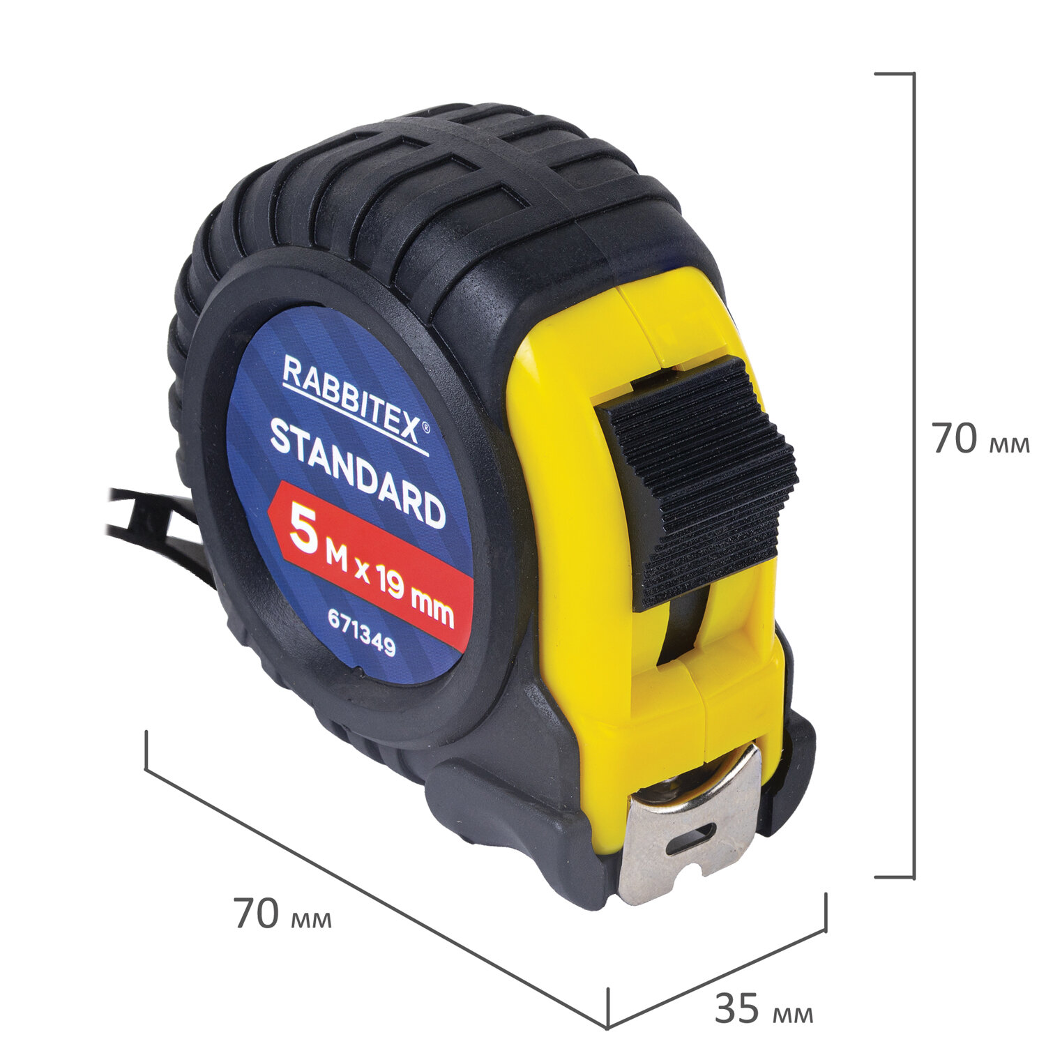 Рулетка измерительная 5 м х 19 мм, обрезиненный корпус, с фиксатором, RABBITEX (РАББИТЕКС) Standard Код товара: 671349 156,49 ₽ Купить Производитель:RABBITEX Рулетка RABBITEX применяется для измерения размеров поверхностей и расстояний. Благодаря эргономичному дизайну и высокому классу точности измерений рулетка станет незаменимым помощником в быту и профессиональной деятельности. Рулетка RABBITEX проста в обращении, обладает повышенной износостойкостью и долгим сроком службы. Корпус рулетки из прочного пластика с прорезиненным покрытием обеспечит защиту инструмента от повреждений при случайном падении. Измерительная лента с метрической шкалой II класса точности изготовлена из прочной углеродистой стали, устойчивой к заломам, и оснащена зацепом для удобства измерений. Рулетка оснащена ремешком для ношения на запястье, а также металлической клипсой для крепления на поясе. Эргономичный дизайн с вертикальным фиксатором измерительной ленты позволят использовать рулетку даже одной рукой. Материал корпуса: ABS-пластик с ПВХ-покрытием. Цвет корпуса: жёлтый с чёрным покрытием. Материал измерительной ленты: углеродистая сталь (S50C). Размеры измерительной ленты: длина 5 метров, ширина 19 миллиметров. Система измерения: метрическая. Цвет ленты: жёлтый. Фиксатор: вертикальный. Упаковка: бумажная карта с европодвесом.Производство: КитайВид рулетки: строительныйШирина ленты: 19 ммДлина ленты: 5 мСерия: StandardМатериал ленты: стальКоличество режимов фиксации: 1Цена деления: 1 ммКласс точности: 2Тип корпуса: закрытыйМатериал корпуса: пластикОбрезиненный корпус: даВес: 216 грРазмер упаковки: 4 × 14 × 8.7 смОбъём: 0.0004 м3Промежуточная упаковка: 12 штТранспортная упаковка: 120 штШтрих-код: 4606224470719 Файлы Сертификат-1.jpg Сертификат-2.jpg Сертификат-3.jpg Сертификат-4.jpg Сертификат-5.jpg Сертификат-6.jpg Сертификат-7.jpg Сертификат-8.jpg Сертификат-9.jpg Сертификат-10.jpg Сертификат-11.jpg Сертификат-12.jpg Сертификат-13.jpg Сертификат-14.jpg Сертификат-15.jpg Сертификат-16.jpg Сертификат-17.jpg Сертификат-18.jpg Сертификат-19.jpg Сертификат-20.jpg Сертификат-21.jpg Сертификат-22.jpg Сертификат-23.jpg Сертификат-24.jpg Сертификат-25.jpg Сертификат-26.jpg