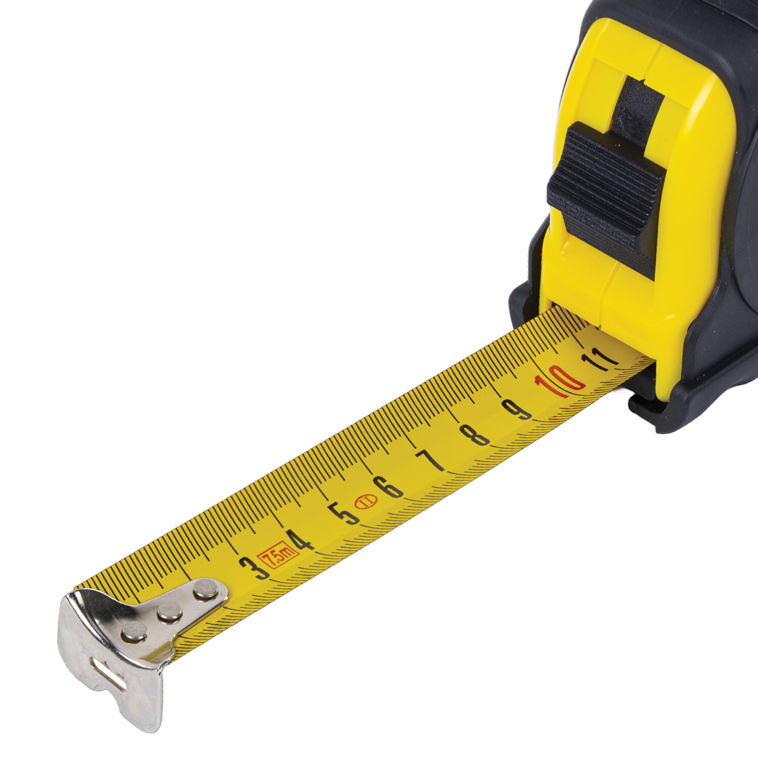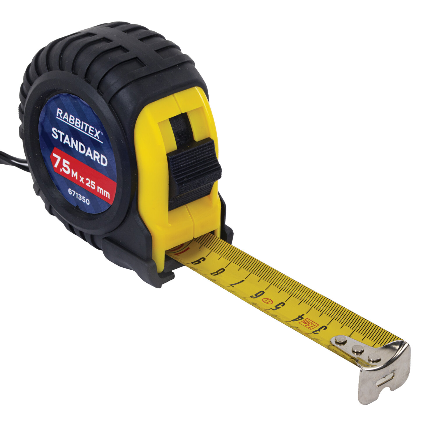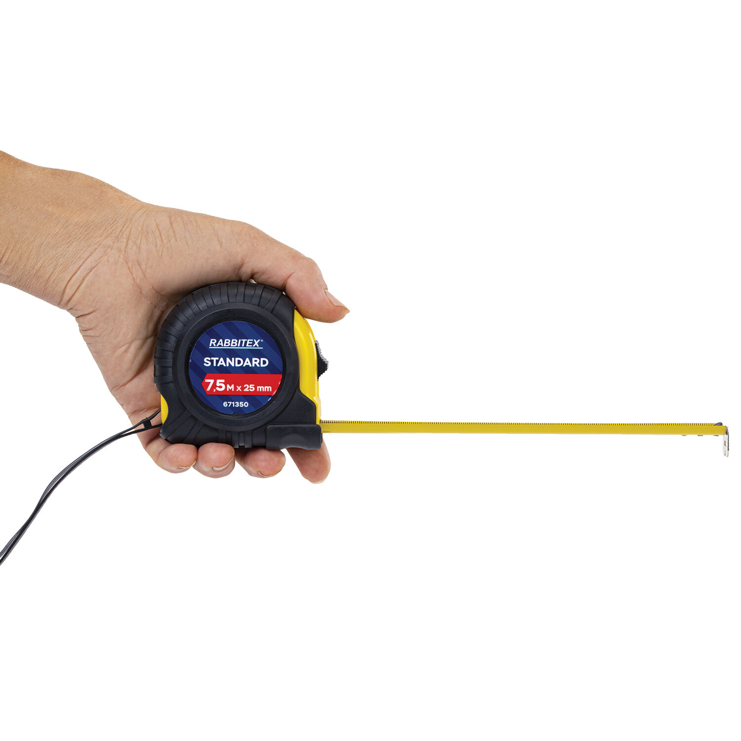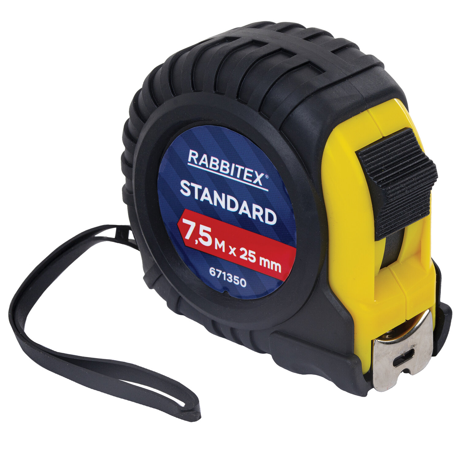 Рулетка измерительная 7,5 м х 25 мм, обрезиненный корпус, с фиксатором, RABBITEX (РАББИТЕКС) Standard Код товара: 671350 215,96 ₽ Купить Производитель:RABBITEX Рулетка RABBITEX применяется для измерения размеров поверхностей и расстояний. Благодаря эргономичному дизайну и высокому классу точности измерений рулетка станет незаменимым помощником в быту и профессиональной деятельности. Рулетка RABBITEX проста в обращении, обладает повышенной износостойкостью и долгим сроком службы. Корпус рулетки из прочного пластика с прорезиненным покрытием обеспечит защиту инструмента от повреждений при случайном падении. Измерительная лента с метрической шкалой II класса точности изготовлена из прочной углеродистой стали, устойчивой к заломам, и оснащена зацепом для удобства измерений. Рулетка оснащена ремешком для ношения на запястье, а также металлической клипсой для крепления на поясе. Эргономичный дизайн с вертикальным фиксатором измерительной ленты позволят использовать рулетку даже одной рукой. Материал корпуса: ABS-пластик с ПВХ-покрытием. Цвет корпуса: жёлтый с чёрным покрытием. Материал измерительной ленты: углеродистая сталь (S50C). Размеры измерительной ленты: длина 7,5 метров, ширина 25 миллиметров. Система измерения: метрическая. Цвет ленты: жёлтый. Фиксатор: вертикальный. Упаковка: бумажная карта с европодвесом.Производство: КитайВид рулетки: строительныйШирина ленты: 25 ммДлина ленты: 7.5 мСерия: StandardМатериал ленты: стальКоличество режимов фиксации: 1Цена деления: 1 ммКласс точности: 2Тип корпуса: закрытыйМатериал корпуса: пластикОбрезиненный корпус: даВес: 365 грРазмер упаковки: 4.5 × 14 × 8.9 смОбъём: 0.0005 м3Промежуточная упаковка: 6 штТранспортная упаковка: 60 штШтрих-код: 4606224470726 Файлы Сертификат-1.jpg Сертификат-2.jpg Сертификат-3.jpg Сертификат-4.jpg Сертификат-5.jpg Сертификат-6.jpg Сертификат-7.jpg Сертификат-8.jpg Сертификат-9.jpg Сертификат-10.jpg Сертификат-11.jpg Сертификат-12.jpg Сертификат-13.jpg Сертификат-14.jpg Сертификат-15.jpg Сертификат-16.jpg Сертификат-17.jpg Сертификат-18.jpg Сертификат-19.jpg Сертификат-20.jpg Сертификат-21.jpg Сертификат-22.jpg Сертификат-23.jpg Сертификат-24.jpg Сертификат-25.jpg Сертификат-26.jpg