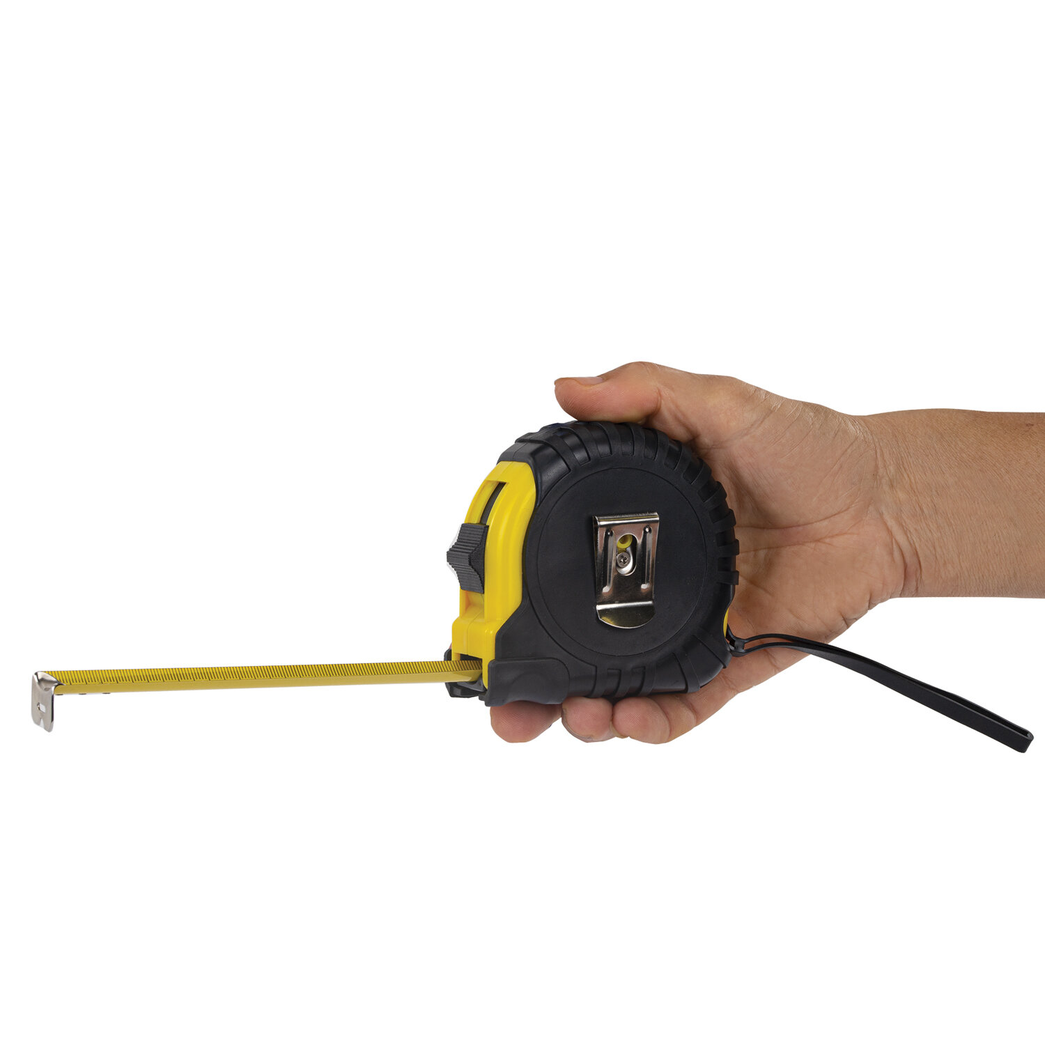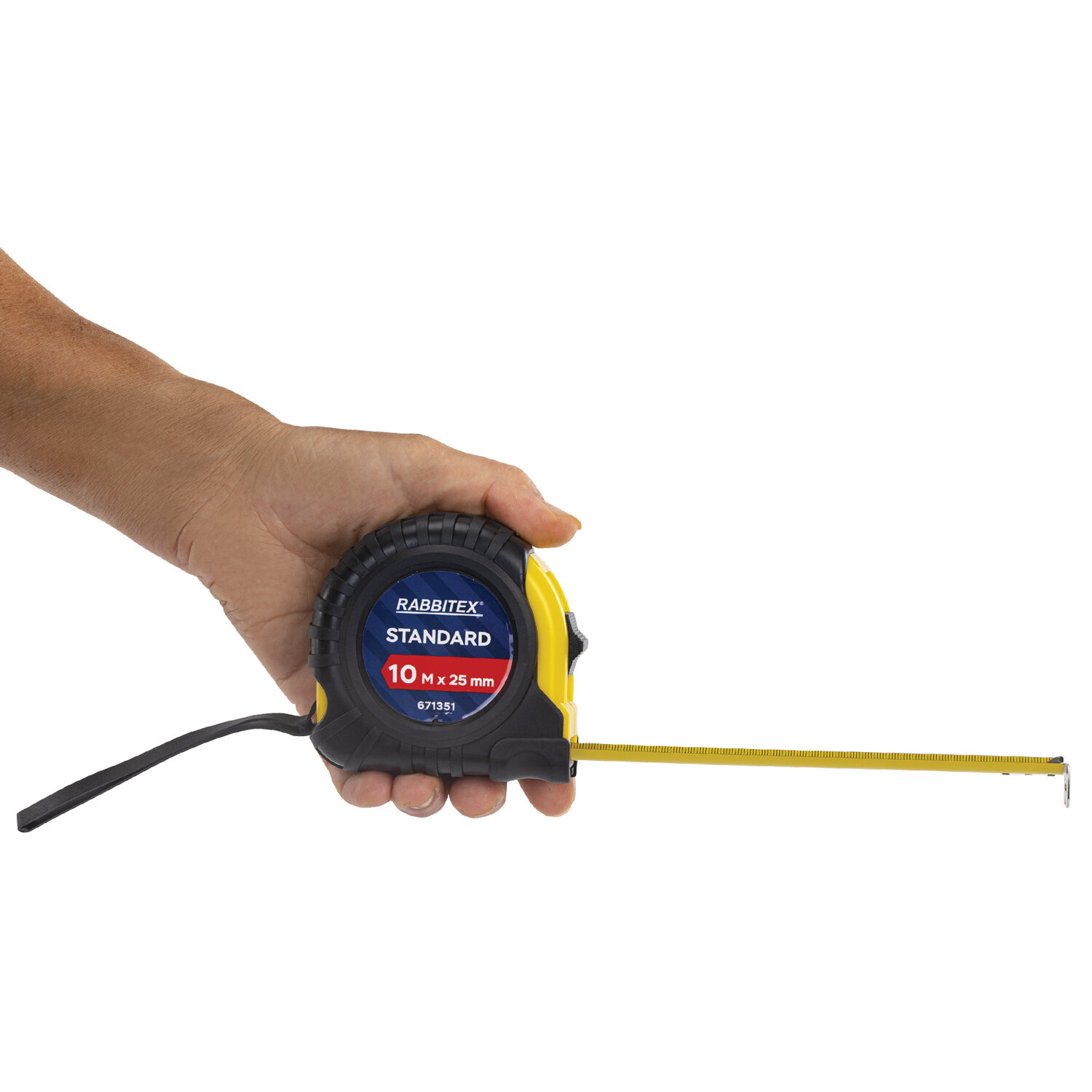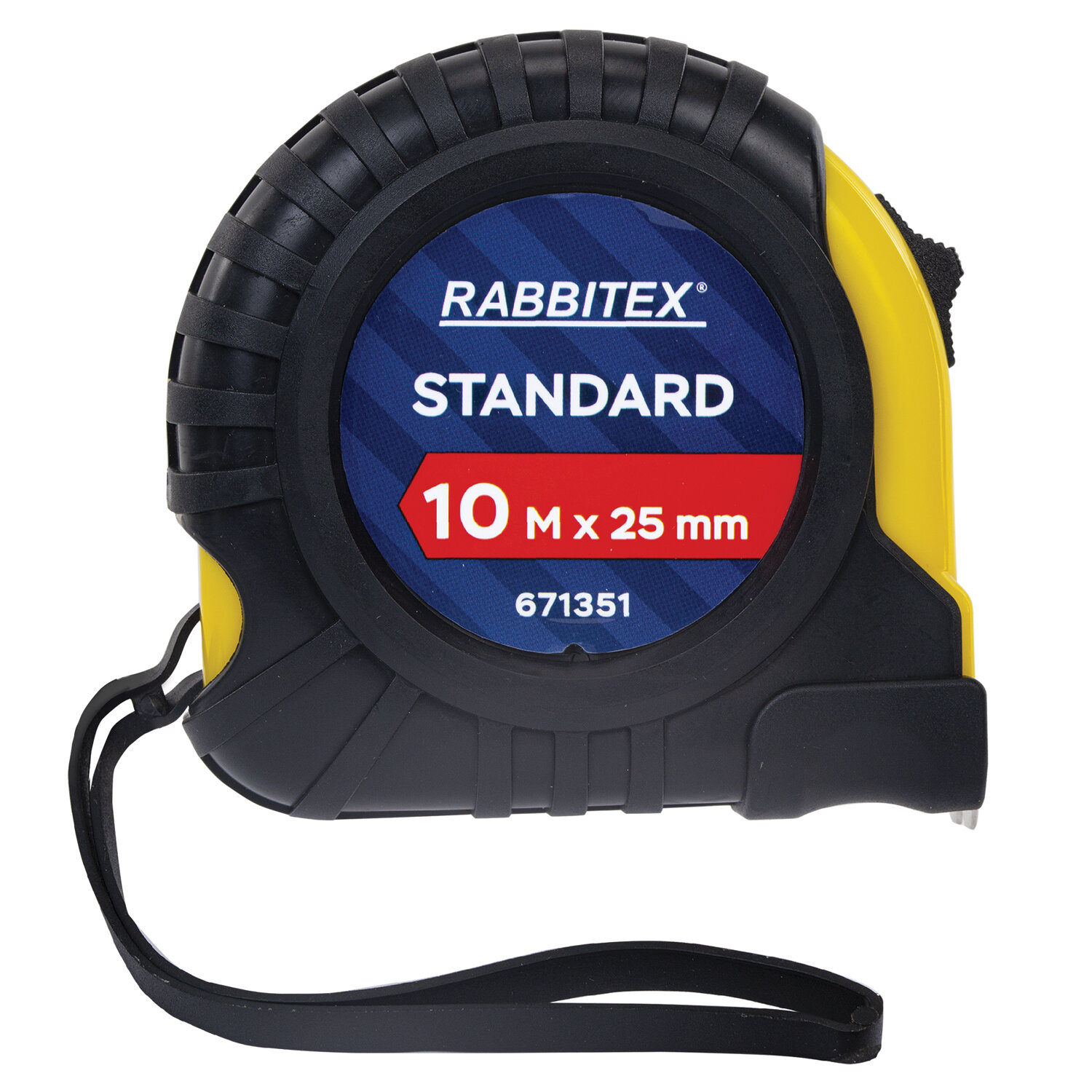 Рулетка измерительная 10 м х 25 мм, обрезиненный корпус, с фиксатором, RABBITEX (РАББИТЕКС) Standard Код товара: 671351 355,34 ₽ Купить Производитель:RABBITEX Рулетка RABBITEX применяется для измерения размеров поверхностей и расстояний. Благодаря эргономичному дизайну и высокому классу точности измерений рулетка станет незаменимым помощником в быту и профессиональной деятельности. Рулетка RABBITEX проста в обращении, обладает повышенной износостойкостью и долгим сроком службы. Корпус рулетки из прочного пластика с прорезиненным покрытием обеспечит защиту инструмента от повреждений при случайном падении. Измерительная лента с метрической шкалой II класса точности изготовлена из прочной углеродистой стали, устойчивой к заломам, и оснащена зацепом для удобства измерений. Рулетка оснащена ремешком для ношения на запястье, а также металлической клипсой для крепления на поясе. Эргономичный дизайн с вертикальным фиксатором измерительной ленты позволят использовать рулетку даже одной рукой. Материал корпуса: ABS-пластик с ПВХ-покрытием. Цвет корпуса: жёлтый с чёрным покрытием. Материал измерительной ленты: углеродистая сталь (S50C). Размеры измерительной ленты: длина 10 метров, ширина 25 миллиметров. Система измерения: метрическая. Цвет ленты: жёлтый. Фиксатор: вертикальный. Упаковка: бумажная карта с европодвесом.Производство: КитайВид рулетки: строительныйШирина ленты: 25 ммДлина ленты: 10 мСерия: StandardМатериал ленты: стальКоличество режимов фиксации: 1Цена деления: 1 ммКласс точности: 2Тип корпуса: закрытыйМатериал корпуса: пластикОбрезиненный корпус: даВес: 519 грРазмер упаковки: 4.7 × 14 × 9.3 смОбъём: 0.0006 м3Промежуточная упаковка: 6 штТранспортная упаковка: 60 штШтрих-код: 4606224470733 Файлы Сертификат-1.jpg Сертификат-2.jpg Сертификат-3.jpg Сертификат-4.jpg Сертификат-5.jpg Сертификат-6.jpg Сертификат-7.jpg Сертификат-8.jpg Сертификат-9.jpg Сертификат-10.jpg Сертификат-11.jpg Сертификат-12.jpg Сертификат-13.jpg Сертификат-14.jpg Сертификат-15.jpg Сертификат-16.jpg Сертификат-17.jpg Сертификат-18.jpg Сертификат-19.jpg Сертификат-20.jpg Сертификат-21.jpg Сертификат-22.jpg Сертификат-23.jpg Сертификат-24.jpg Сертификат-25.jpg Сертификат-26.jpg