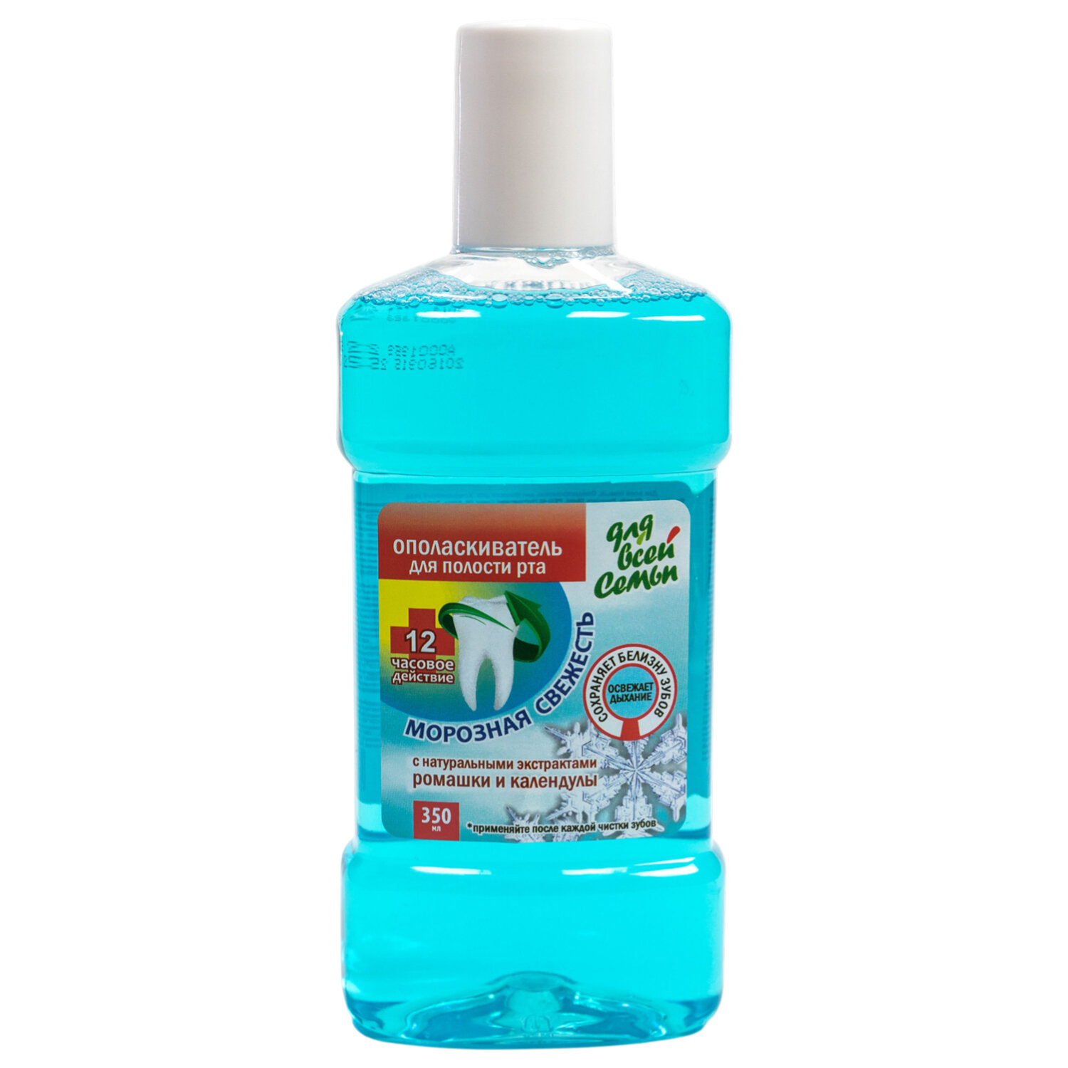 Ополаскиватель для полости рта 350 мл, ДЛЯ ВСЕЙ СЕМЬИ "Морозная свежесть", РЕНЕССАНС КОСМЕТИК Код товара: 702122 66,23 ₽ Купить Производитель:Ренессанс косметик Ополаскиватель для полости рта с экстрактом календулы и ромашки рекомендован для ежедневного профилактического ухода за деснами. Экстракт календулы оказывает противовоспалительное действие, укрепляет десны, обладает антисептическим действием. Экстракт ромашки заживляет мелкие ранки, успокаивает воспаленные десна. А "Морозная свежесть" придаст Вашему дыханию аромат как после чистки зубов. • Основные преимущества: - сохраняет белизну зубов, - освежает дыхание, - с натуральными экстрактами ромашки и календулы. Состав: Aqua, Glycerin, Propylene glycol, PEG- 40 Hydrogenated Castor Oil, Parfum, Methylparaben, Citric Acid, Sodium Lauryl Sulfate, Sodium Hydroxide, Chamomilla Recultita (Matricaria) extract, Calendula Officinalis Extract, Sodium Propylparaben, Sodium Monofluorphosphate, Mentol, Mint Oil, Sodium Saccharin, CI 42090. Способ применения: колпачок наполните ополаскивателем, тщательно прополощите полость рта в течение одной минуты. Рекомендуется использовать ополаскиватель после каждой чистки зубов. Меры предосторожности: не глотать, использовать только для полоскания, избегать контакта с глазами, хранить в недоступном для детей месте. Условия хранения: хранить при температуре от +5 до +25 °С. Не допускать воздействия прямых солнечных лучей и хранения вблизи отопительных приборов. Не замораживать!Производство: РоссияОбъём: 350 млЭффект от использования: противовосполительный, укрепление десен, уничтожает бактерииСодержит: красители, экстракт ромашкиЦвет: голубойТип товара: Ополаскиватель для ртаВкус: морозная свежестьСрок годности: 18 месВес: 379 грРазмер упаковки: 18.9 × 7.5 × 4.8 смОбъём: 0.0008 м3Промежуточная упаковка: 18 штТранспортная упаковка: 18 штШтрих-код: 4607010166465 Сертификат-1.jpg