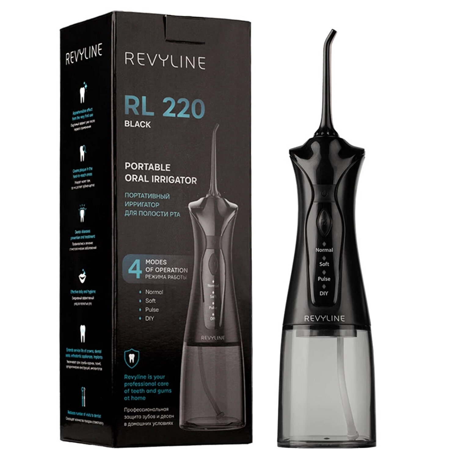 Ирригатор для полости рта REVYLINE RL 220, емкость резервуара 0,3 л, 2 насадки, черны Код товара: 459506 4 906,17 ₽ Купить Производитель:REVYLINE Ирригатор для полости рта REVYLINE RL 220 – портативное устройство, которым удобно и легко пользоваться. Он превосходно дополняет чистку зубов зубной щеткой. Эта элегантная, привлекающая внимание модель обладает высокими техническими характеристиками. Шкала уровня давления жидкости у портативного ирригатора Revyline RL 220 – 140–900 кПа, что говорит об эффективности ирригационной чистки. Работает прибор в 4 режимах, из которых можно выбрать для себя самый оптимальный, при этом на корпусе устройства загорится соответствующий индикатор. При выключении ирригатор сохраняет выбранный режим и воспроизводит его при последующем включении. Для людей с повышенной чувствительностью зубов подойдет режим Soft. Низкий уровень давления воды обеспечивает бережную и комфортную чистку. Стандартная ежедневная чистка производится на режиме со средним напором Normal, точечная – на режиме Pulse, а вот режим DIY позволяет самостоятельно настраивать уровень давления. Для переключения режимов нажимайте и удерживайте непродолжительное время кнопку «М». У режима DIY 8 уровней давления жидкости. Использование ирригатора существенно поднимет уровень ежедневной гигиены полости рта. Он незаменим при чистке брекетов и подходит для ухода за протезами и коронками. Струя с контролируемым напором эффективно борется со скоплениями налета и остатками пищи в труднодоступных участках ротовой полости, обеспечивая ощущение чистоты, свежесть дыхания и профилактику кариеса. Большой резервуар объемом 300 мл удобно снимается и устанавливается, а заряжается Revyline RL 220 с помощью кабеля USB Type-C в течение 4 часов. В базовой комплектации прибора 2 сменные насадки и дорожная сумка для транспортировки ирригатора – на случай, если вы собрались в поездку или командировку. Стоматологи выбирают Revyline! Товар одобрен Институтом стоматологии им. Е. В. Боровского (Сеченовским университетом), Российским медицинским университетом им. Н.И. Пирогова, НАП (Независимой Ассоциацией Пародонтологов). С ним надежно: Проверенный бренд в профессиональном сообществе. Продукция бренда создается при участии стоматологов и рекомендована экспертами. Производитель оставляет за собой право без предварительного уведомления вносить изменения в технические характеристики, комплектацию и конструкцию, не ухудшающие эксплуатационные характеристики изделия.Производство: КитайТип: ирригаторПринцип работы: импульсный, моноструйныйТип питания: аккумуляторЧисло режимов/регулировок: 4Частота пульсации струи: 1200-1400 имп/мин.Регулировка давления струи: даКоличество насадок: 2 шт.Ёмкость резервуара: 300 млРежим "Струя": даСерия: RL 220Цвет: черныйВес: 417 грРазмер упаковки: 7.7 × 24.5 × 8.7 смОбъём: 0.0016 м3Промежуточная упаковка: 1 штТранспортная упаковка: 1 штШтрих-код: 2000601695252 Файлы