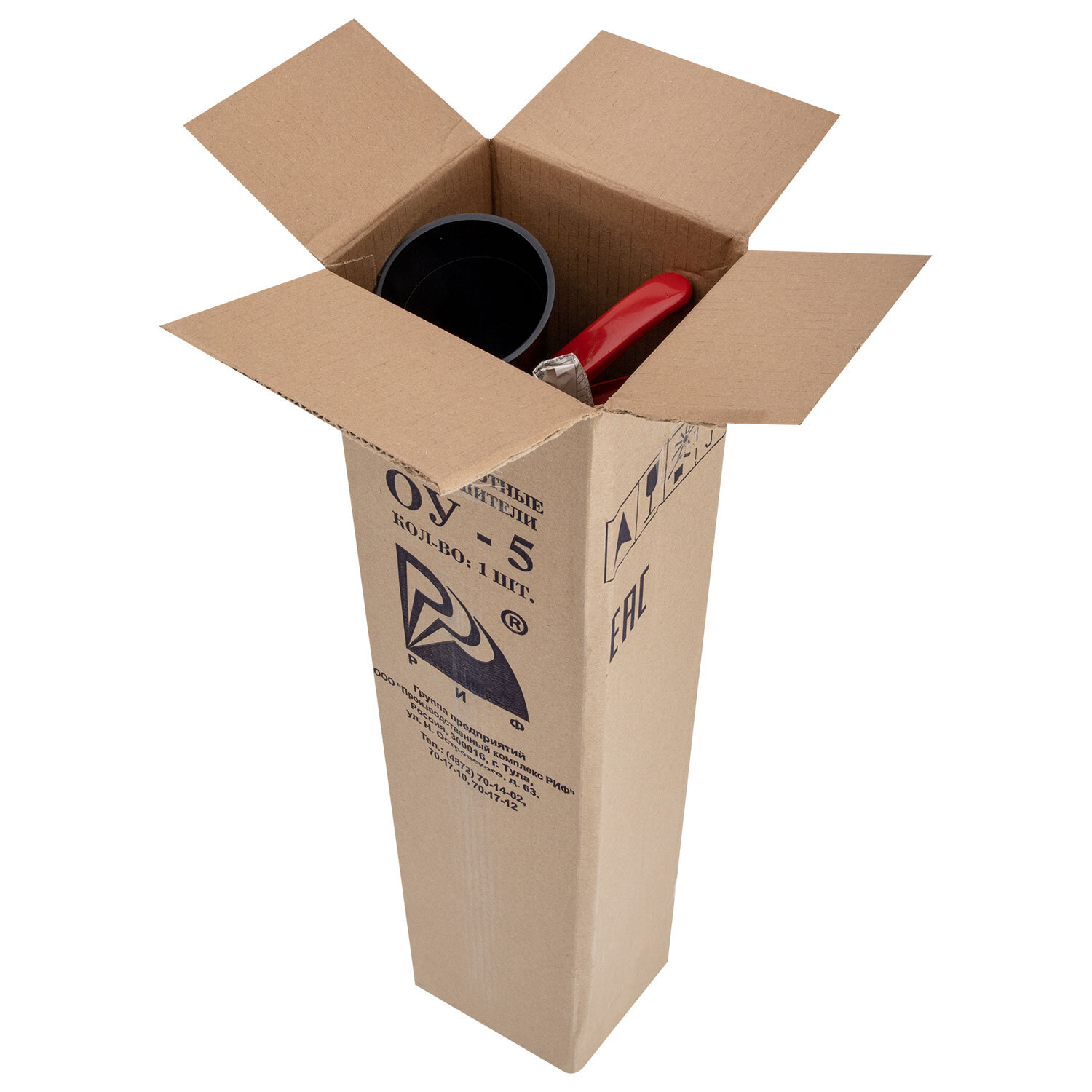 Огнетушитель углекислотный ОУ-5, ВСЕ (жидкие, газообразные, электрические), закачной, в индивидуальном коробе, РИФ Код товара: 611031 3 109,76 ₽ Купить Производитель:РИФ ОУ-5-ВСЕ предназначены для оснащения органов и подразделений по чрезвычайным ситуациям, защиты объектов народного хозяйства, транспортных средств, а также для применения в бытовых условиях в качестве первичного средства тушения пожаров классов В, С, Е. Масса заряда огнетушащего вещества – 5 кг. Ранг по модельным очагам: 55В, С, Е (до 10000 В). Углекислотный огнетушитель предназначен для быстрого охлаждения поверхности и рассеивания газа. Благодаря действию диоксида углерода материальные ценности практически не разрушаются, на них не остается разводов и пятен. Возгорание прекращается за счет охлаждения области горения. Огнетушитель особенно эффективен для локализации пожара на начальной стадии и тех видов возгорания, где запрещено применение воды. Материал ЗПУ – латунь. Углекислотный огнетушитель ОУ-5 предназначен для тушения веществ, горение которых не может происходить без доступа воздуха: В - горючие жидкости; С - горючие газы; Е - электрооборудование под напряжением до 10000 В. Огнетушитель ОУ-5 не предназначен для тушения твердых веществ (класс А), а также для локализации возгораний металлов и прочих материалов, способных гореть без доступа воздуха. Углекислотный огнетушитель ОУ-5 рекомендуется для оснащения: - помещений с компьютерной техникой и оргтехникой, серверных комнат; - транспорта (автомобили, городской транспорт); - электроустановок, находящихся под напряжением до 10000 В и щитов управления; - музеев, выставок, картинных галерей и проч. Особенности применения углекислотного огнетушителя ОУ-5: 1. При тушении запрещено держаться за раструб огнетушителя и подносить его (раструб) к открытому пламени ближе, чем на 1 м. 2. После использования огнетушителя в закрытом помещении необходимо проветривание. В противном случае возможно отравление парами углекислоты. 3. Углекислотный огнетушитель нельзя использовать для тушения горящего человека (во избежание обморожения). Устройство и принцип работы огнетушителя: Углекислотный огнетушитель ОУ-5 – закачной огнетушитель высокого давления с зарядом жидкой двуокиси углерода (по ГОСТ 8050-85), находящейся под давлением насыщенных паров. Вместимость корпуса ОУ-5 составляет 6,7 л, масса заряда – 5 кг. Он рассчитан на тушение объекта возгорания в течение 8 секунд при длине струи 3 м. Работа огнетушителя ОУ-5 основана на вытеснении заряда двуокиси углерода под действием собственного избыточного давления, которое создается при наполнении огнетушителя. Двуокись углерода находится в баллоне под давлением 5,7 МПа (60 кгс/см2) при температуре окружающего воздуха +20 °С. Максимальное рабочее давление в баллоне при температуре +50 °С, не должно превышать 14,7 МПа (150 кгс/см2). Огнетушащее действие углекислоты основано на охлаждении зоны горения и разбавлении горючей паровоздушной среды инертным (не горючим) веществом до концентраций, при которых происходит прекращение реакции горения. При использовании углекислотных огнетушителей ОУ-5 следует соблюдать меры предосторожности: - при тушении электроустановок расстояние до раструба должно быть не менее 1 м; - избегайте контакта раструба огнетушителя с открытыми частями тела (-70 °С); - после использован