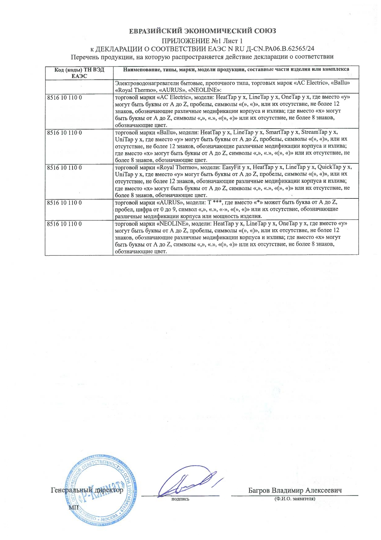 Водонагреватель проточный электрический ROYAL THERMO UniTap Mini, 3,3 кВт, 1,48 л/мин, насадка Код товара: 459001 2 638,05 ₽ Купить Производитель:ROYAL THERMO Получайте горячую воду мгновенно с проточным водонагревателем ROYAL THERMO UniTap Mini – компактным решением, которое устанавливается прямо на смеситель без демонтажа! Этот мини-кран с мощностью 3,3 кВт обеспечивает подачу воды со скоростью 1,48 л/мин при температуре до 60 °C, идеально подходя для мытья посуды, рук и других повседневных задач. Благодаря ультракомпактным размерам (7х6,5х15,6 см) и белому цвету, он незаметно впишется в интерьер кухни или ванной, не занимая лишнего места. Модель оснащена цифровым дисплеем с точностью отображения температуры до 1 °C, механическим управлением и двумя уровнями защиты: автоматическим отключением при перегреве и отсутствии воды. Класс пылевлагозащиты IPX4 гарантирует безопасность в условиях повышенной влажности. Установка занимает минуты: в комплекте идут все необходимые переходники для подключения к стандартному смесителю. Подключение к сети 220–240 В через кабель с вилкой (сечение 2,5 мм2), рабочее давление – от 0,4 до 6 бар. Вес устройства – 0,9 кг. Производитель оставляет за собой право без предварительного уведомления вносить изменения в технические характеристики, комплектацию и конструкцию, не ухудшающие эксплуатационные характеристики изделия.Производство: КитайОбъем бака: 0 лВид установки (крепления): на кранМощность: 3.3 кВтВариант размещения: горизонтальноеТип подключения: верхнееТип нагревательного элемента: ТЭНЗащита от перегрева: даЗащита от включения без воды: даКоличество режимов нагрева: 1Макс. температура воды: 60 °СМин. температура воды: 0 °СВремя нагрева воды от 10°С до 75°С: 0 мин.Материал внутреннего бака: нержавеющая стальМатериал внешнего корпуса: пластикСерия: UniTap MiniЦвет: белыйВысота: 15.6 смШирина: 7 смГлубина: 6.5 смВес (без упаковки): 0.9 кгВес: 870 грРазмер упаковки: 24.8 × 18 × 10.9 смОбъём: 0.0049 м3Промежуточная упаковка: 1 штТранспортная упаковка: 1 штШтрих-код: 4660294157321 Файлы Приложение-1.pdf Сертификат-1.jpg Сертификат-2.jpg Сертификат-3.jpg Сертификат-4.jpg Сертификат-5.jpg Сертификат-6.jpg Сертификат-7.jpg