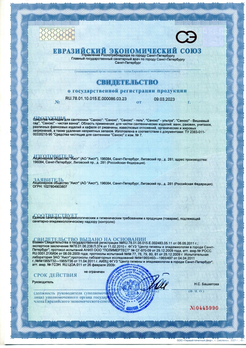 Средство для удаления ржавчины и известкового налета 5 л, САНОКС Код товара: 604870 818,9 ₽ Купить Производитель:САНОКС Предназначено для чистки раковин, унитазов, кафеля и другого сантехнического оборудования от ржавчины, известковых отложений, жировых и прочих загрязнений. Состав: 5% неионогенные ПАВ, ароматизатор, краситель; 5% - 15% анионные ПАВ, щавелевая кислота.Производство: РоссияОбъем/Вес: 5000 мл/гСерия: СТАНДАРТЭффективно удаляет: въевшуюся грязь, жировые загрязнения, известковый налет, неприятный запах, ржавчинуПодходит для: фаянсаФорма выпуска: жидкостьУничтожает возбудителей стафилококка и кишечных инфекций: даСодержит: щавелевую кислотуpH: 4Дозатор: отсутствуетУпаковка: канистраСрок годности: 18 месРазмер упаковки: 29.6 × 18.2 × 12.3 смОбъём: 0.0084 м3Промежуточная упаковка: 3 штТранспортная упаковка: 3 штШтрих-код: 4600905000653 Файлы Сертификат-1.jpg Сертификат-2.jpg Сертификат-3.jpg Сертификат-4.jpg Сертификат-5.jpg Сертификат-6.jpg Сертификат-7.jpg Сертификат-8.jpg Сертификат-9.jpg Сертификат-10.jpg Сертификат-11.jpg Сертификат-12.jpg Сертификат-13.jpg Сертификат-14.jpg Сертификат-15.jpg Сертификат-16.jpg Сертификат-17.jpg Сертификат-18.jpg Сертификат-19.jpg Сертификат-20.jpg Сертификат-21.jpg Сертификат-22.jpg Сертификат-23.jpg Сертификат-24.jpg Сертификат-25.jpg Сертификат-26.jpg Сертификат-27.jpg