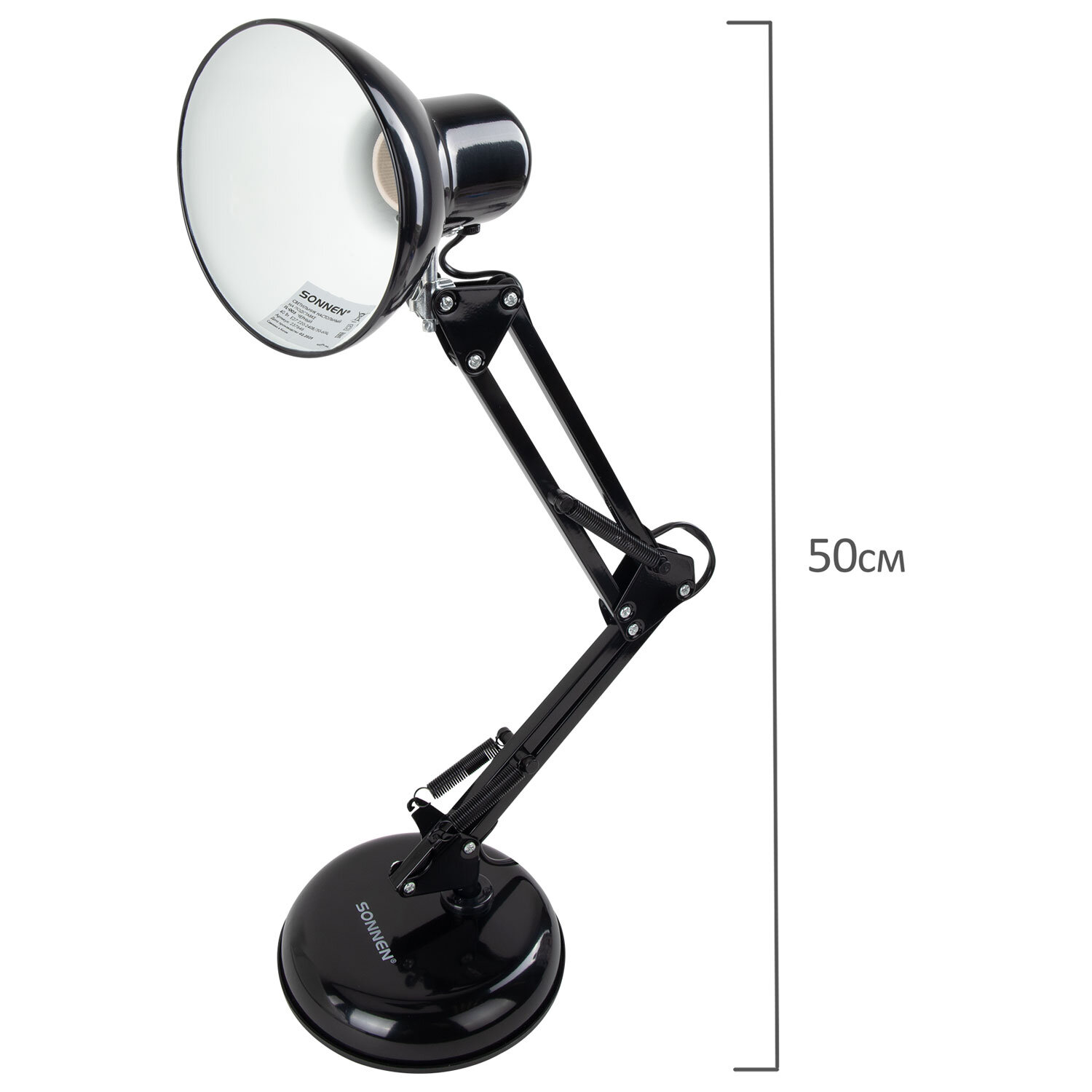 Настольная лампа-светильник SONNEN TL-005, подставка, 40 Вт, Е27, черный, высота 50 см Код товара: 237646 940,54 ₽ Купить Производитель:SONNEN Настольная лампа-светильник SONNEN TL-005 предназначена для освещения рабочего места в офисе или дома. Конструкция светильника обеспечивает произвольную регулировку направления света. Для светильника высотой 50 см подходит любая технология бытовых ламп (накаливания, люминесцентная, светодиодная) с цоколем Е27, благодаря чему можно самостоятельно выбрать яркость и оттенок света. При использовании лампы накаливания максимальная мощность не должна превышать 40 Вт. Конструкция светильника позволяет вращать его на 360° и наклонять под любым углом. Поставляется в комплекте с подставкой. Лампочка в комплект не входит. Производитель сохраняет за собой право на внесение изменений в технические характеристики, комплектацию и конструкцию данной модели для улучшения эксплуатационных свойств без предварительного уведомления.Производство: КитайТип лампы: любаяТип крепления: подставкаМощность: 40 ВтЦоколь: Е27Назначение: универсальныйСерия: TL-005Кол-во режимов свечения: 1Источник света: сменная лампа накаливания / КЛЛ / LEDИсточник питания: сетьРасположение кнопки выключателя: на проводеСкладная конструкция: даВысота: 50 смДлина шнура: 1 мМатериал корпуса: металлЦвет корпуса: черныйВес: 1,3 кгРазмер упаковки: 16.9 × 23.4 × 17.6 смОбъём: 0.0077 м3Промежуточная упаковка: 12 штТранспортная упаковка: 12 штШтрих-код: 4606224470566 Сертификат-1.jpg Сертификат-2.jpg