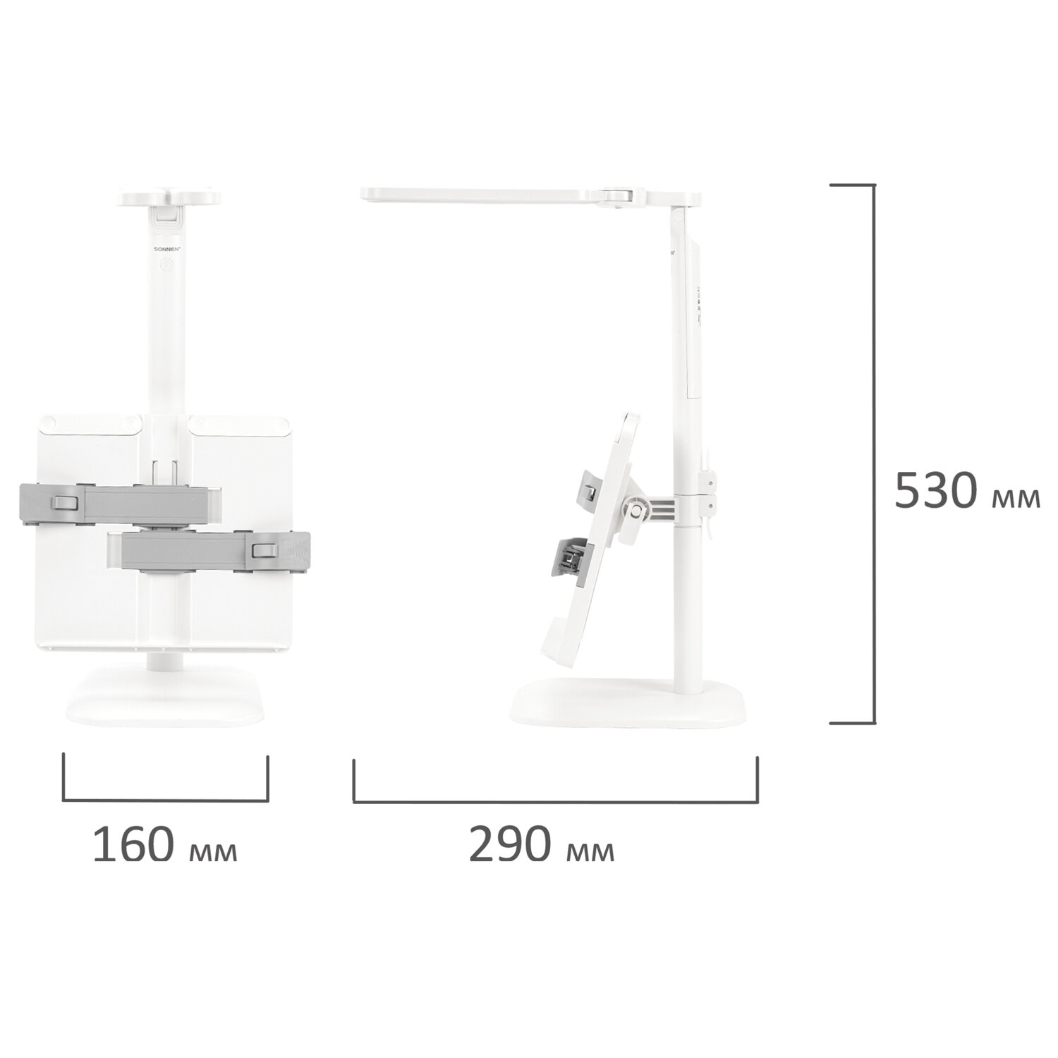 Настольная лампа / светильник беспроводная SONNEN PT-202, подставка для книг, USB, LED, 5 Вт, 3 режима Код товара: 238780 1 092,91 ₽ Купить Производитель:SONNEN Настольная лампа-светильник SONNEN PT-202 предназначена для освещения рабочего места в офисе или дома. Конструкция светильника обеспечивает произвольную регулировку направления света. Многофункциональный светодиодный светильник 5 Вт – идеальное решение для офиса и дома. Светильник оснащен 60 яркими диодами, что обеспечивает равномерное освещение и бережную нагрузку на глаза при длительной работе. Три режима цветовой температуры (тёплый, нейтральный, холодный свет) и бесступенчатая регулировка яркости позволяют настроить свет под любую задачу и время суток. Интегрированная подставка для книг позволит удобно расположить печатные издания перед собой. Встроенный аккумулятор обеспечит бесперебойную работу светильника.Производство: КитайТип лампы: светодиоднаяТип крепления: подставкаМощность: 5 ВтЦоколь: нетНазначение: универсальныйСерия: PT-20Цветность света: нейтральный белый - 3500-4500 К, теплый белый - 2700-3400 К, холодный белый - от 6100 и болееСветовой поток: 450 ЛюменКол-во режимов свечения: 3Источник света: 60 LEDИсточник питания: сеть, аккумуляторРасположение кнопки выключателя: на корпусеСенсорный выключатель: даПроизвольная регулировка направления подсветки: даОтсутствие мерцания и шумов: даСкладная конструкция: даВысота: 53 смДлина шнура: 1.2 мМатериал корпуса: пластикЦвет корпуса: белыйВес: 791 грРазмер упаковки: 8.2 × 28.4 × 22.2 смОбъём: 0.006 м3Промежуточная упаковка: 24 штТранспортная упаковка: 24 штШтрих-код: 4606224465968 Файлы Сертификат-1.jpg Сертификат-2.jpg Сертификат-3.jpg Сертификат-4.jpg Сертификат-5.jpg