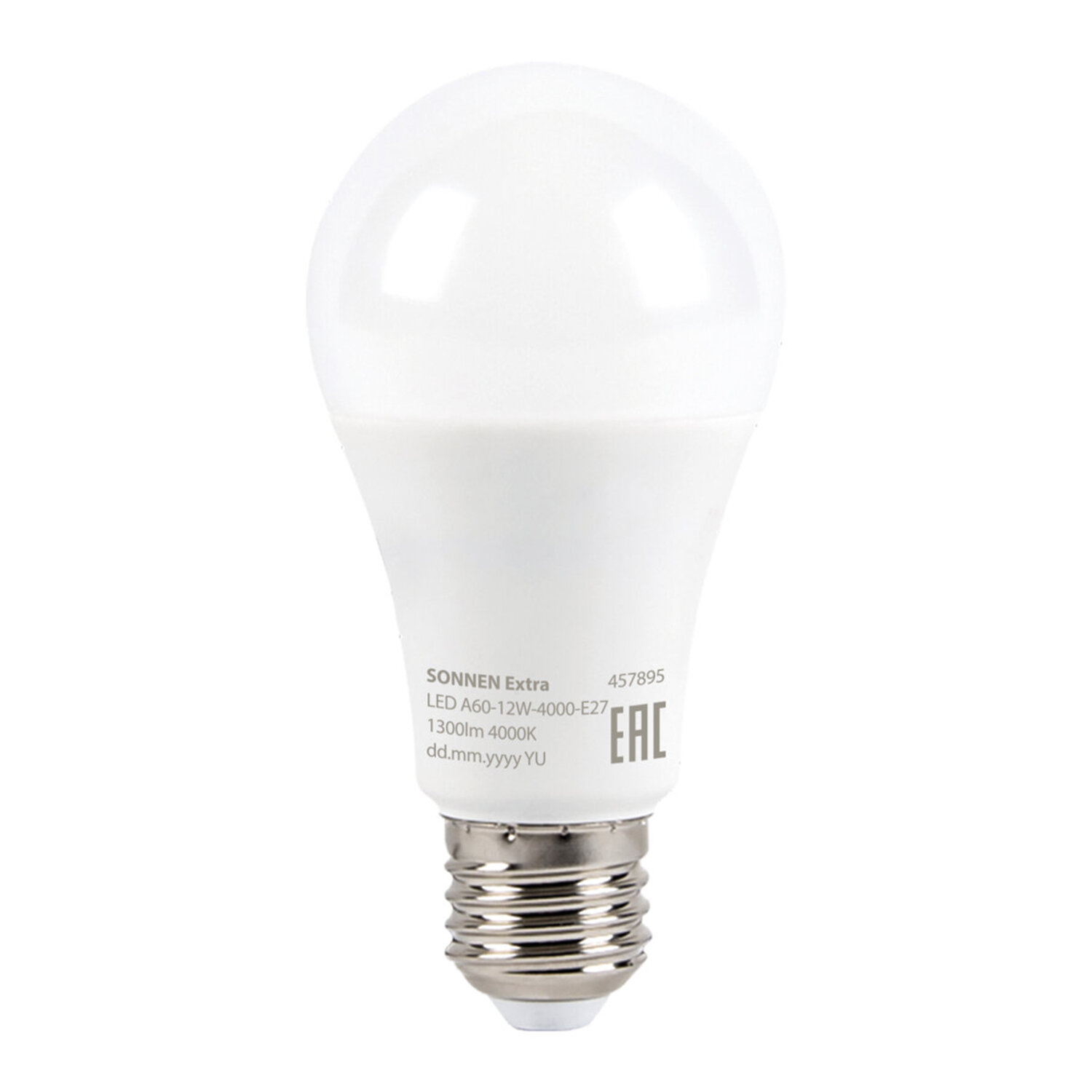 Лампа светодиодная SONNEN EXTRA, 12 (100) Вт, Е27, груша, нейтральный белый, 30000 ч, LED A60-12W-4000-Е27 Код товара: 457895 79,43 ₽ Купить Производитель:SONNEN Светодиодная лампа SONNEN EXTRA компактного размера. Срок службы лампы составляет не менее 30000 часов, что примерно в 30 раз больше, чем у обычной лампы накаливания. Оснащена цоколем типа Е27 и излучает нейтральный белый cвет. Отличается длительным сроком службы. Имеет грушевидную форму колбы и сделана из белого матового пластика. Мощность лампы составляет 12 Вт. Представленная модель дает световой поток 1300 Лм, а цветовая температура равна 4000 K. Диаметр лампы составляет 60 мм. Производитель сохраняет за собой право на внесение изменений в технические характеристики, комплектацию и конструкцию данной модели для улучшения эксплуатационных свойств без предварительного уведомления.Производство: Китай Тип цоколя : E27Количество в комплекте: 1 шт.Оттенок света: нейтральный белыйМощность: 12 ВтТип лампы: светодиоднаяТип колбы: грушаВид колбы: матоваяМинимальное рабочее напряжение: 175 ВМаксимальное рабочее напряжение: 265 ВМощность эквивалентной по световому потоку лампы накаливания: 100 ВтСветовой поток: 1300 ЛмЦветовая температура: 4000 КИндекс цветопередачи: 80 %Срок службы: 30000 ч.Высота (длина) лампы: 110 ммДиаметр лампы: 60 ммСерия: EXTRAВес: 46 грРазмер упаковки: 6.2 × 14.4 × 6.2 смОбъём: 0.0005 м3Промежуточная упаковка: 10 штТранспортная упаковка: 100 штШтрих-код: 4606224501543 Сертификат-1.jpg Сертификат-2.jpg