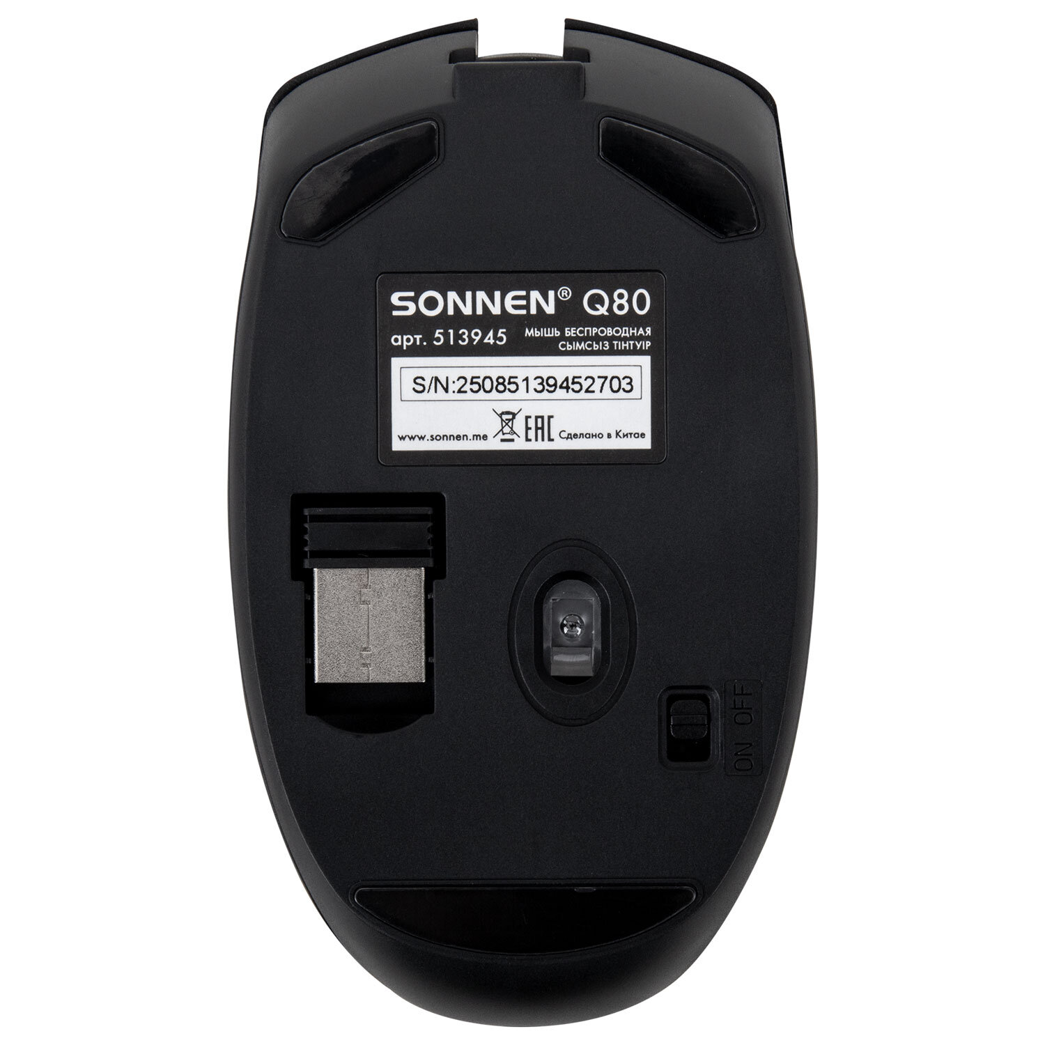 Мышь беспроводная USB, 800/1200/1600 dpi, 5 кнопок + колесо-кнопка, оптическая, SONNEN Q80, черная Код товара: 513945 345,7 ₽ Купить Производитель:SONNEN Беспроводная мышь с классическим дизайном SONNEN Q80 обеспечит удобную работу дома и в офисе. Мышь поддерживает следующие разрешения оптического сенсора – 800/1200/1600 dpi. На корпусе устройства находятся 5 функциональных кнопок, а также колесо-кнопка. Подключение производится при помощи USB-ресивера (в комплекте), принимающего сигнал в радиусе 10 м. Питание устройства обеспечивается элементом питания типа AА (в комплект не входит). Устройство выполнено в классическом черном цвете. Вес – 75 г. Размер мыши – 60х38x108 мм. Поставляется в картонной коробке с европодвесом.Производство: КитайРазъем: USBРадиус действия: 10 мТехнология сенсора: оптическаяКоличество кнопок: 6Максимальное разрешение курсора: 1600 dpiСерия: Q80Тип питания: 1 батарейка ААЦвет корпуса: черныйДлина: 108 ммШирина: 60 ммВысота: 38 ммВес: 75 гУпаковка: картонная коробка с европодвесомРазмер упаковки: 4.3 × 14.5 × 8.1 смОбъём: 0.0005 м3Промежуточная упаковка: 100 штТранспортная упаковка: 100 штШтрих-код: 4606224458014 Файлы Сертификат-1.jpg Сертификат-2.jpg