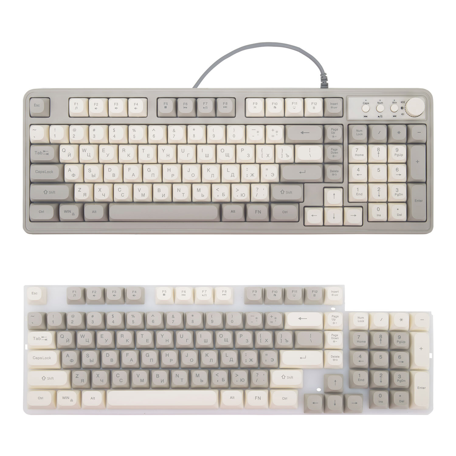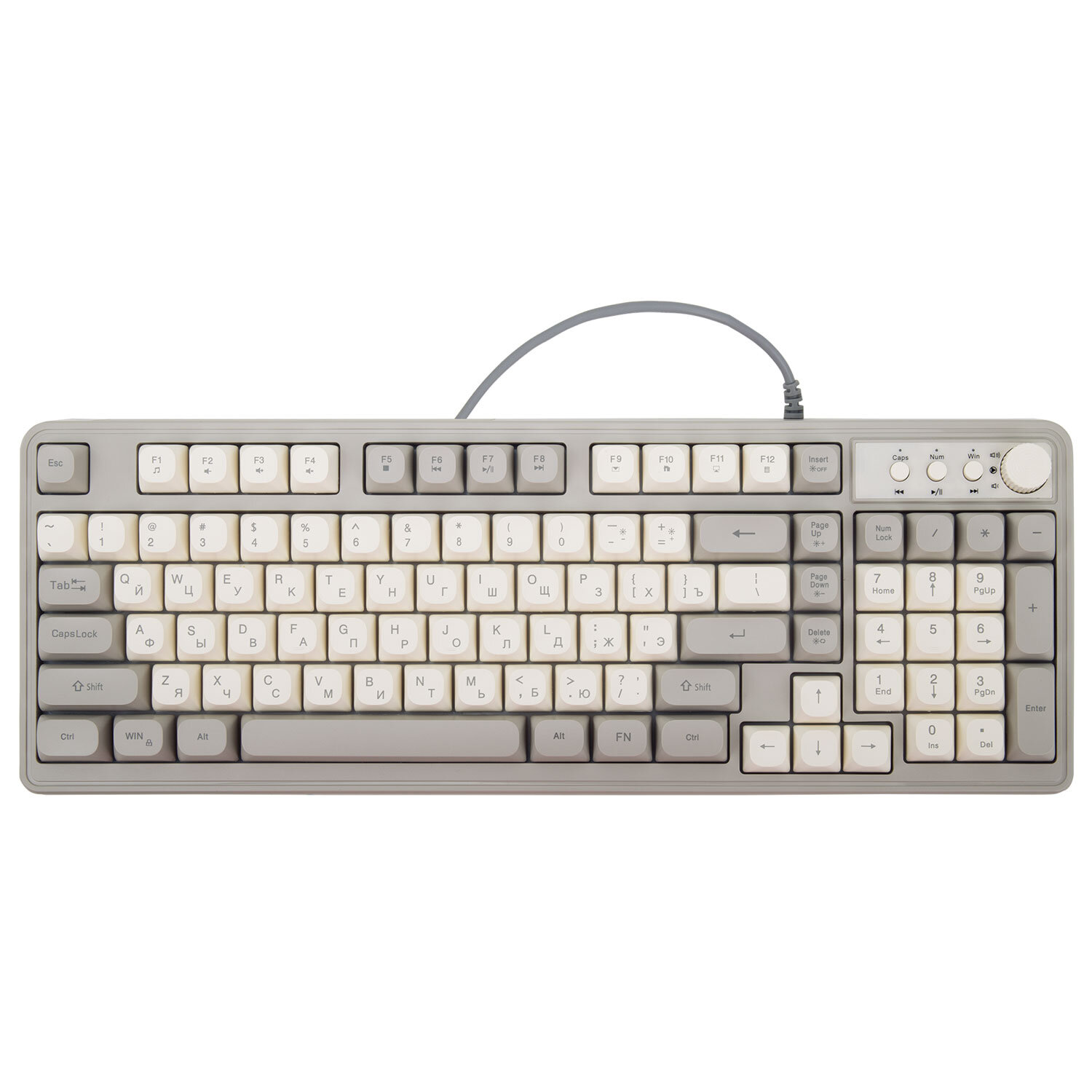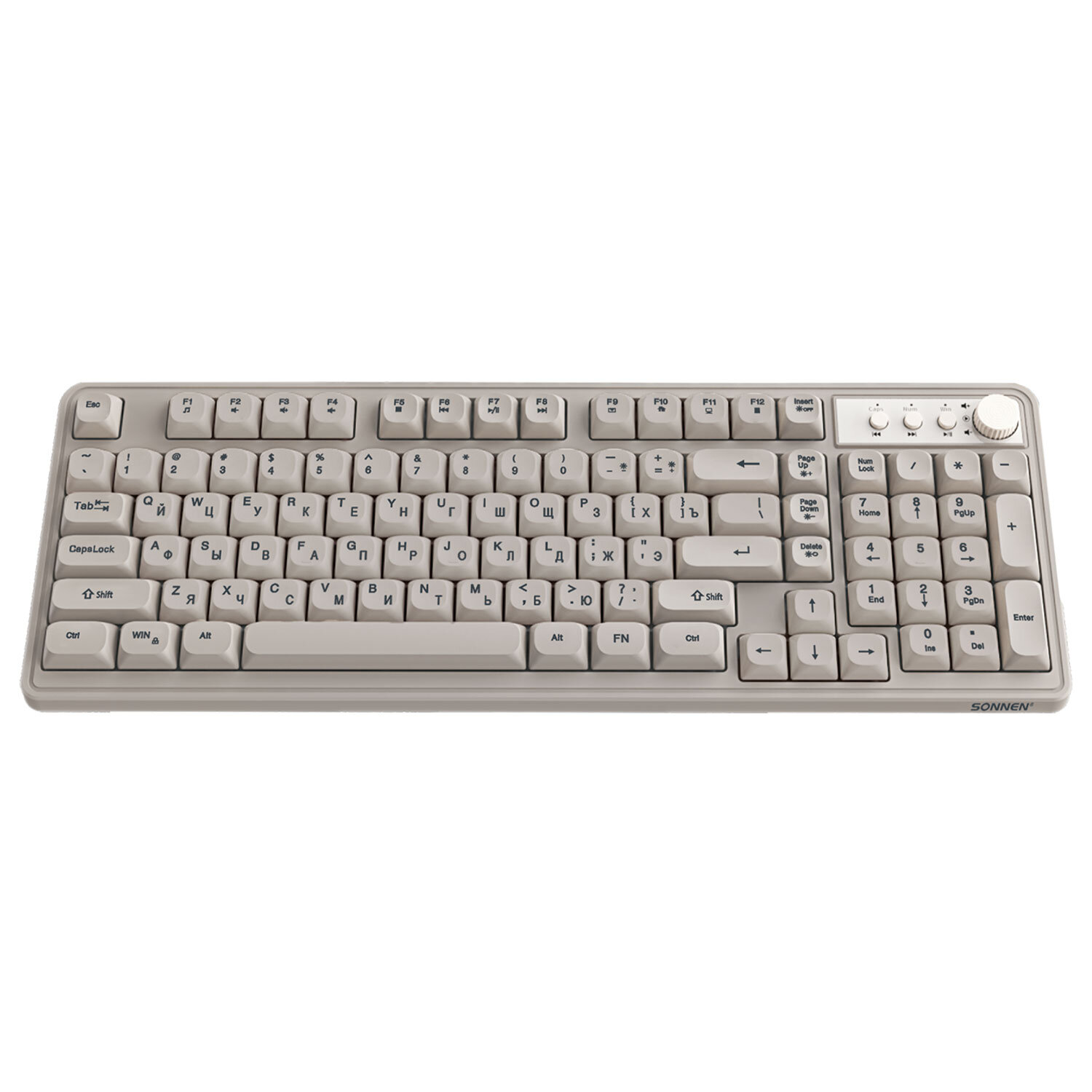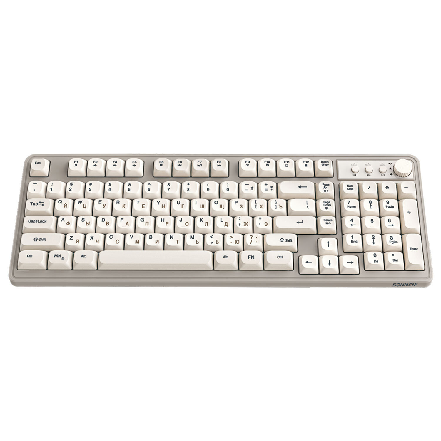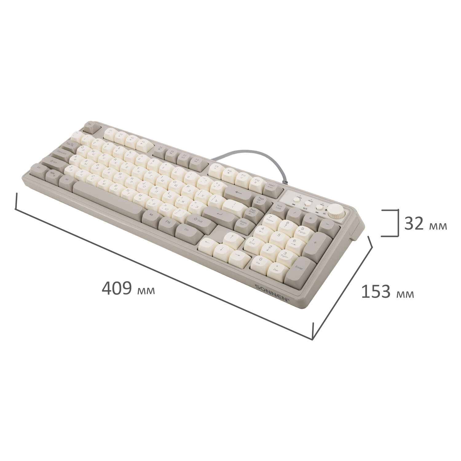 Клавиатура проводная бесшумная USB, 102+98 клавиш, LED-подсветка, SONNEN K620, слоновая кость / серая Код товара: 513950 1 342,43 ₽ Купить Производитель:SONNEN Клавиатура SONNEN K620 создаст отличные условия для работы и развлечений. Благодаря мембранному механизму клавиатура работает практически бесшумно, поэтому не мешает людям вокруг. Имеет 2 полных комплекта клавиш: 102+98 дополнительных, позволяющих создать индивидуальный дизайн клавиатуры. Один из комплектов клавиш выполнен в цвете слоновой кости, другой – в сером цвете. Корпус сделан из ударопрочного ABS-пластика. В комплекте входит пуллер (инструмент для снятия клавиш). Клавиатура снабжена LED-подсветкой с тремя уровнями яркости и режимом дыхания, то есть плавным увеличением и уменьшением яркости. Клавиатура также оснащена мультимедийной панелью с энкодером, который позволит осуществлять точечную корректировку громкости. Размер клавиатуры – 153x409x32. Подключение через USB-разъем. Длина кабеля – 1,35 м. Вес – 0,6 кг.Производство: КитайИнтерфейсы подключения: USBТип клавиатуры: мембраннаяВид клавиатуры: классическаяОбщее количество клавиш: 200Полноразмерныe клавиши: "BackSpace", "Enter", "пробел"Подсветка клавиш: даТонкая: даДлина кабеля: 1.35 мМатериал корпуса: пластикВысота: 409 ммШирина: 153 ммГлубина: 32 ммЦвет: слоновая костьВес: 600 гСерия: K620Размер упаковки: 6.1 × 43.4 × 17.4 смОбъём: 0.0056 м3Промежуточная упаковка: 10 штТранспортная упаковка: 10 штШтрих-код: 4606224458069 Файлы Сертификат-1.jpg Сертификат-2.jpg