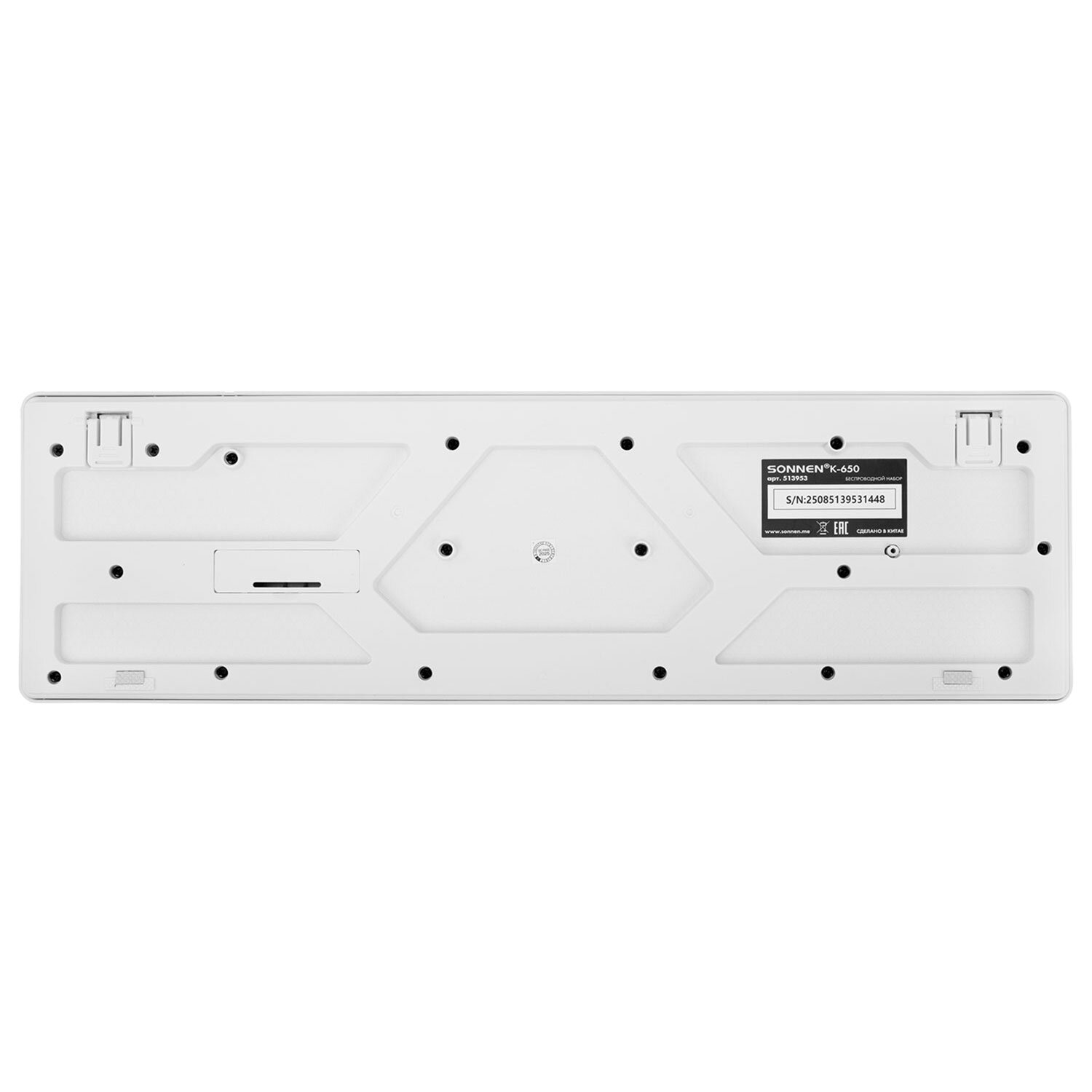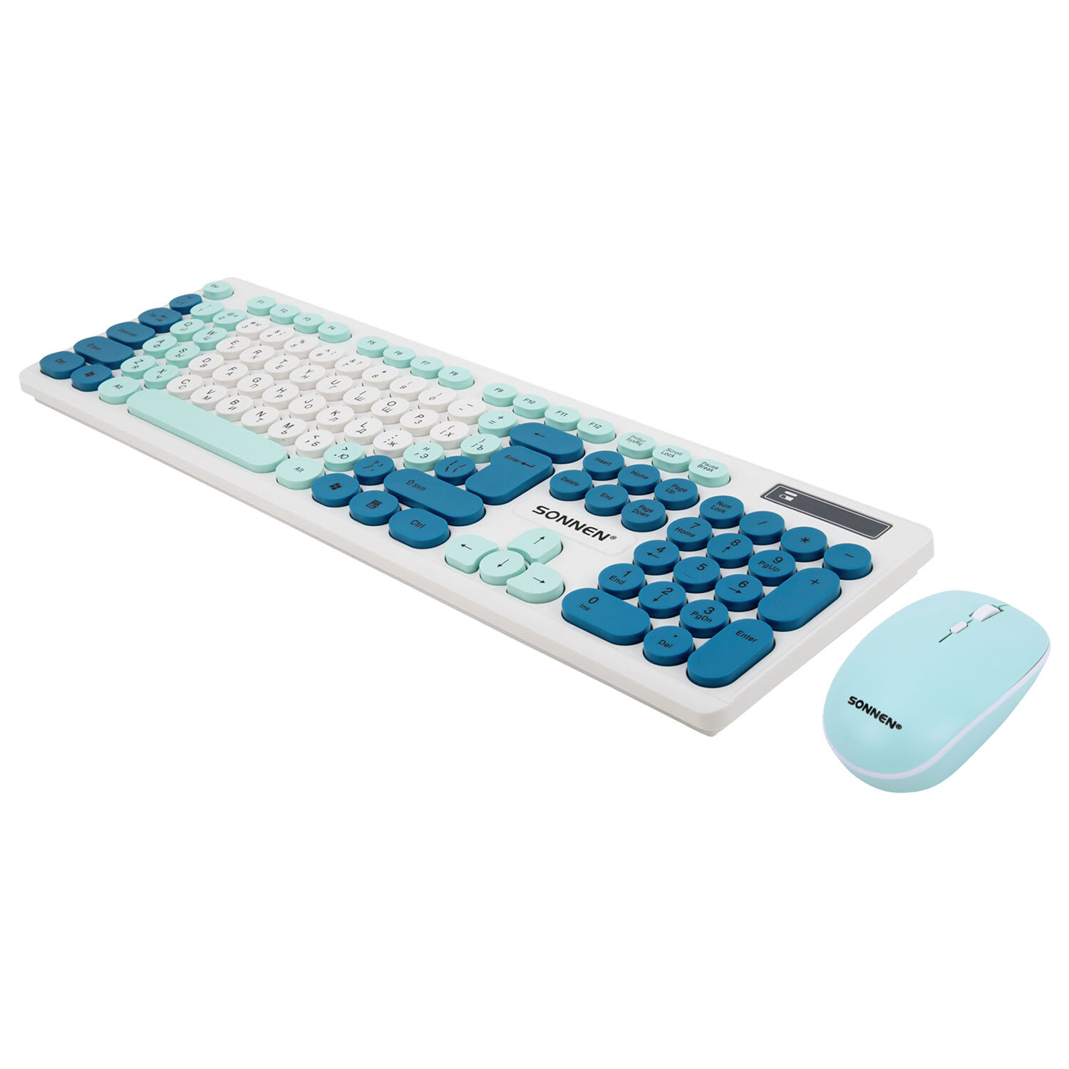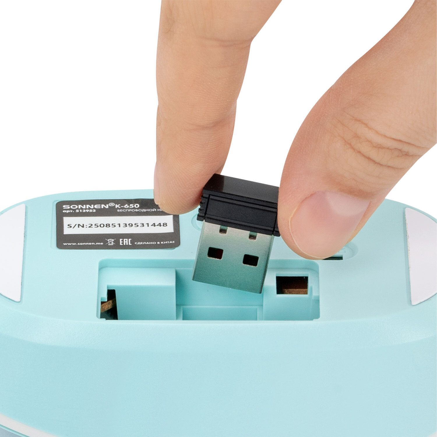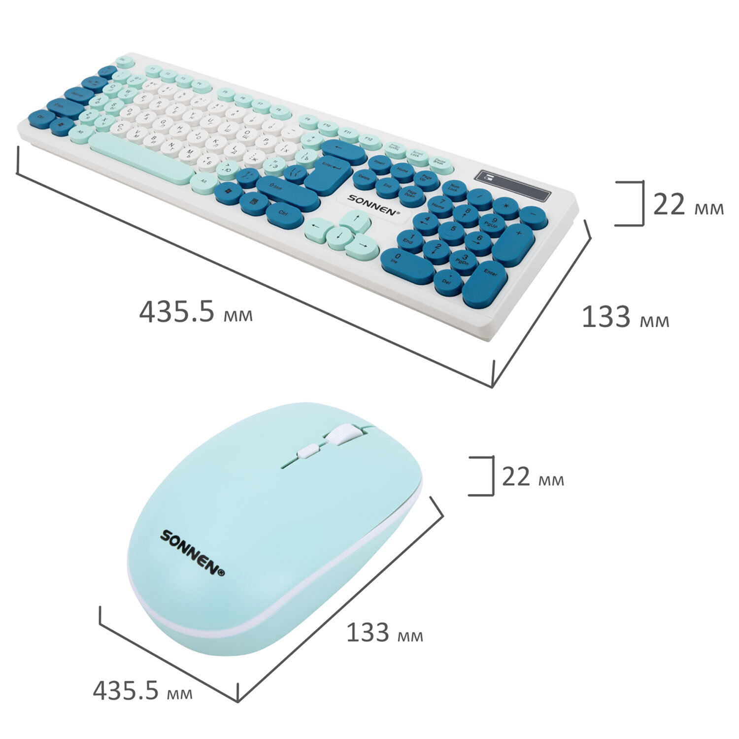 Набор беспроводной тихий: клавиатура 104 клавиши, мышь 4 кнопки 800/1200/1600 dpi, SONNEN K-650, белый / мятный / бирюзовый Код товара: 513953 1 237,16 ₽ Купить Производитель:SONNEN SONNEN K-650 – классический стильный комплект, сочетающий в себе функциональность, долговечность и исключительное удобство в работе. Внимание! Адаптер находится в отсеке для батареек клавиатуры! Беспроводное подключение: радиус действия – до 10 метров от компьютера или ноутбука. Клавиатура мембранного типа. Размер – 435,5х133х22 мм. Клавиатура имеет 104 основные клавиши. Также в комплект входит беспроводная мышь: 4 кнопки, разрешение сенсора (меняется с помощью дополнительной кнопки) – 800-1200-1600 dpi. Размеры – 60,2x32,5x110 мм. Питание клавиатуры – 1 батарея АА, мыши – 1 батарея АА (в комплект не входят!). Клавиатура и мышь выполнены в оригинальном дизайне. Цвет – белый / мятный / бирюзовый.Производство: КитайБеспроводное подключение: даРазъем клавиатуры и мыши: USBКоличество клавиш клавиатуры: 104Количество кнопок мыши: 4Технология сенсора мыши: оптическаяМаксимальное разрешение курсора: 1600 dpiРадиус действия: 10 мТип клавиатуры: мембраннаяЦвет: белый/мятный/бирюзовыйПитание клавиатуры: 1 батарея ААПитание мыши: 1 батарея ААШирина клавиатуры: 435.5 ммГлубина клавиатуры: 133 ммВысота клавиатуры: 22 ммСерия: K-650Вес клавиатуры: 368 гДлина мыши: 110 ммШирина мыши: 60.2 ммВысота мыши: 32.5 ммВес мыши: 52.4 гВес: 579 грРазмер упаковки: 4.7 × 51.4 × 14.1 смОбъём: 0.0037 м3Промежуточная упаковка: 20 штТранспортная упаковка: 20 штШтрих-код: 4606224458090 Файлы Сертификат-1.jpg Сертификат-2.jpg