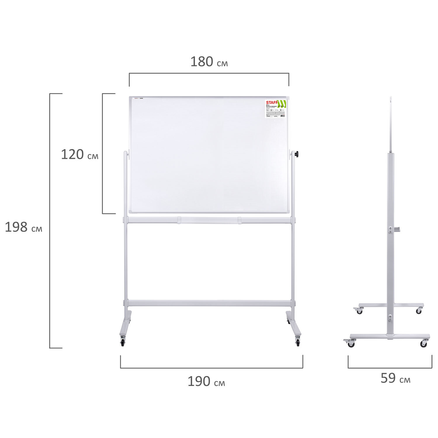 Доска магнитно-маркерная НА СТЕНДЕ 120х180 см, 2-сторонняя, STAFF Код товара: 238008 27 724,67 ₽ Купить Производитель:STAFF Двусторонняя магнитно-маркерная доска на стенде STAFF предназначена для наглядной демонстрации информации при проведении тренингов, совещаний и презентаций. Лаковое покрытие предназначено для письма специальными маркерами для белой доски. Металлическая поверхность позволяет размещать информацию при помощи магнитов. Вращается в горизонтальной плоскости на 360 градусов. Перемещается на колесиках. Элементы крепления и лоток для принадлежностей входят в комплект. Размер доски: 120х180 см. Перед началом работы необходимо удалить защитную пленку с рабочей поверхности доски.Производство: КитайТип доски: напольная 2-сторонняяРазмер доски (ВхШ): 120х180 смМаксимальная ширина доски: 180 смВысота в сборе: 198 смПокрытие рабочей поверхности: лаковоеМатериал рамы: алюминийСерия: Stand-upУкреплённые пластиковые уголки: даВращается в горизонтальной плоскости на 360 градусов: даПеремещается на колесиках: даРазметка: нетШирина рамки: 2.16 смТолщина рамки: 1.69 смКомплектация: полка для принадлежностей, элементы крепленияТип крепления: нетМатериал рабочей поверхности: стальВес: 15.4 кгРазмер упаковки: 137.5 × 198 × 6 смОбъём: 0.1634 м3Промежуточная упаковка: 1 штТранспортная упаковка: 1 штШтрих-код: 4606224360843 Файлы Сертификат-1.jpg Сертификат-2.jpg Сертификат-3.jpg Сертификат-4.jpg Сертификат-5.jpg Сертификат-6.jpg Сертификат-7.jpg Сертификат-8.jpg Сертификат-9.jpg Сертификат-10.jpg Сертификат-11.jpg Сертификат-12.jpg Сертификат-13.jpg Сертификат-14.jpg Сертификат-15.jpg Сертификат-16.jpg Сертификат-17.jpg Сертификат-18.jpg Сертификат-19.jpg Сертификат-20.jpg Сертификат-21.jpg Сертификат-22.jpg Сертификат-23.jpg Сертификат-24.jpg Сертификат-25.jpg Сертификат-26.jpg