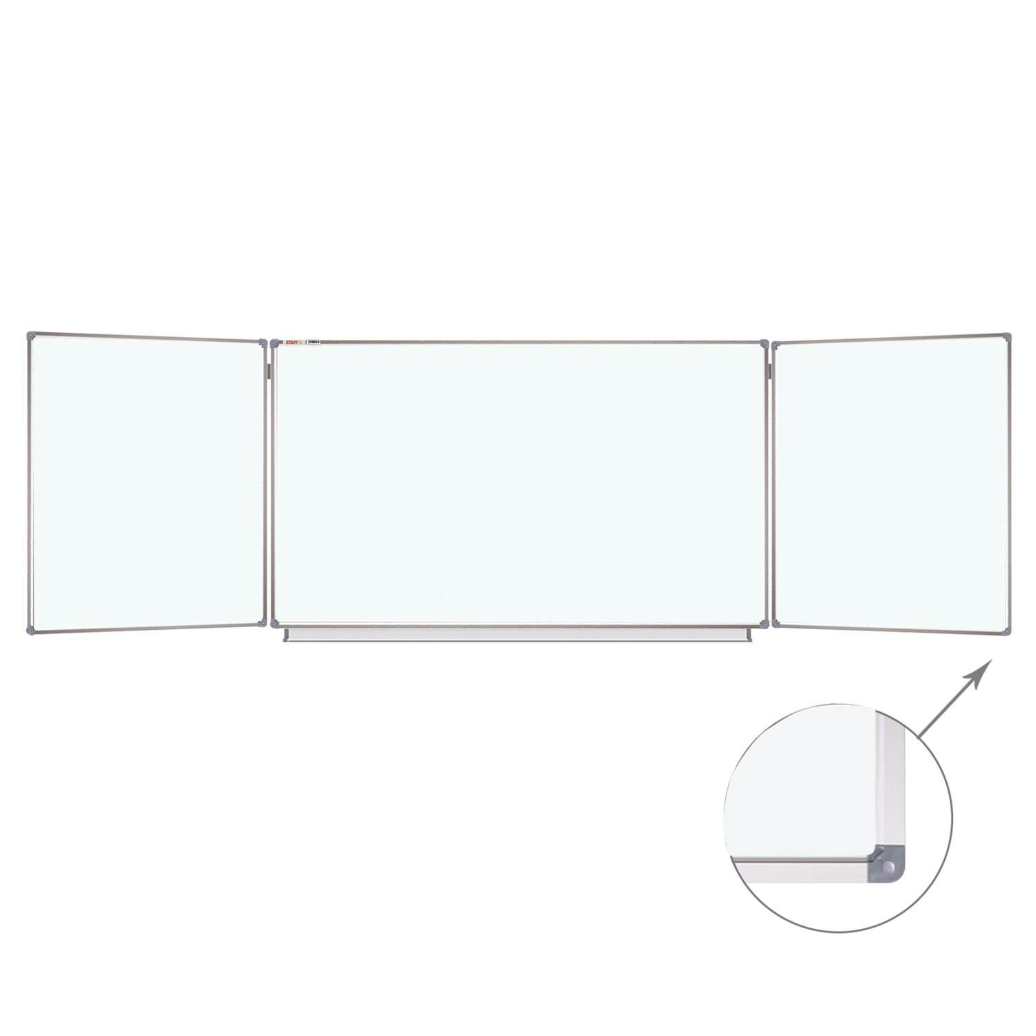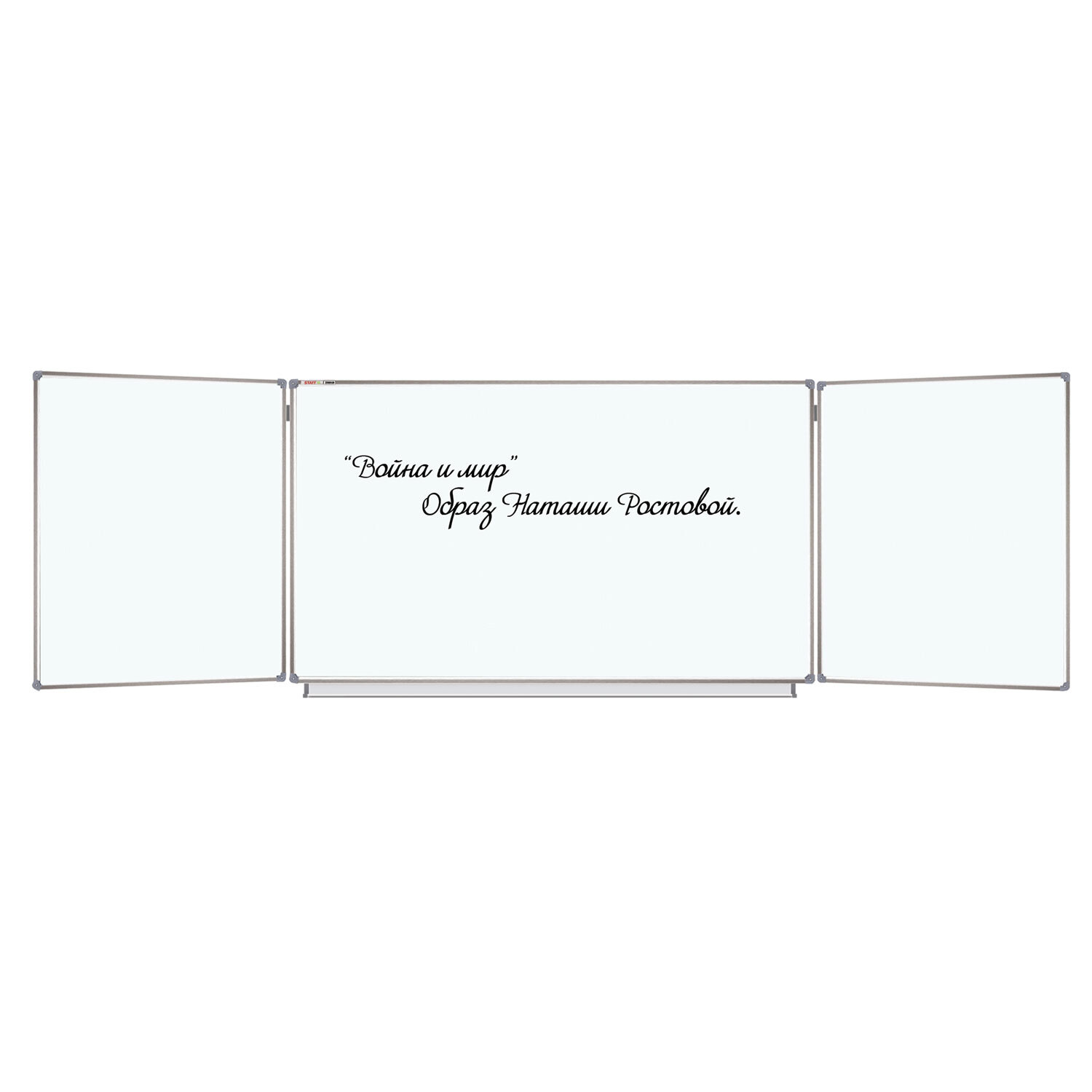 Доска магнитно-маркерная 3-х элементная 100х150/300 см, 5 рабочих поверхностей, белая, STAFF Код товара: 238010 18 509,38 ₽ Купить Производитель:STAFF Трехэлементная настенная магнитно-маркерная доска STAFF идеально подходит для использования в любых учебных учреждениях. Лаковое покрытие предназначено для письма специальными маркерами для белой доски, а металлическая поверхность позволяет размещать информацию при помощи магнитов. Состоит из 3-х элементов: центральная односторонняя секция – 100х150 см, двусторонние боковые секции – каждая по 100х75 см. Элементы крепления и полка для принадлежностей входят в комплект. Цвет: белый. Перед началом работы необходимо удалить защитную пленку с рабочей поверхности доски.Производство: КитайТип доски: трехэлементнаяРазмер доски (ВхШ): 100х150 смМаксимальная ширина доски: 300 смВысота в сборе: 100 смПокрытие рабочей поверхности: лаковоеМатериал рамы: алюминийСерия: нетУкреплённые пластиковые уголки: даРазметка: нетШирина рамки: 2.21 смТолщина рамки: 1.95 смКомплектация: полка для принадлежностей, элементы крепленияТип крепления: нетМатериал рабочей поверхности: стальВес: 13.1 кгРазмер упаковки: 105.5 × 155 × 6.2 смОбъём: 0.1014 м3Промежуточная упаковка: 1 штТранспортная упаковка: 1 штШтрих-код: 4606224360867 Файлы Сертификат-1.jpg Сертификат-2.jpg Сертификат-3.jpg Сертификат-4.jpg Сертификат-5.jpg Сертификат-6.jpg Сертификат-7.jpg Сертификат-8.jpg Сертификат-9.jpg Сертификат-10.jpg Сертификат-11.jpg Сертификат-12.jpg Сертификат-13.jpg Сертификат-14.jpg Сертификат-15.jpg Сертификат-16.jpg Сертификат-17.jpg Сертификат-18.jpg Сертификат-19.jpg Сертификат-20.jpg Сертификат-21.jpg Сертификат-22.jpg Сертификат-23.jpg Сертификат-24.jpg Сертификат-25.jpg Сертификат-26.jpg