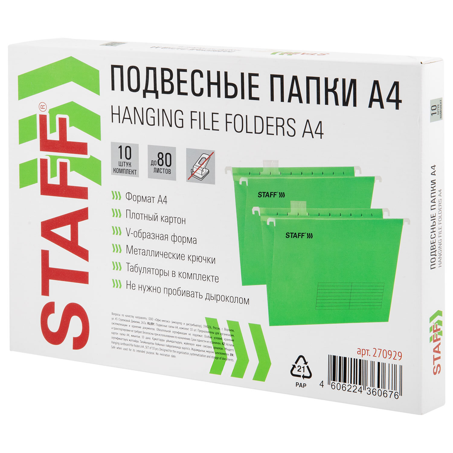 Подвесные папки А4 (350х240 мм) до 80 л., КОМПЛЕКТ 10 шт., зеленые, картон, STAFF Код товара: 270929 1 022,86 ₽ Купить Производитель:STAFF Подвесные папки формата A4 STAFF предназначены для размещения в подвесной регистратуре (по бокам имеются специальные крючки). Позволяют организовать хранение данных большой информационной базы. Папки V-образной формы изготовлены из высококачественного картона зеленого цвета плотностью 195 г/м2 и металлических крючков. Обладают повышенной прочностью. Вместимость до 80 листов. Размер папки без крючков составляет 310х240 мм, а с крючками - 350х240 мм. В комплект входят 10 папок, а также 10 прозрачных пластиковых табуляторов с ярлычками.Производство: КитайВместимость: 80 листовКоличество в комплекте: 10 шт.Вмещает документы формата: А4 (297х210 мм)Тип формы: V-образнаяМатериал: картонПлотность материала: 195 г/м2/мкмСерия: StandardШирина папки без крючков : 310 ммДлина папки без крючков : 240 ммШирина папки с крючками: 350 ммТабулятор со сменной этикеткой в комплекте: даЦвет: зеленыйВес: 704 грРазмер упаковки: 4.1 × 36.4 × 24.7 смОбъём: 0.0043 м3Промежуточная упаковка: 10 штТранспортная упаковка: 10 штШтрих-код: 4606224360676 Файлы Сертификат-1.jpg Сертификат-2.jpg Сертификат-3.jpg Сертификат-4.jpg Сертификат-5.jpg Сертификат-6.jpg Сертификат-7.jpg Сертификат-8.jpg Сертификат-9.jpg Сертификат-10.jpg Сертификат-11.jpg Сертификат-12.jpg Сертификат-13.jpg Сертификат-14.jpg Сертификат-15.jpg Сертификат-16.jpg Сертификат-17.jpg Сертификат-18.jpg Сертификат-19.jpg Сертификат-20.jpg Сертификат-21.jpg Сертификат-22.jpg Сертификат-23.jpg Сертификат-24.jpg Сертификат-25.jpg Сертификат-26.jpg